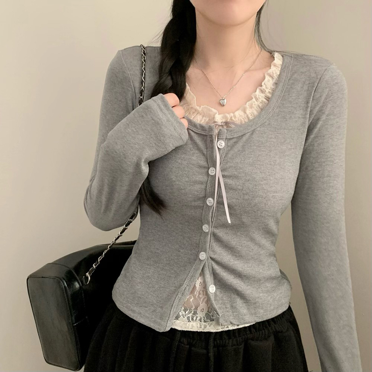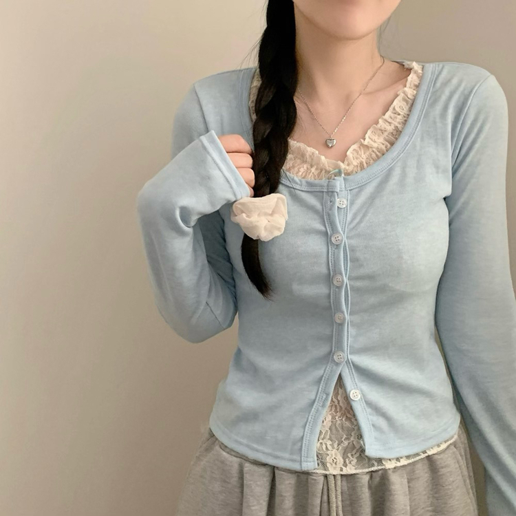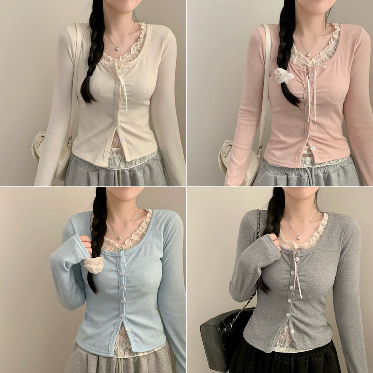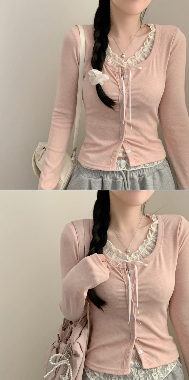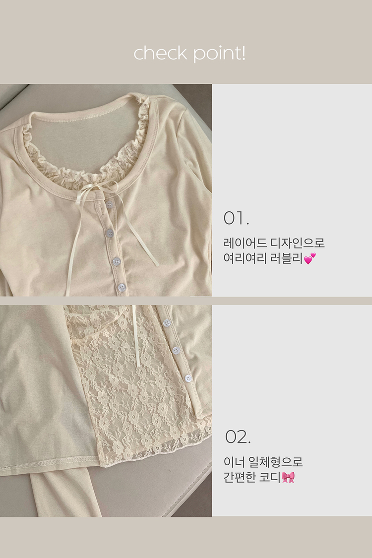 SGD30629 인더 레이스 일체형 긴팔티 긴팔 가디건 봄 봄옷 레이어드 롱슬리브 가을 가을옷