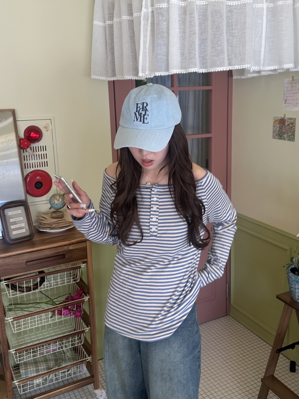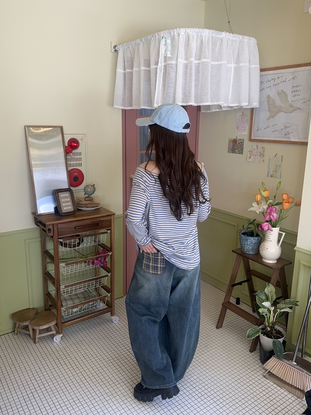 STS74890 오프숄더 스트라이프 탑