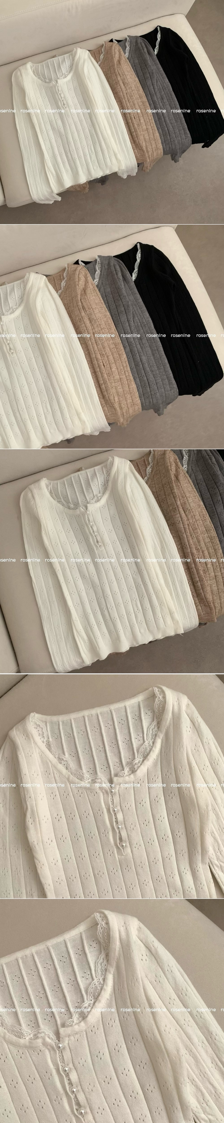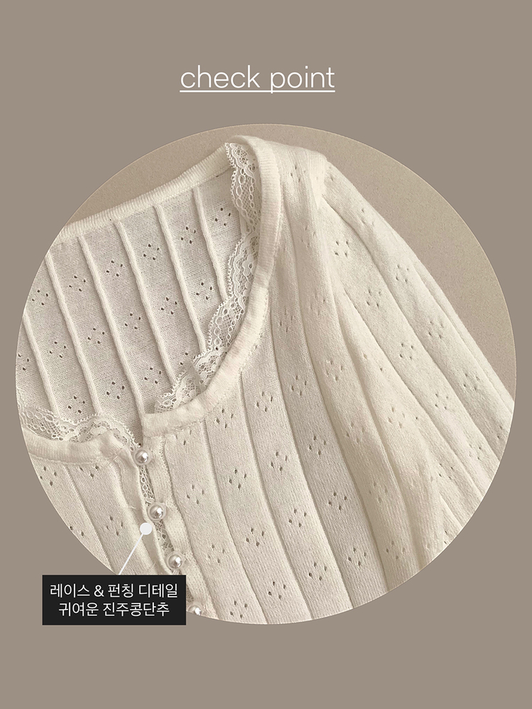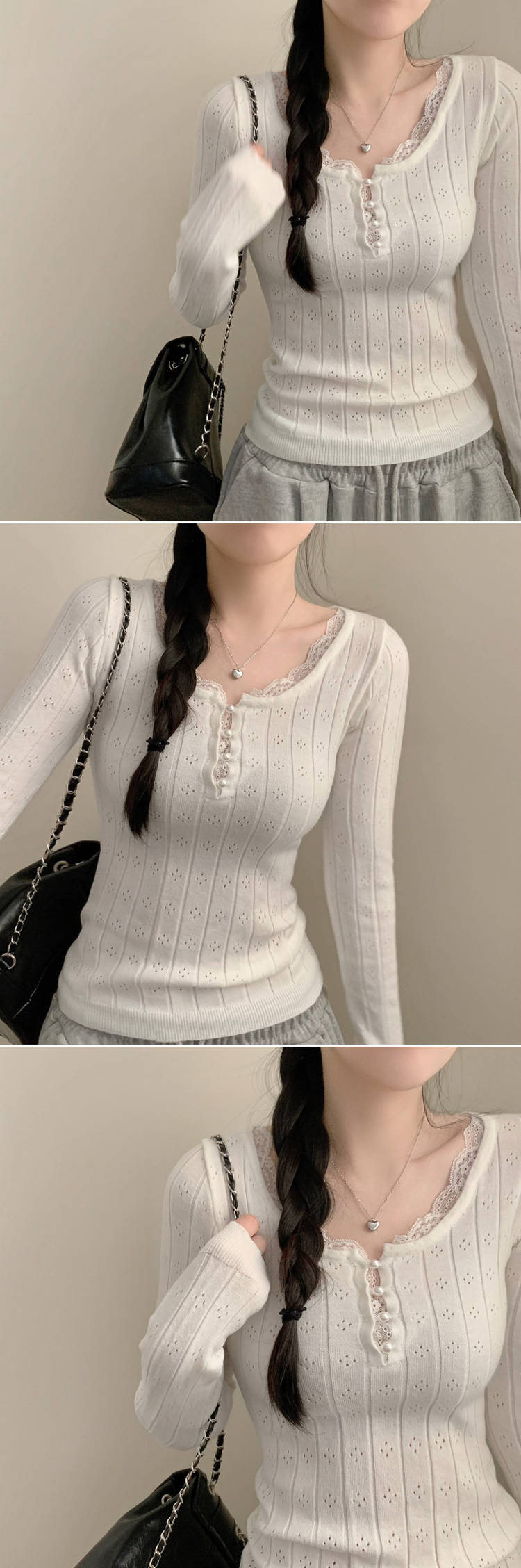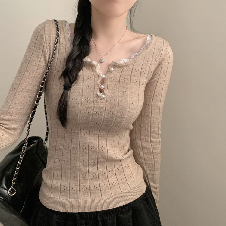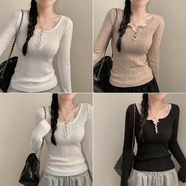 SNT35045 진주 콩단추 레이스 긴팔 니트티 긴팔티 니트 걸코어 레이어드 롱 슬림핏