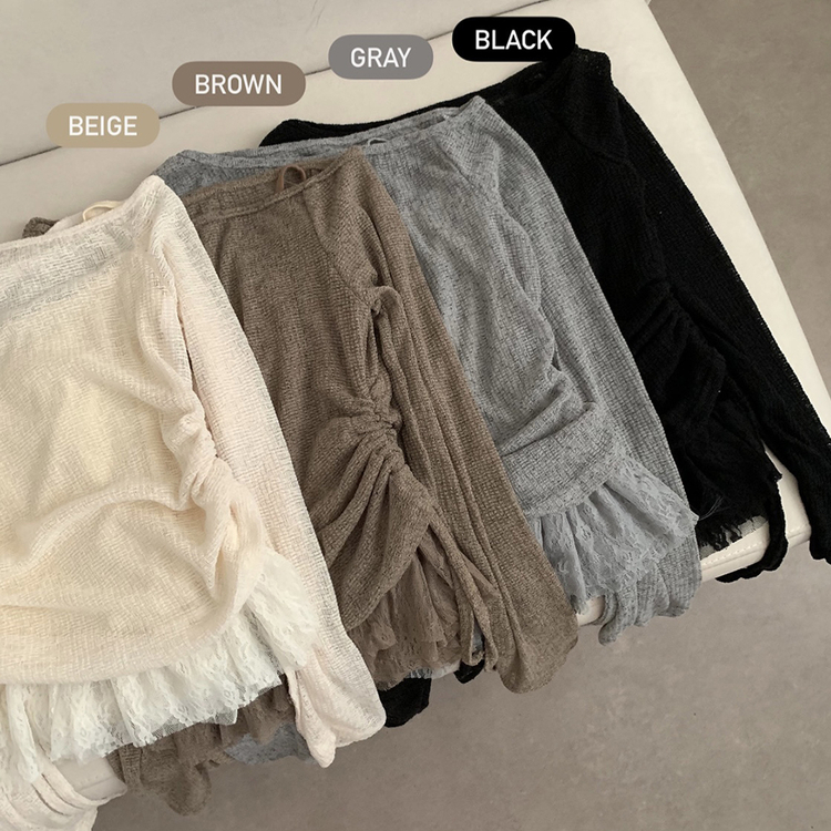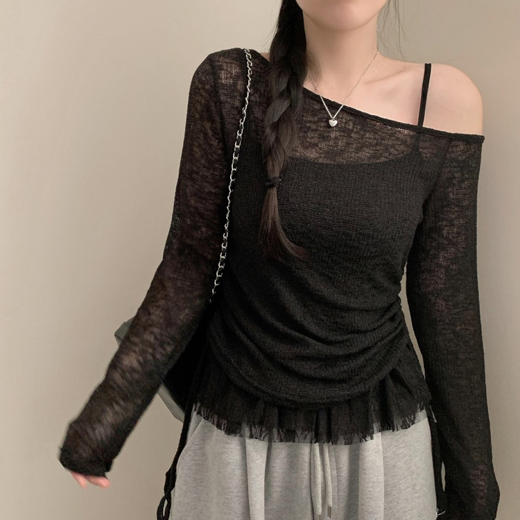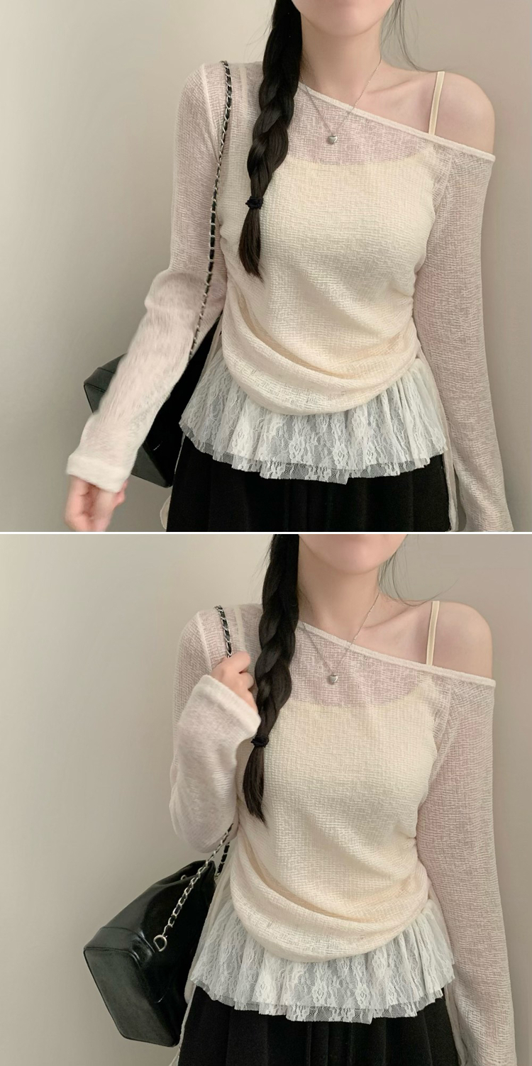 STS74919 원숄더 레이어드 레이스 프릴 끈나시 티셔츠 나시 긴팔티 티셔츠 봄 봄옷 시스루 y2k 원오프 오프숄더