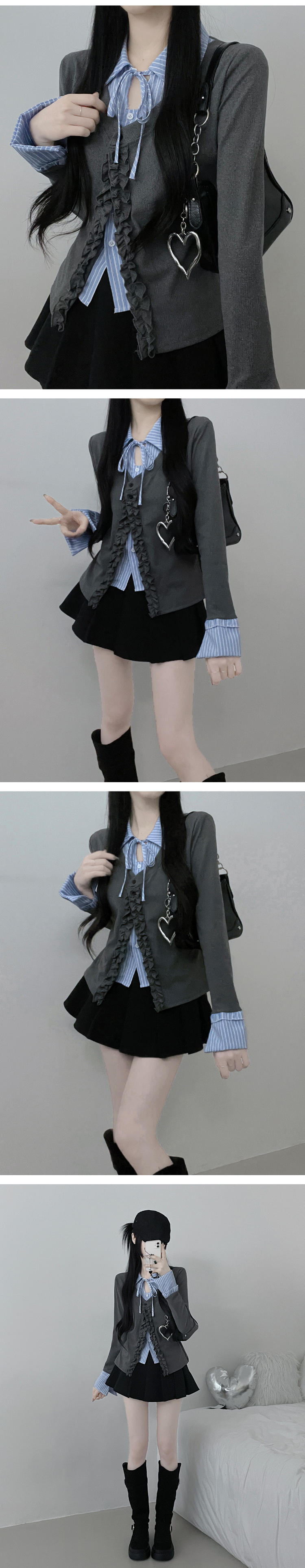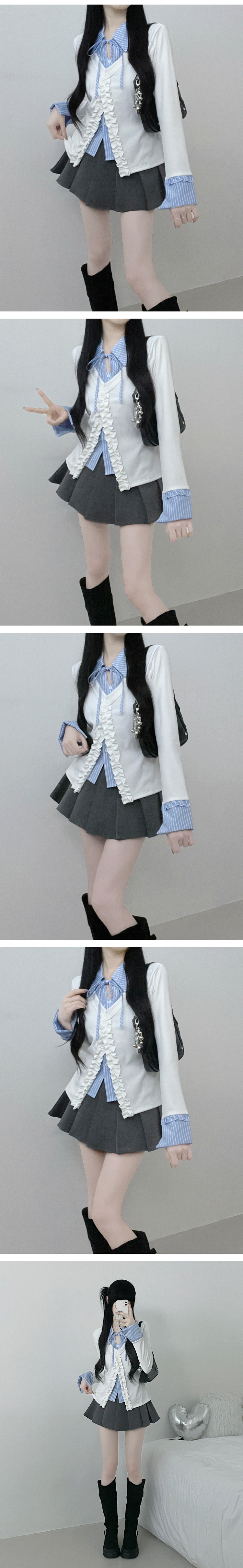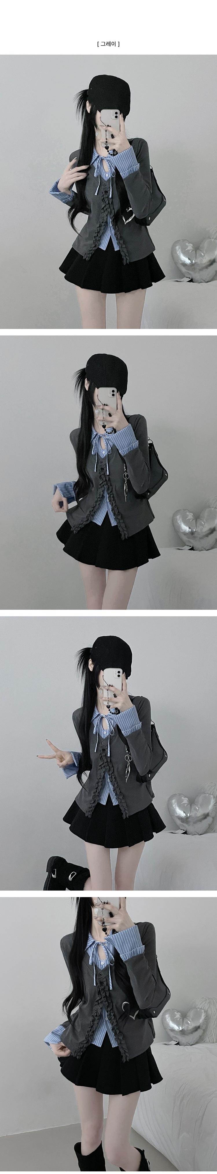 SGD30690 프릴스트라이프셔츠레이어드프릴가디건세트
