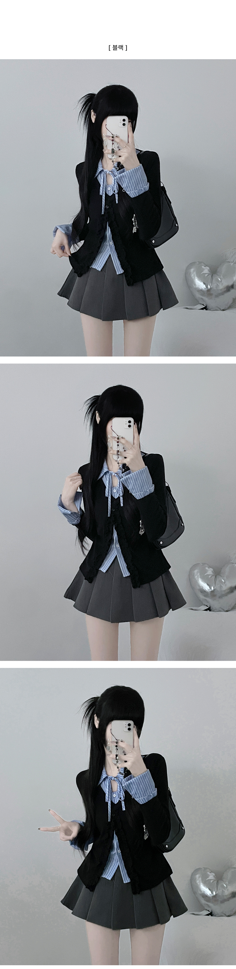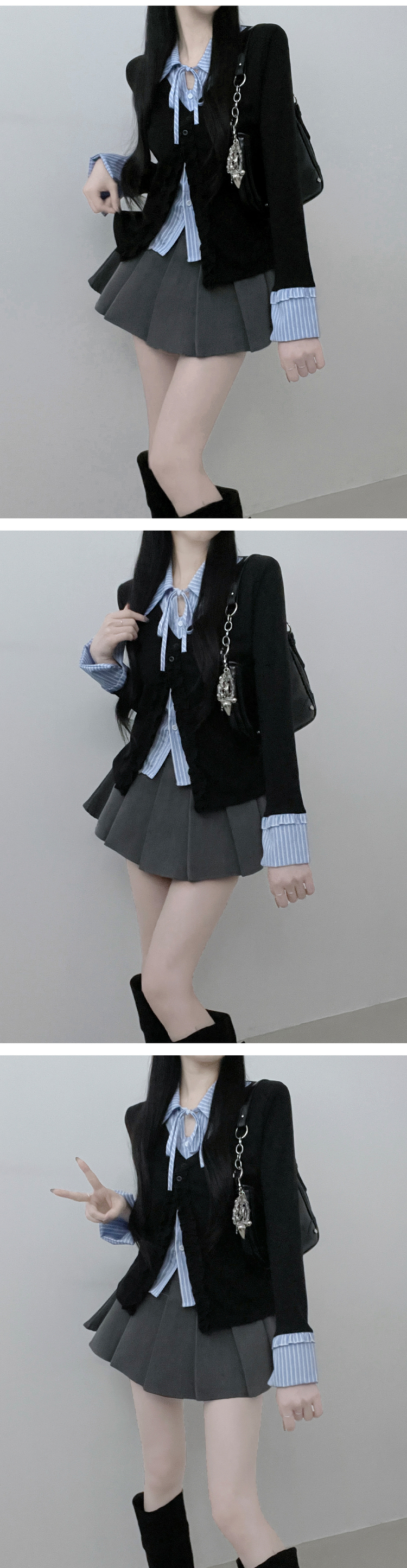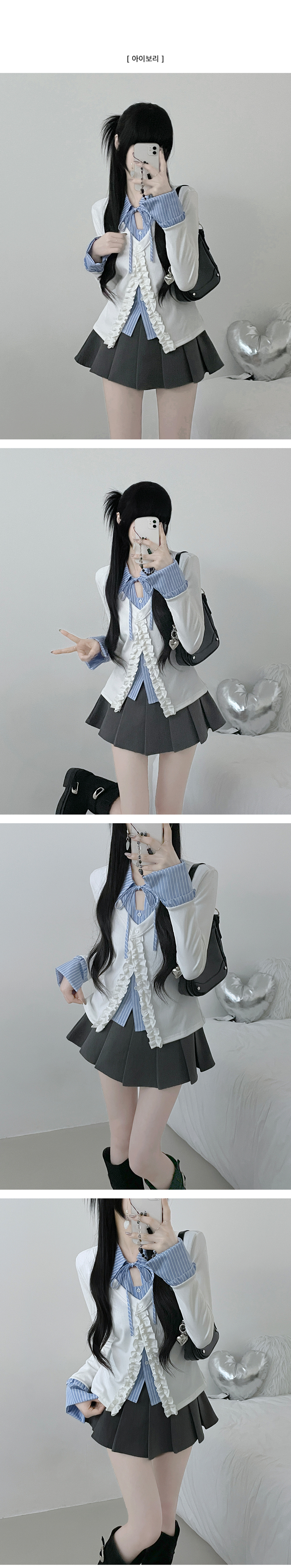 SGD30690 프릴스트라이프셔츠레이어드프릴가디건세트