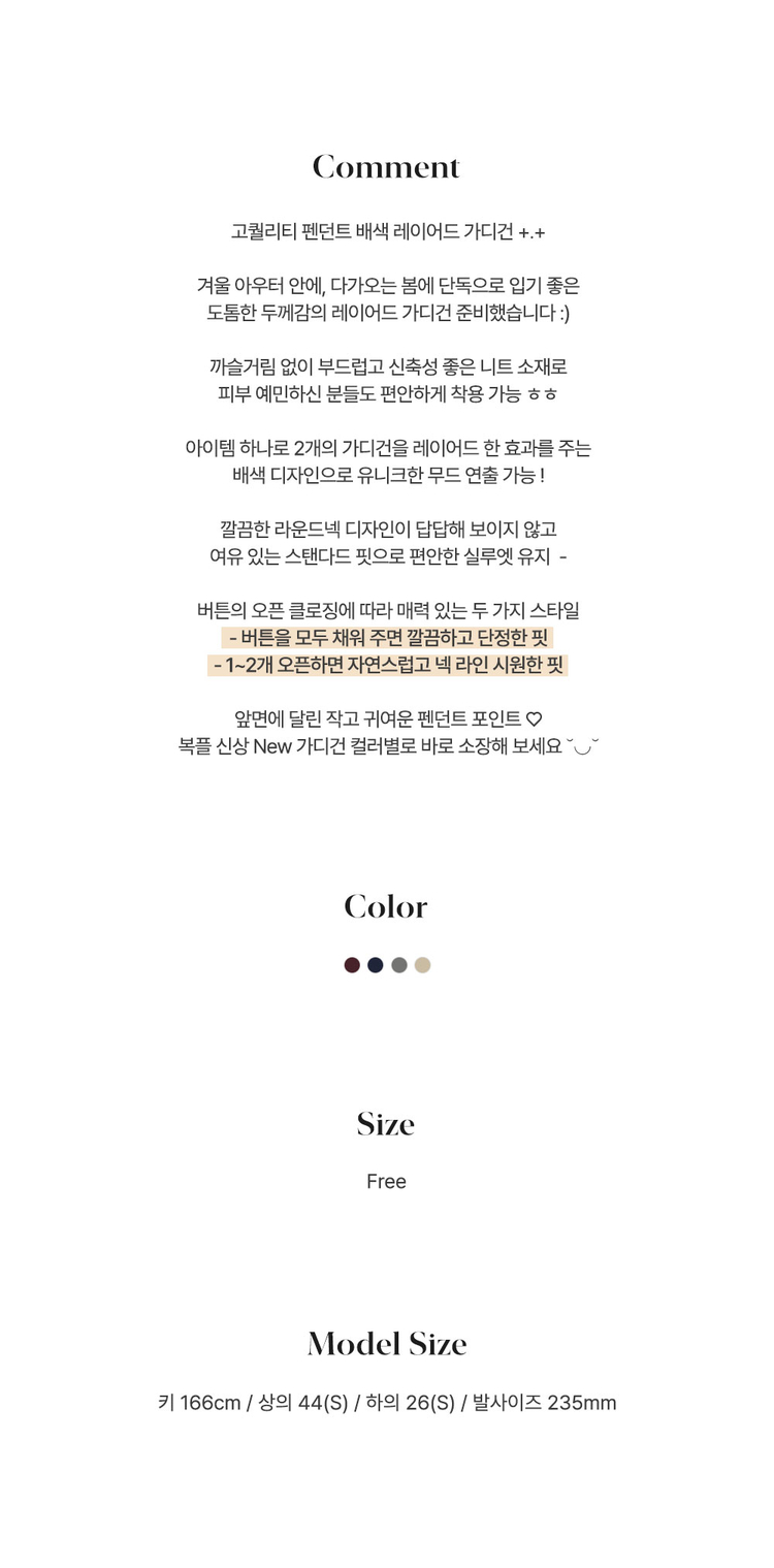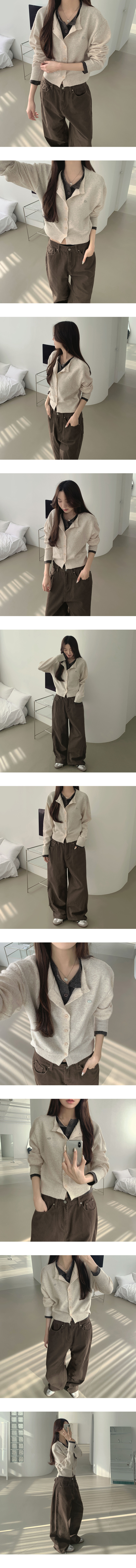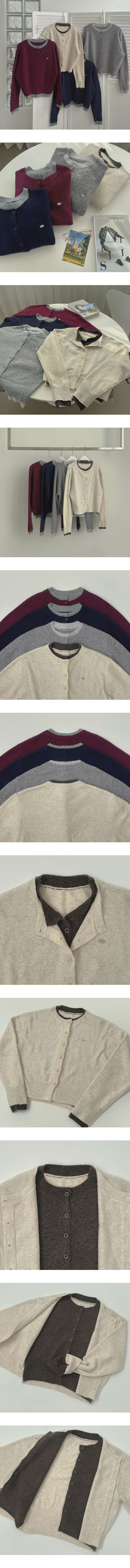 SGD30689 울 펜던트 고퀄 배색 레이어드 가디건