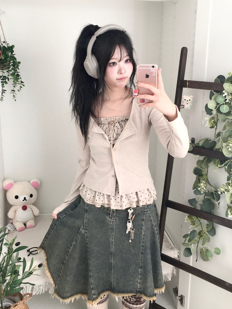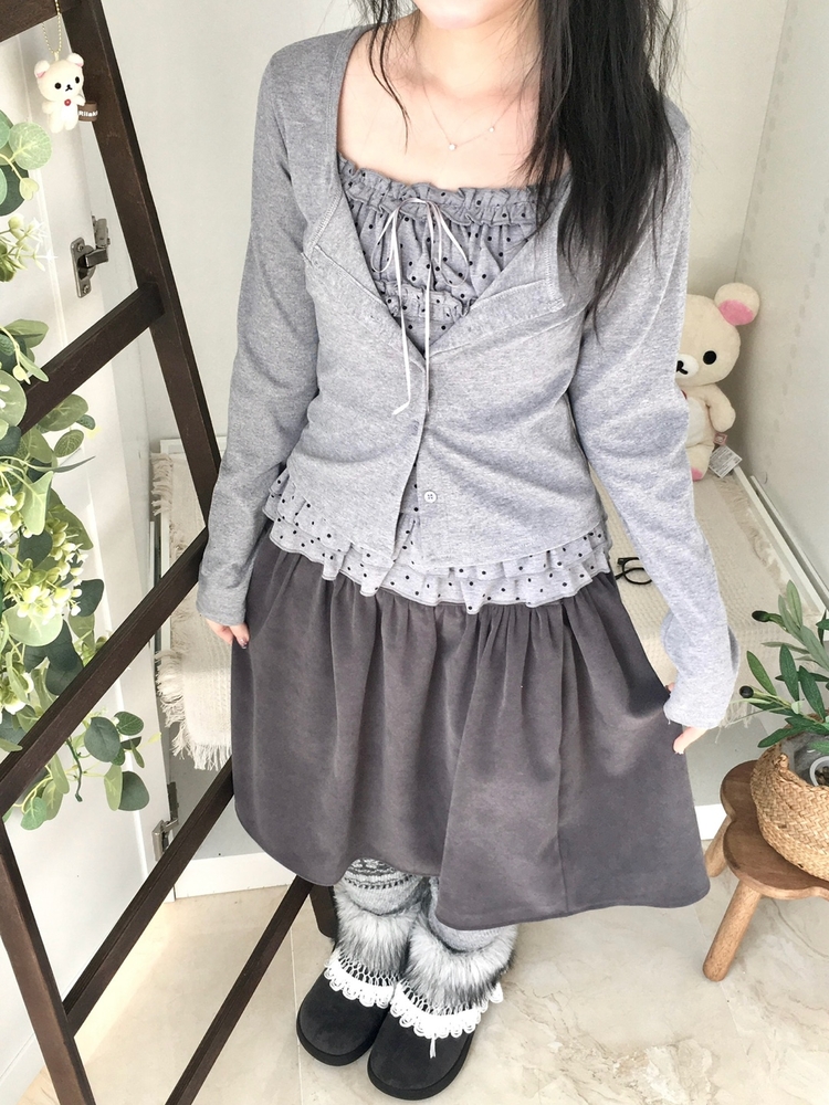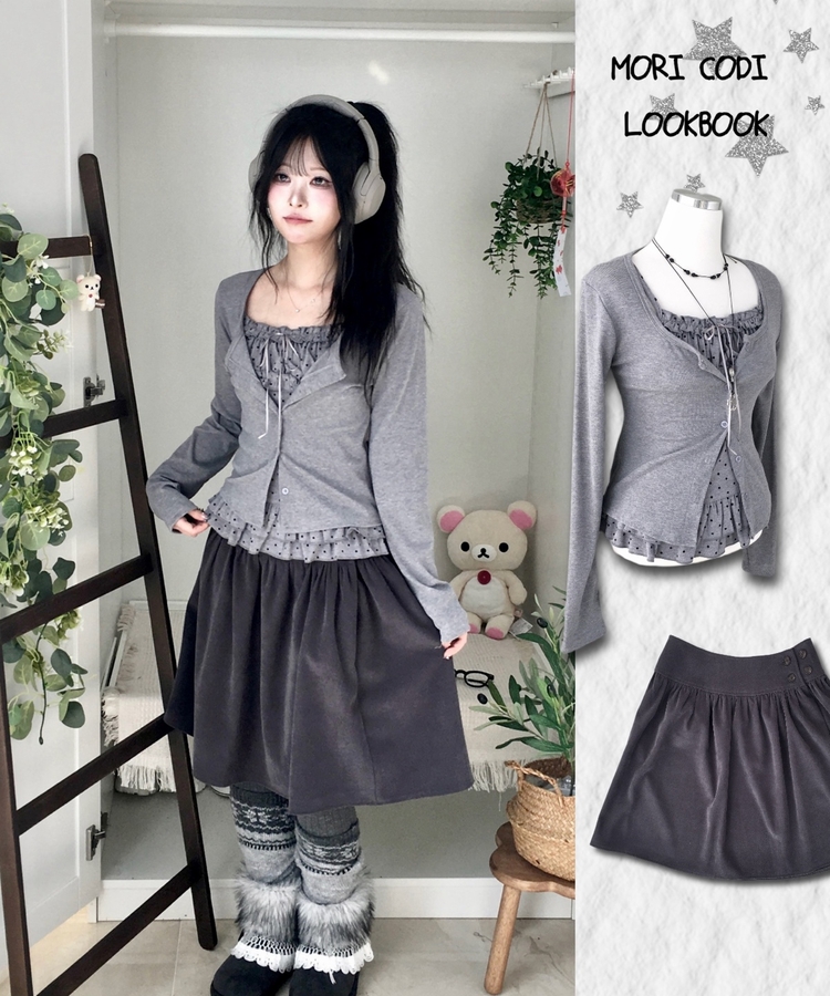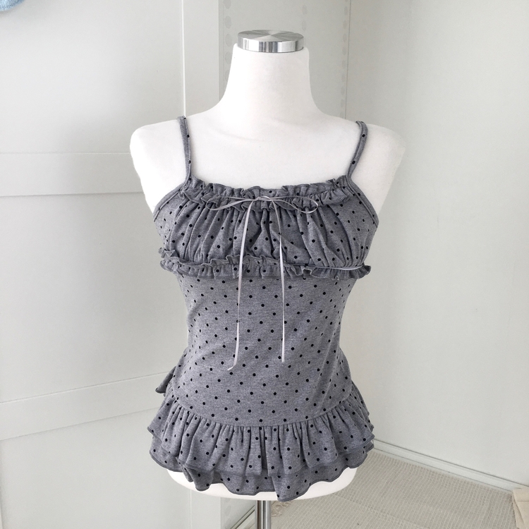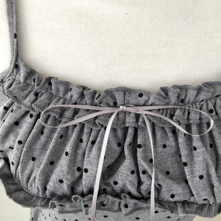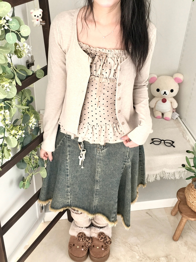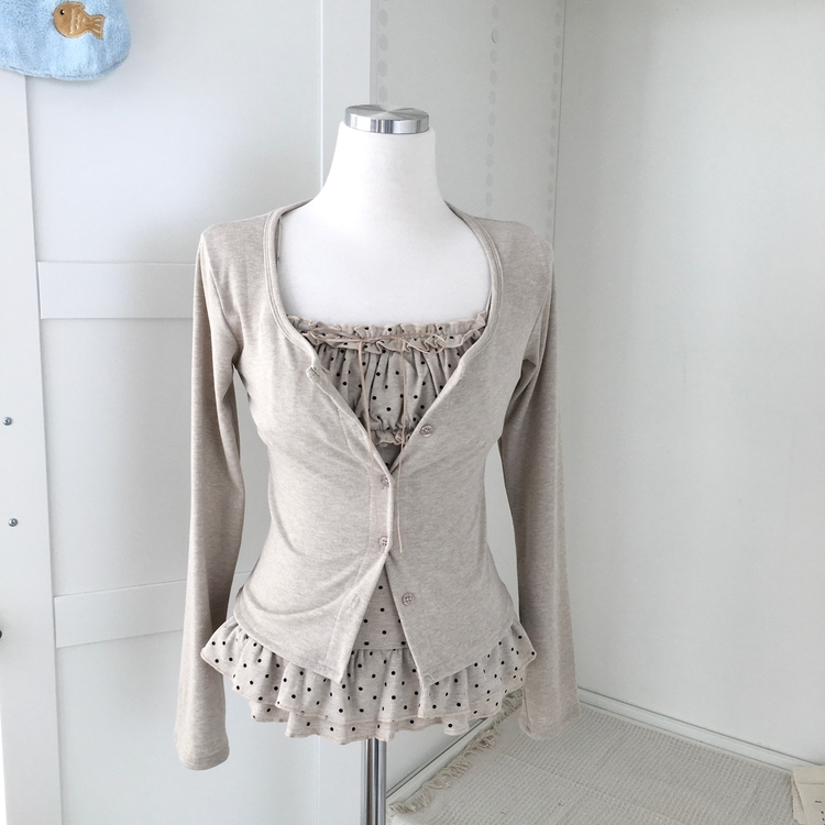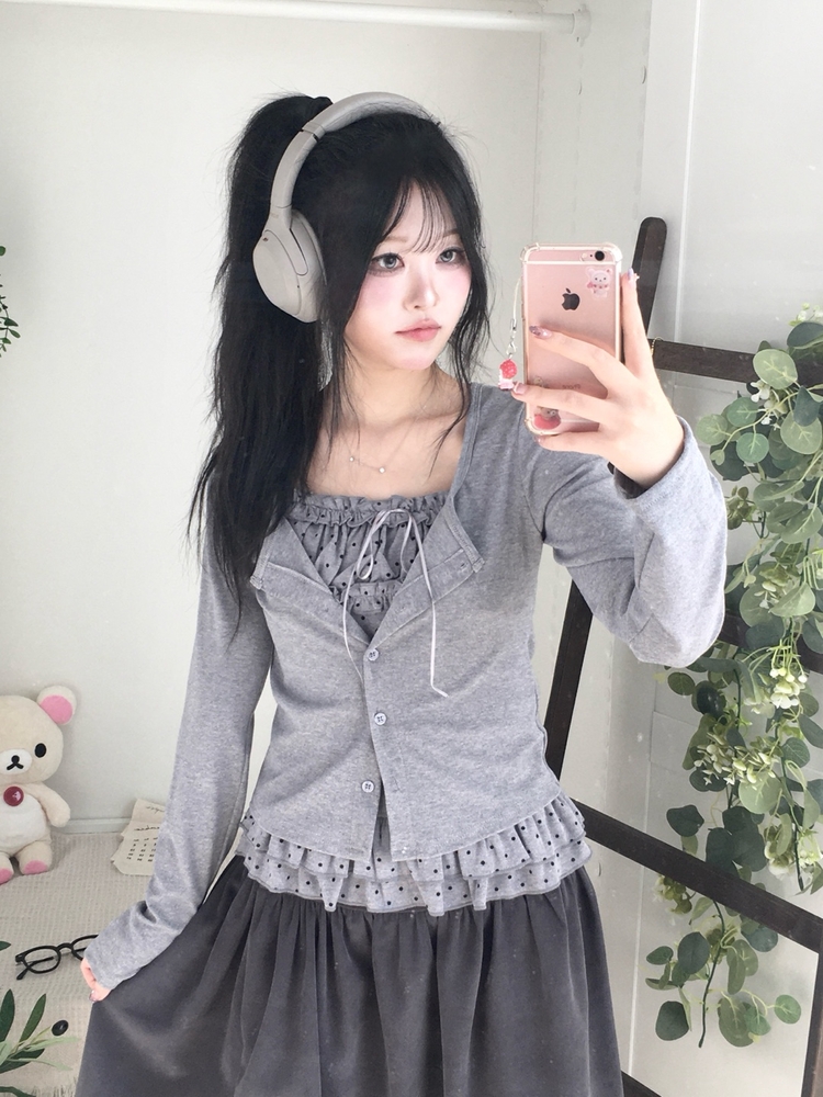 SGD30731 끈조절 빈티지 여리핏 프릴 캉캉 리본 도트 레이어드 나시 가디건 세트
