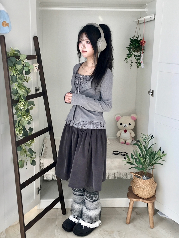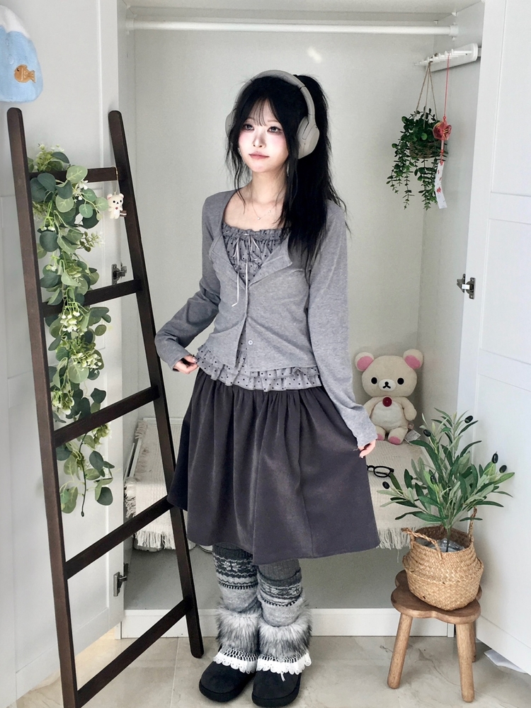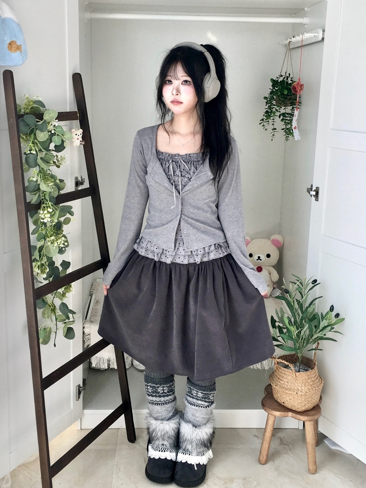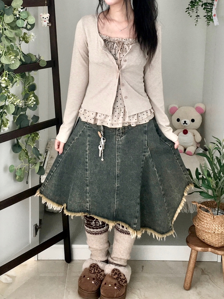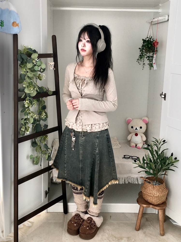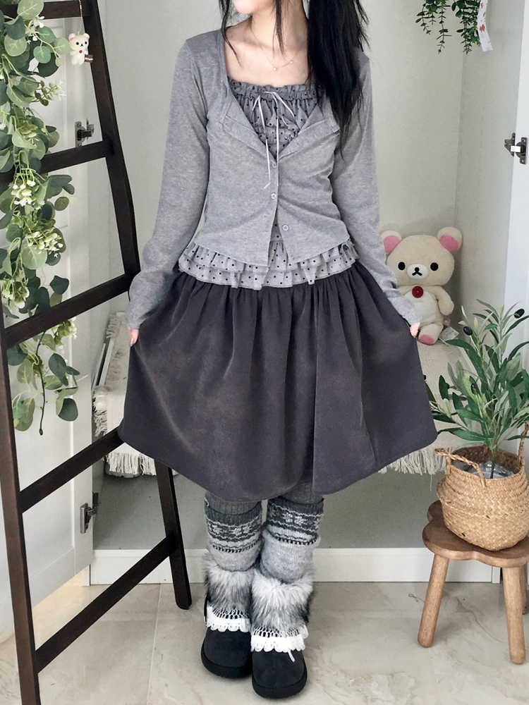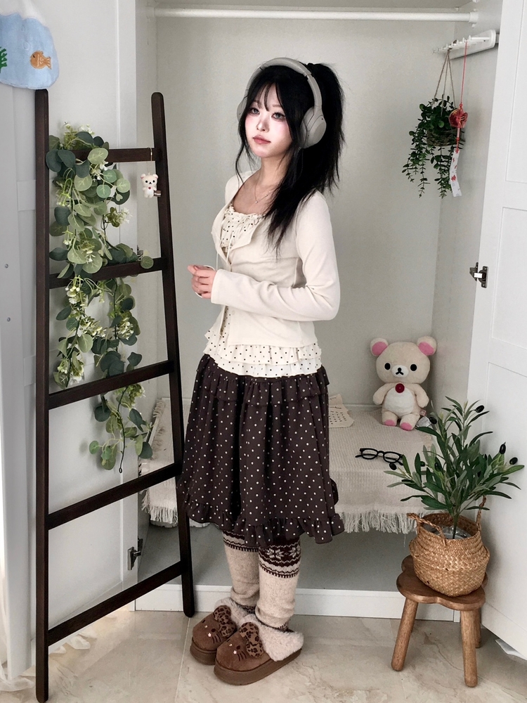 SGD30731 끈조절 빈티지 여리핏 프릴 캉캉 리본 도트 레이어드 나시 가디건 세트
