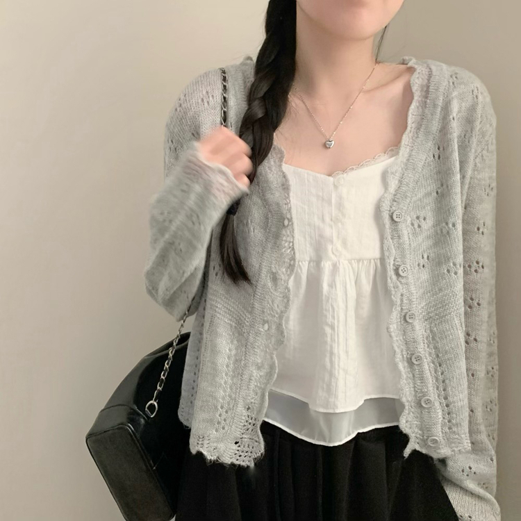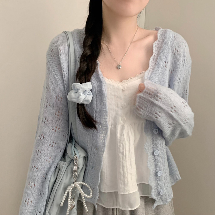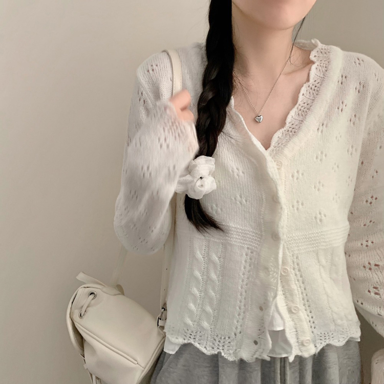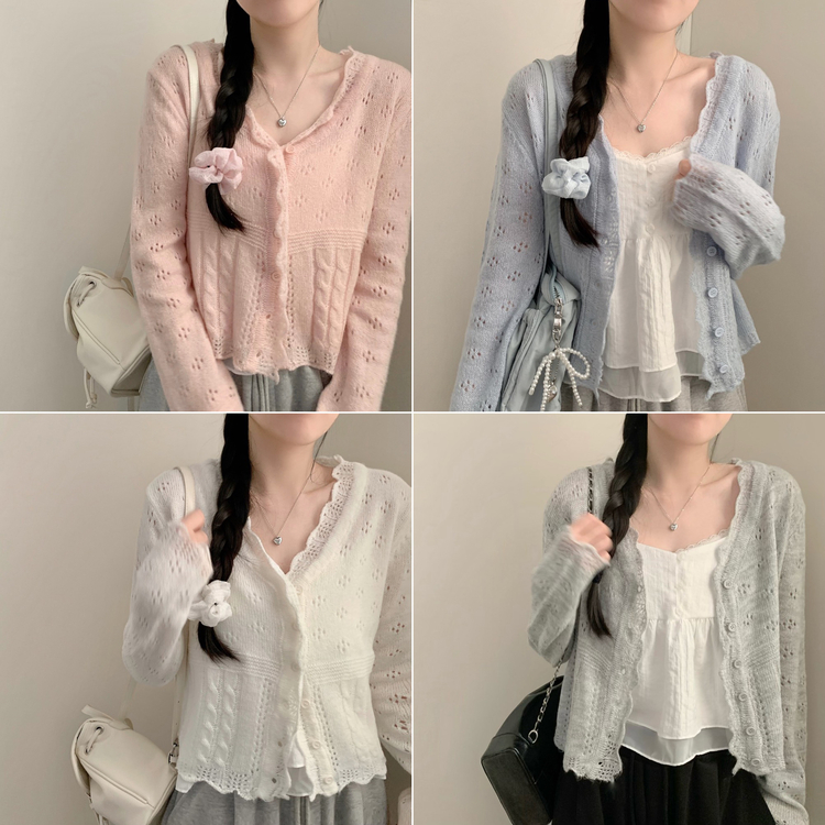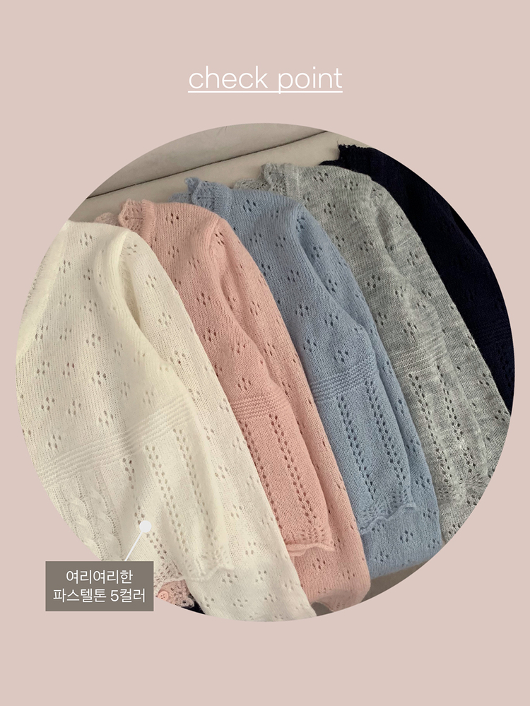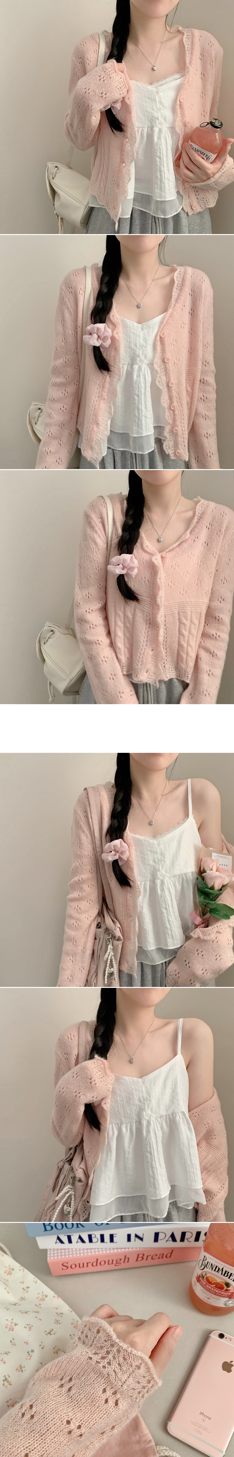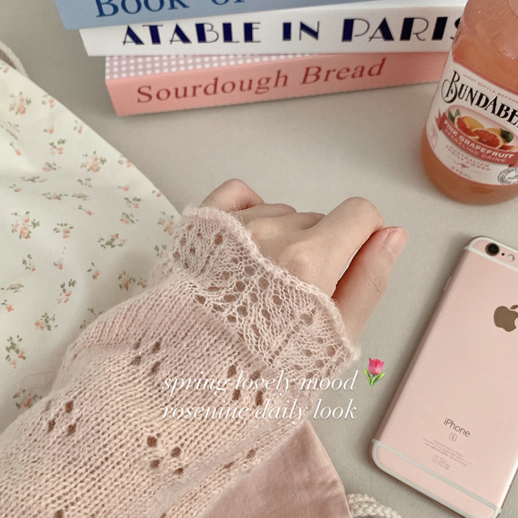 SGD30729 헤이 펀칭 브이넥 긴팔 니트 가디건 봄 봄옷 벚꽃 여리 청순 데이트 핑크