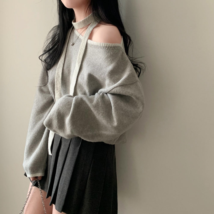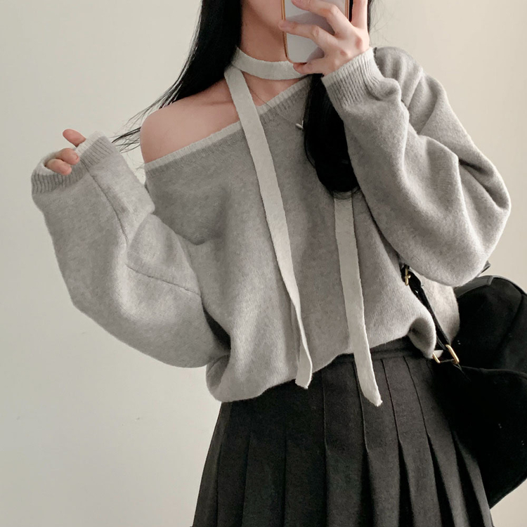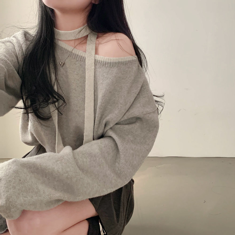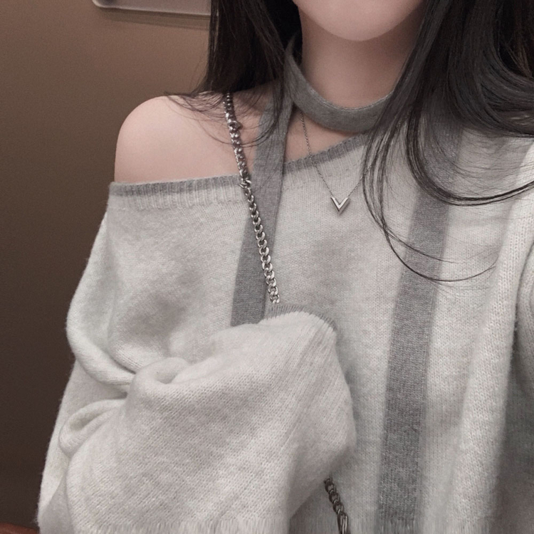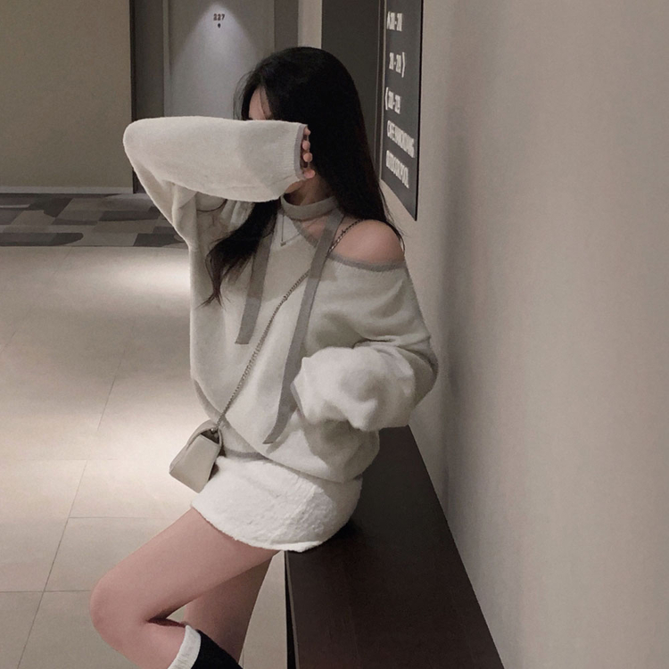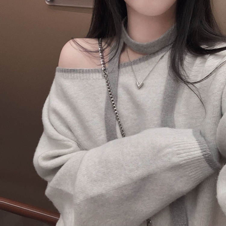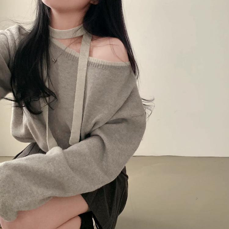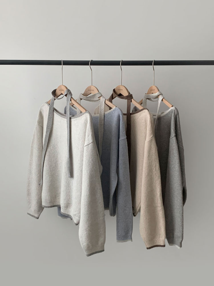 SNT35180 구름을 니트로 담는다면베스킨 배색 입술넥 니트 초커
