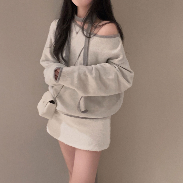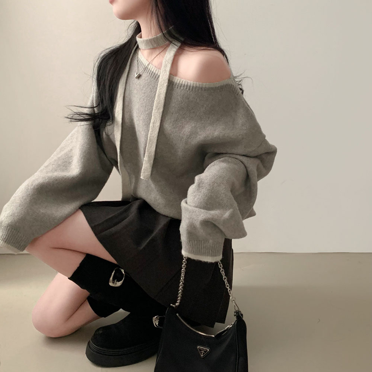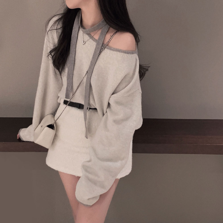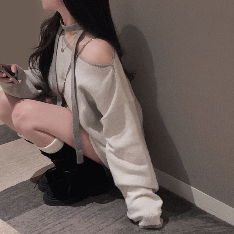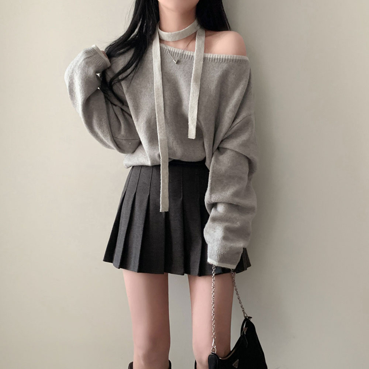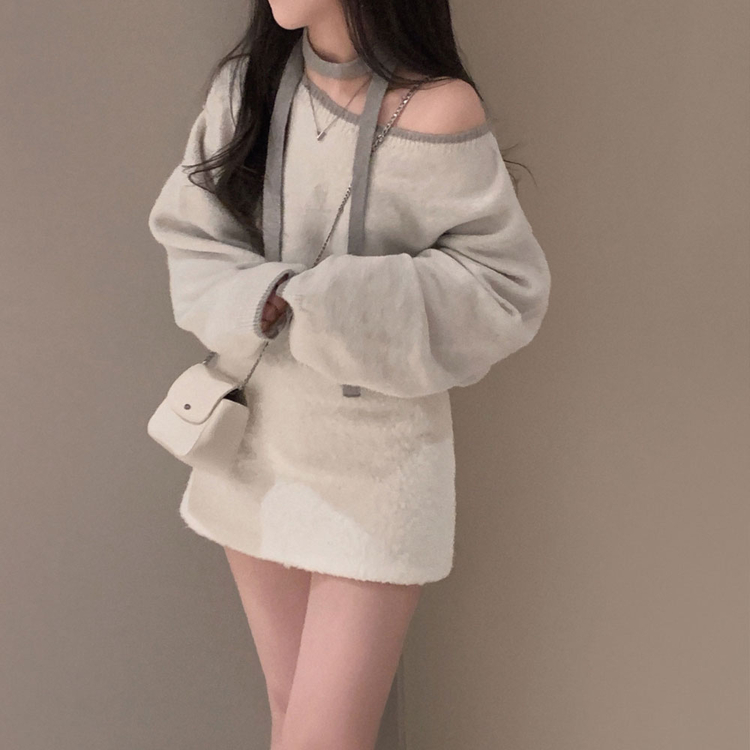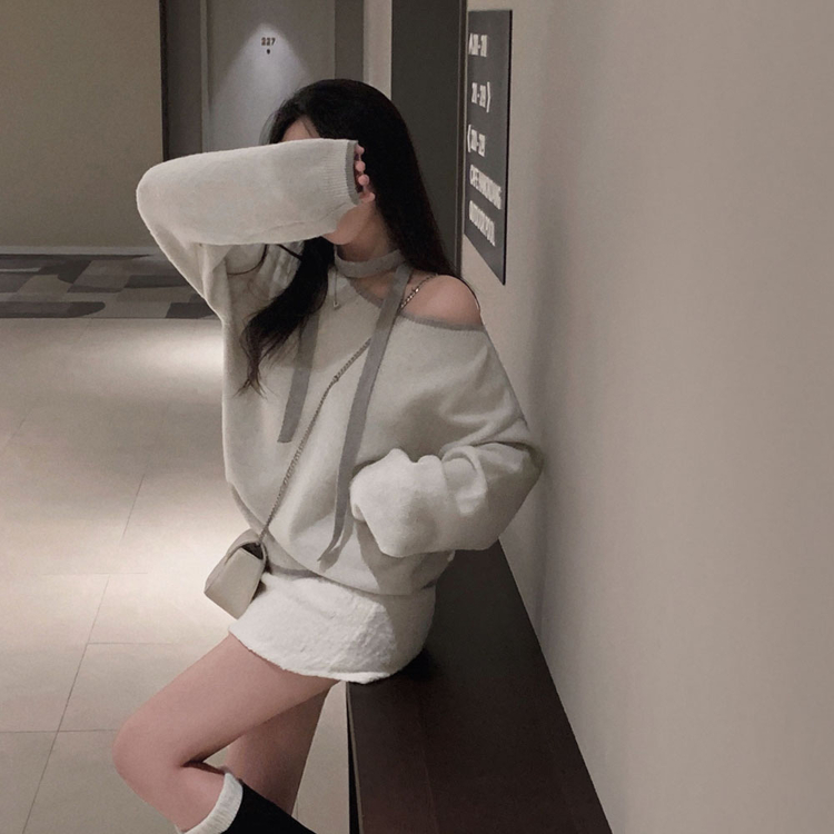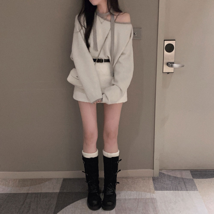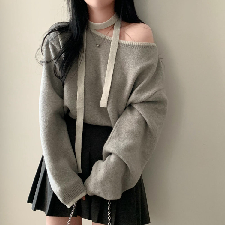 SNT35180 구름을 니트로 담는다면베스킨 배색 입술넥 니트 초커