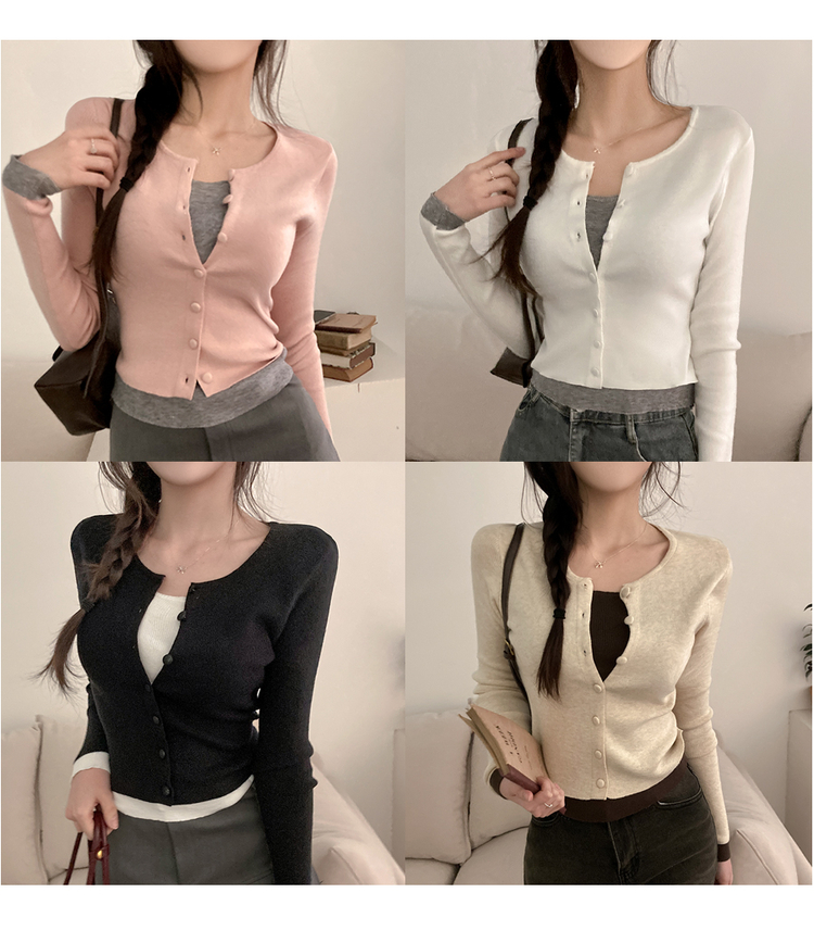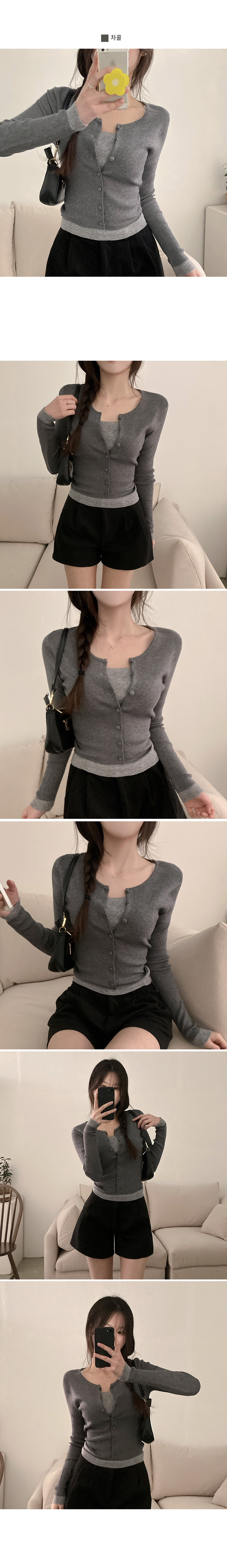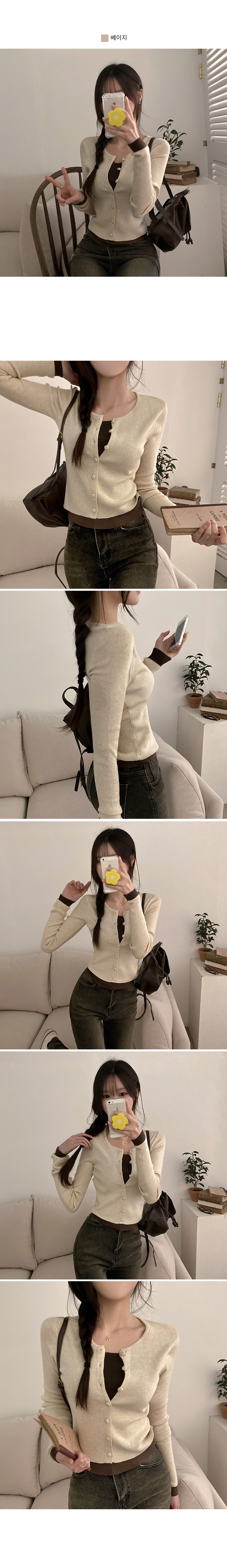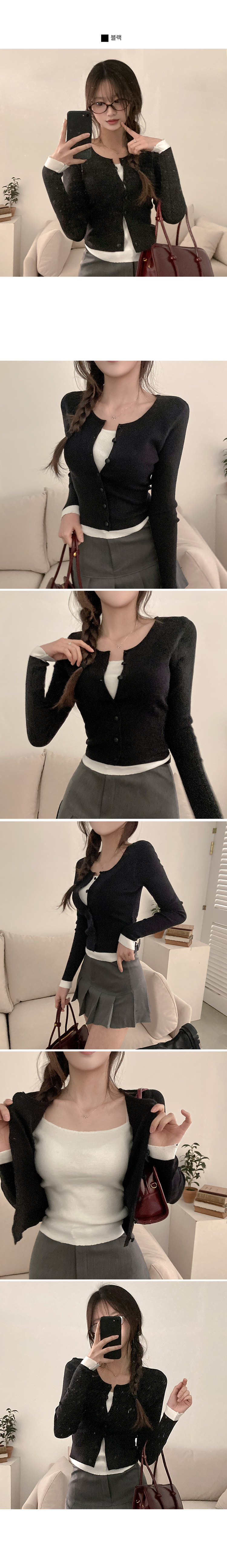 SGD30759 미닛 이중 레이어드 싸개단추 골지 가디건