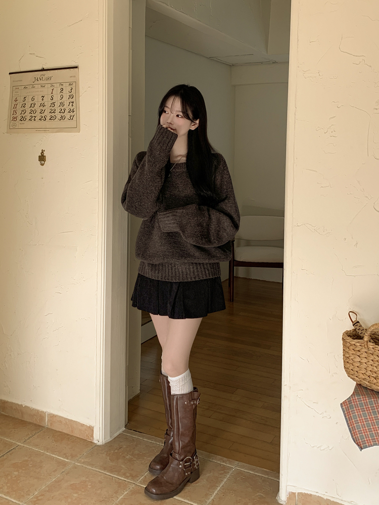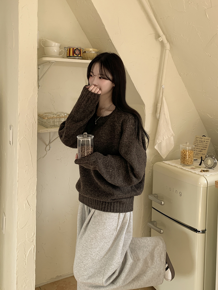 SNT35189 시보리 짱짱한 왕도톰 오버핏 무지 울 아방핏 라운드니트