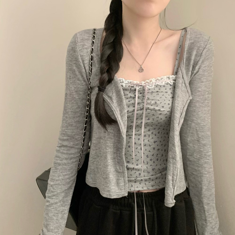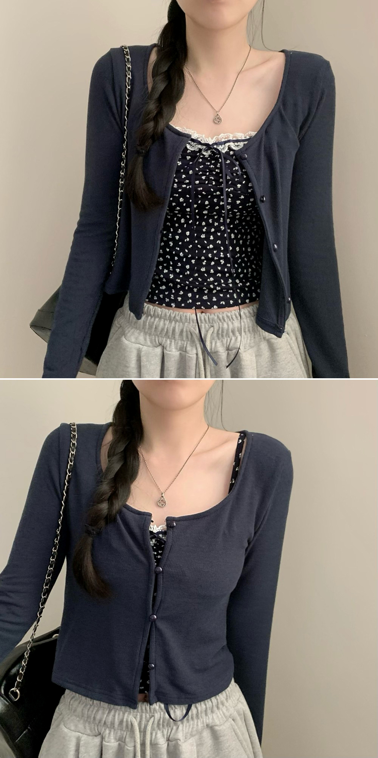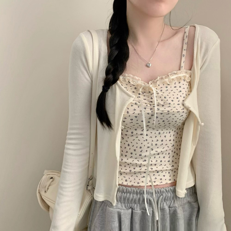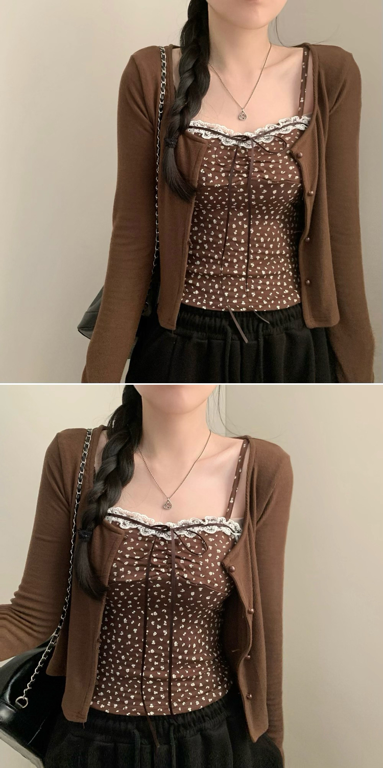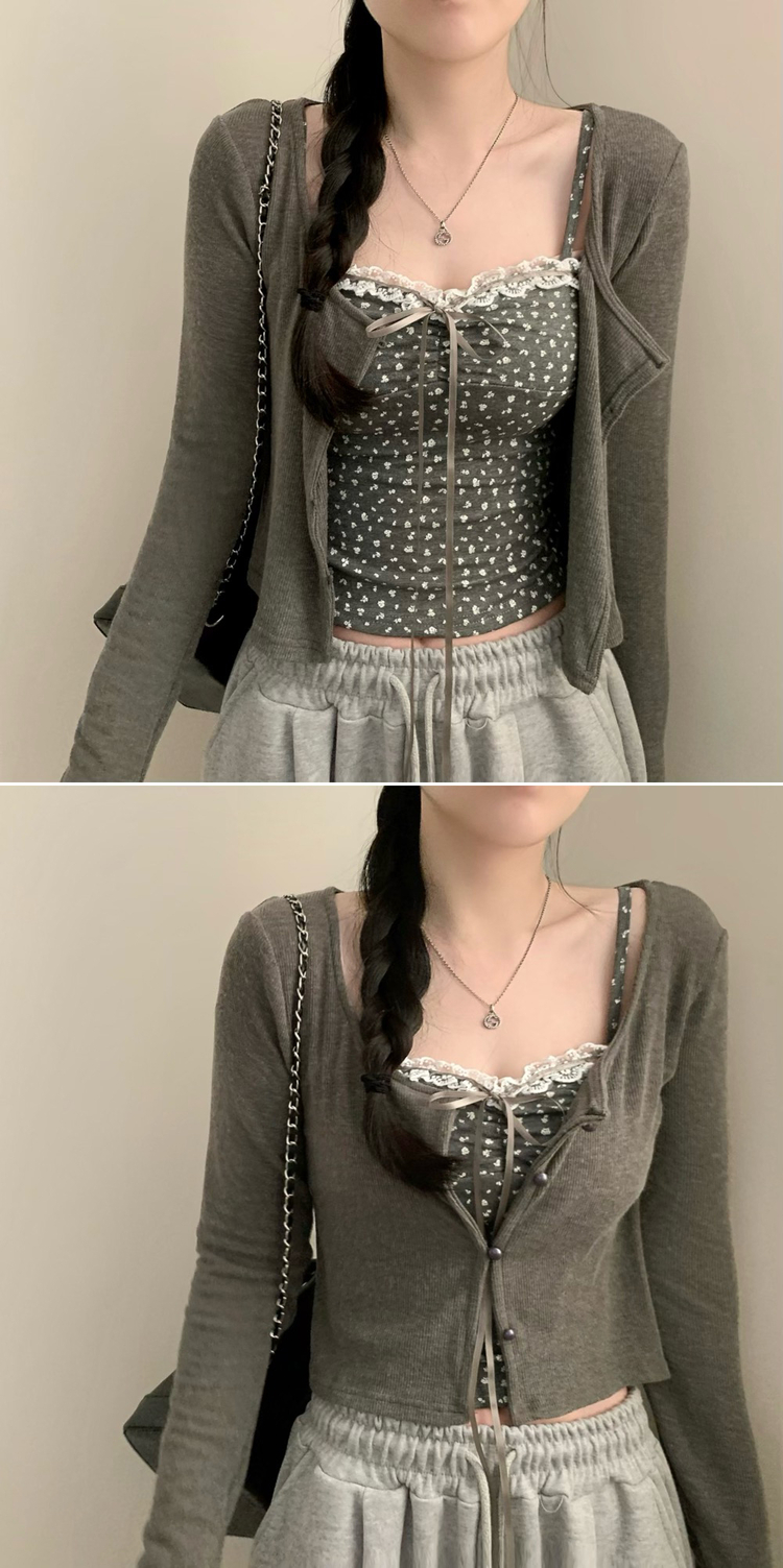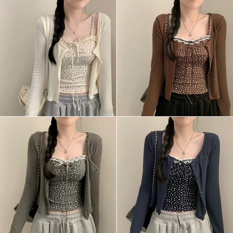SGD30766 태리 잔꽃 나시 민소매 콩단추 크롭 라운드넥 가디건 세트 투피스 봄 봄옷 플라워 벚꽃 가을 가을옷 모리걸
