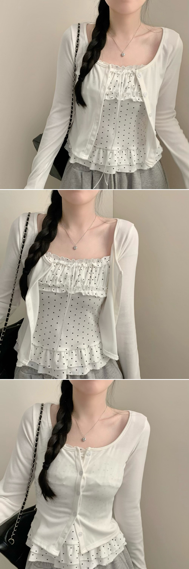 SGD30767 엘라 도트 캉캉 나시 크롭 긴팔 라운드넥 가디건 세트 투피스 봄 봄옷 벚꽃 모리걸 걸코어 봄 봄옷 가을 가을옷 땡땡이