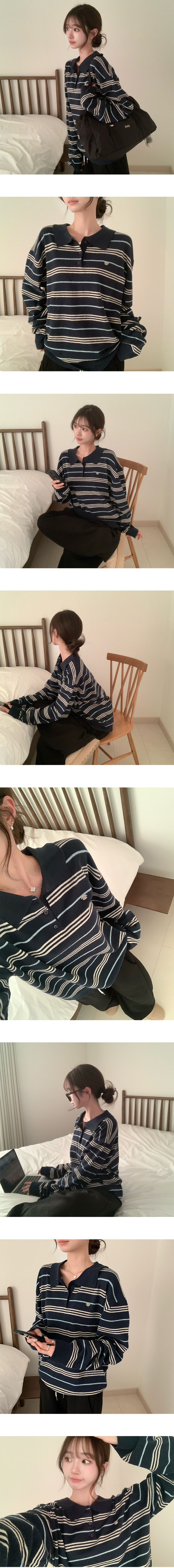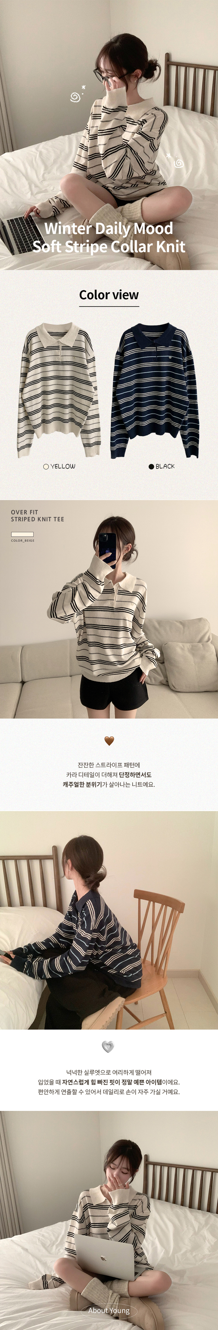 SNT35191 퀄리티 보장 하이큐 스트라이프 겨울 단가라 카라 버튼 상의 긴팔 니트 루즈핏 단추 긴팔티 2color