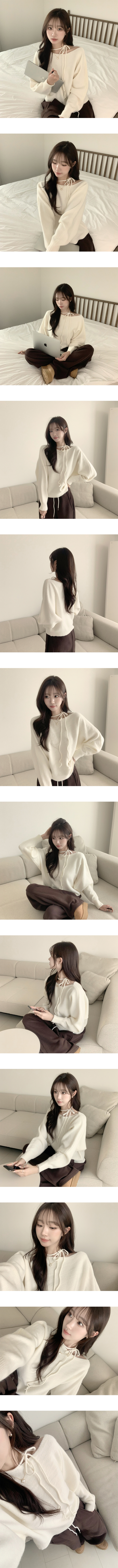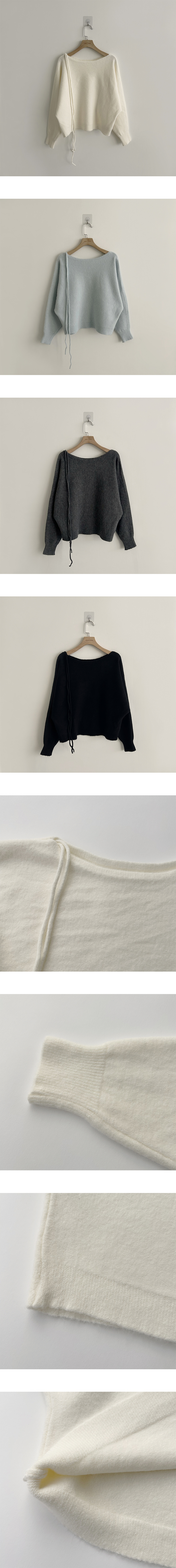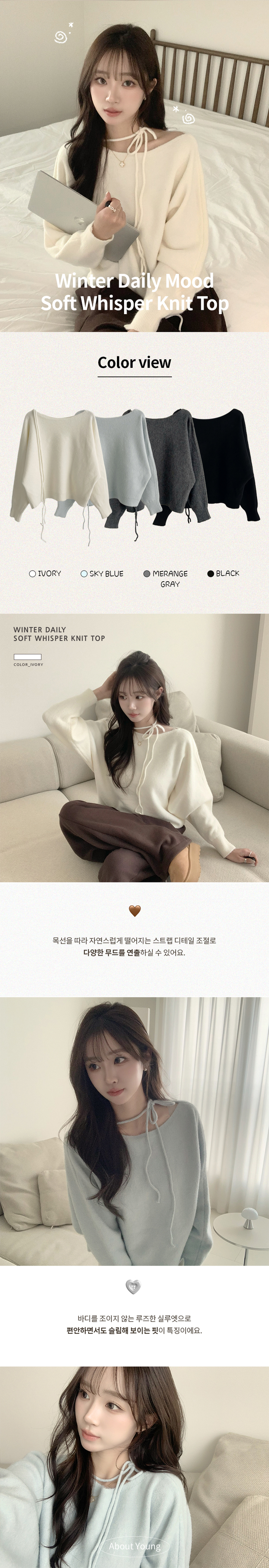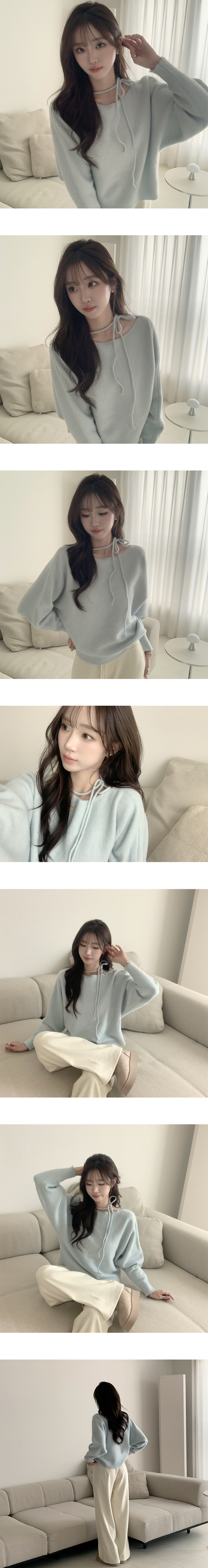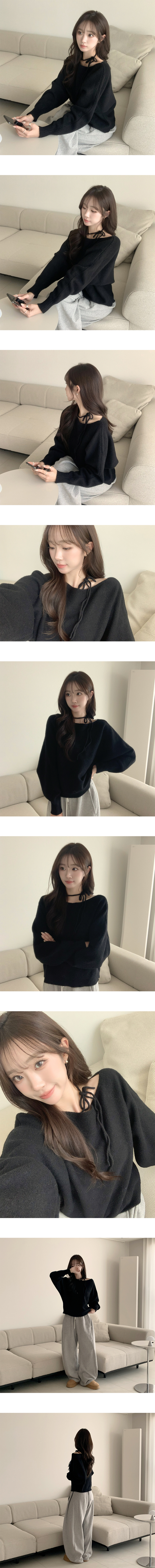 SNT35192 리본 초커 겨울 긴팔 울 니트 허리잘록 러블리 보트넥 긴팔티 페미닌 오프숄더 스트링