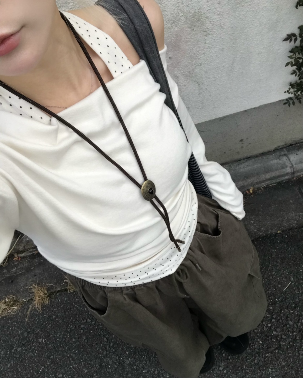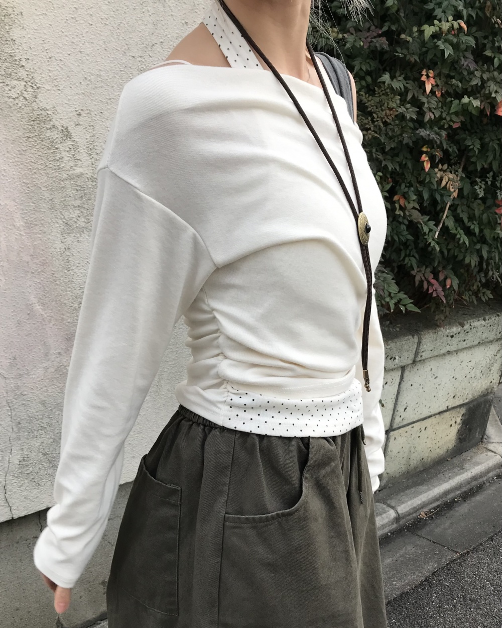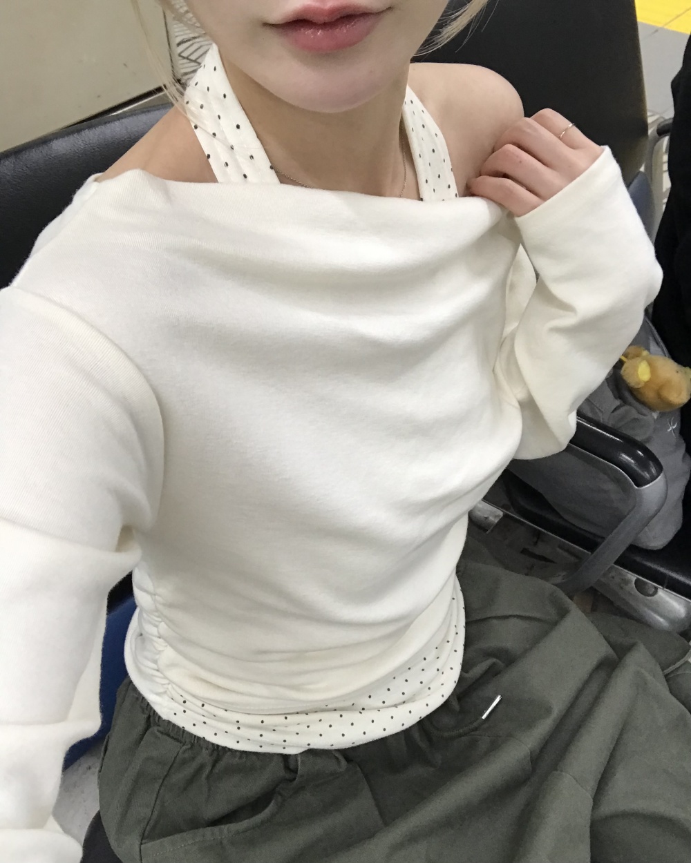STS75136 레터링 도트 레이어드 긴팔티셔츠