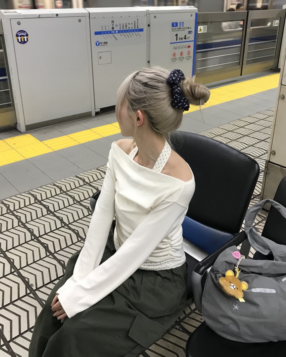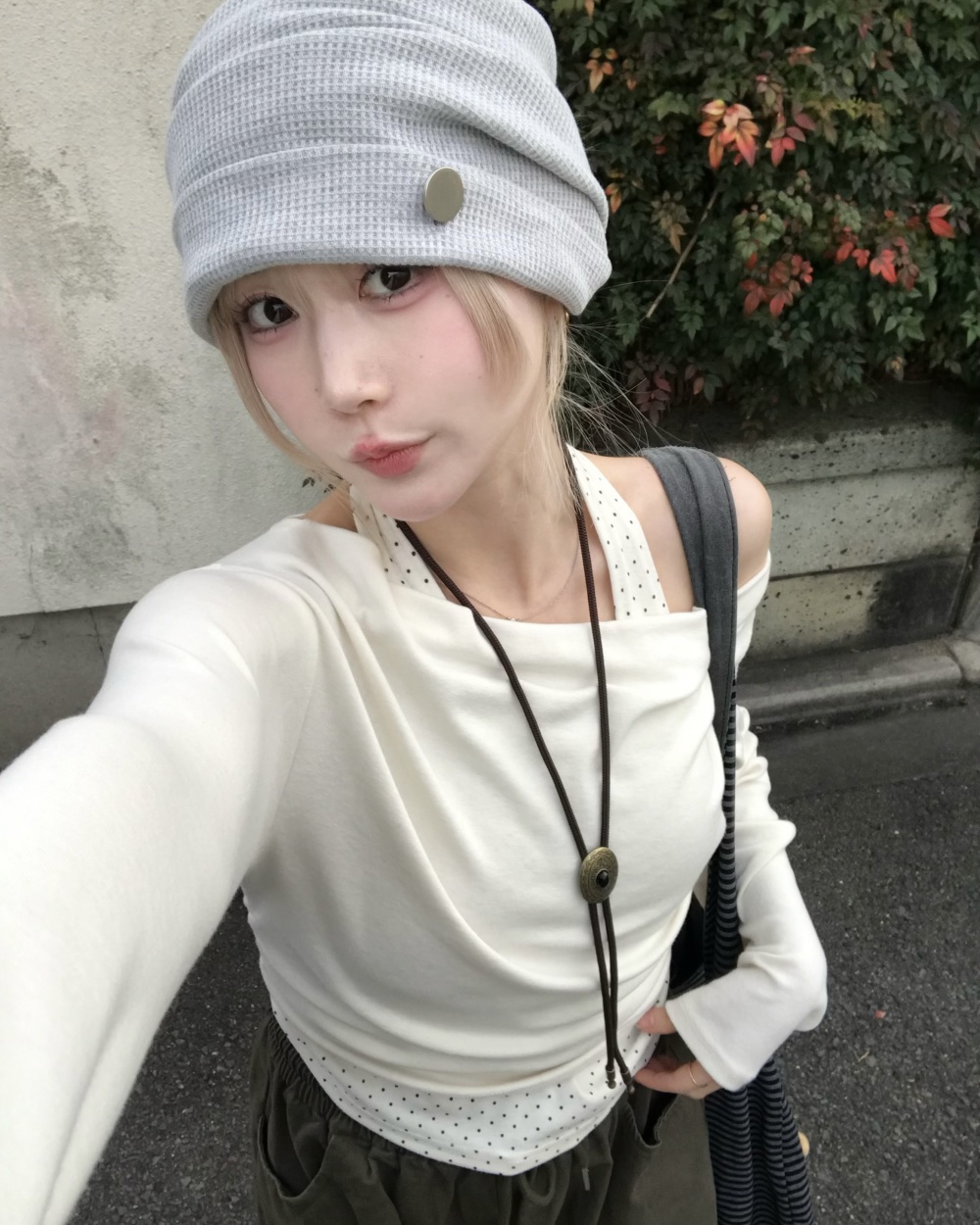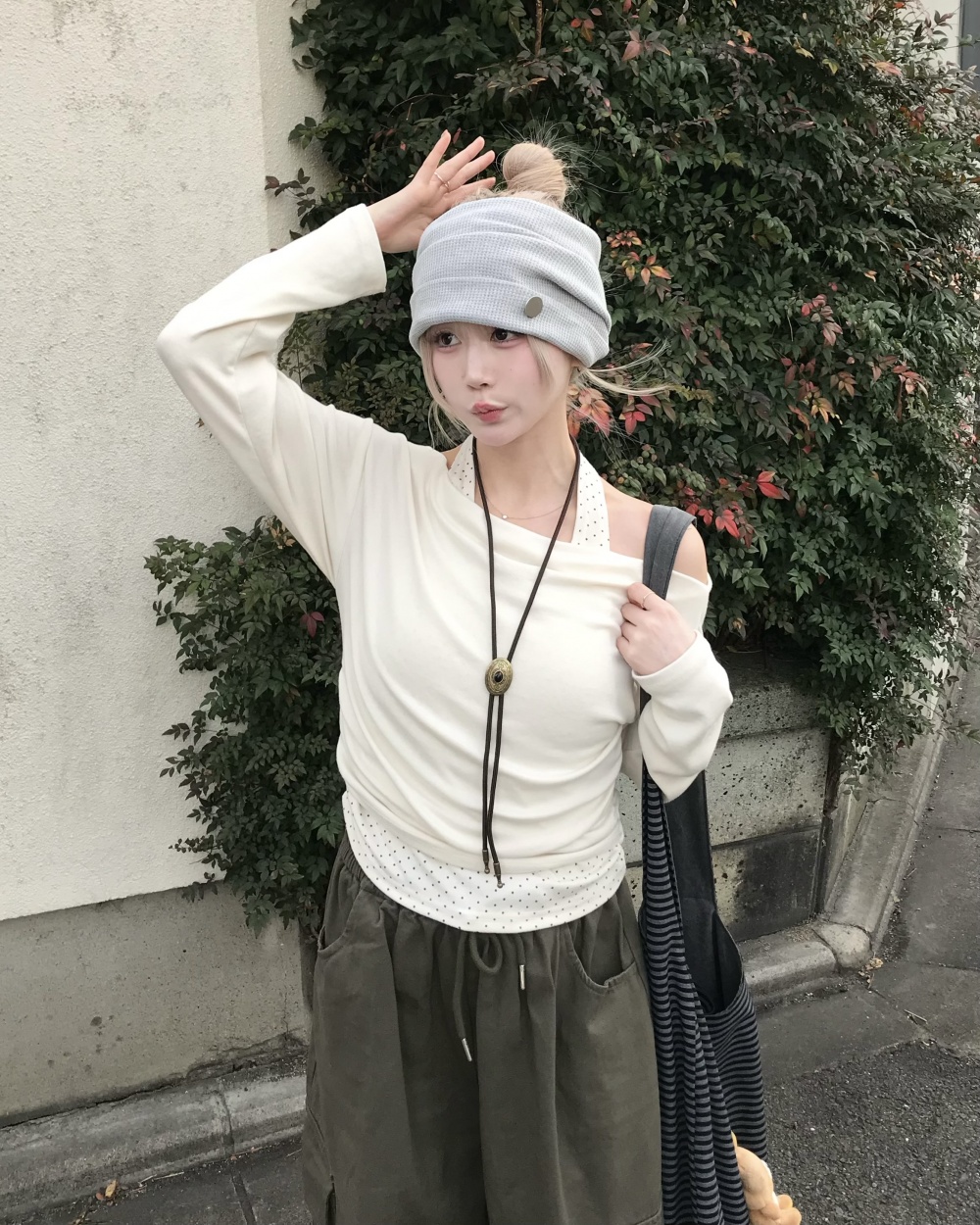 STS75136 레터링 도트 레이어드 긴팔티셔츠