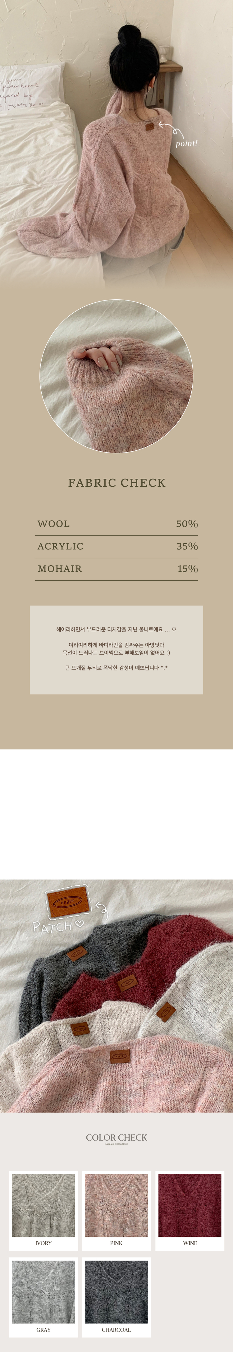 | 素材 | 울(50%), 아크릴(35%), 모헤어(15%) |
