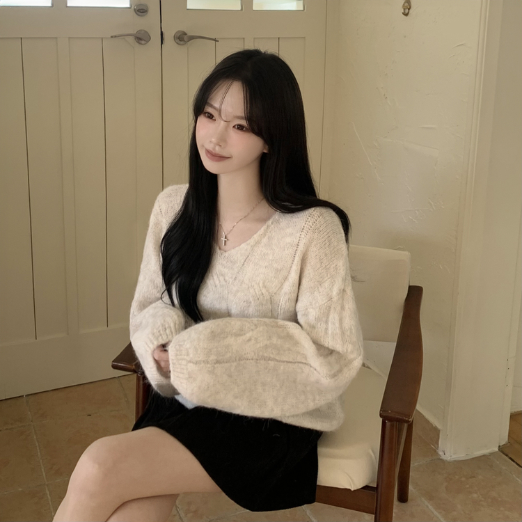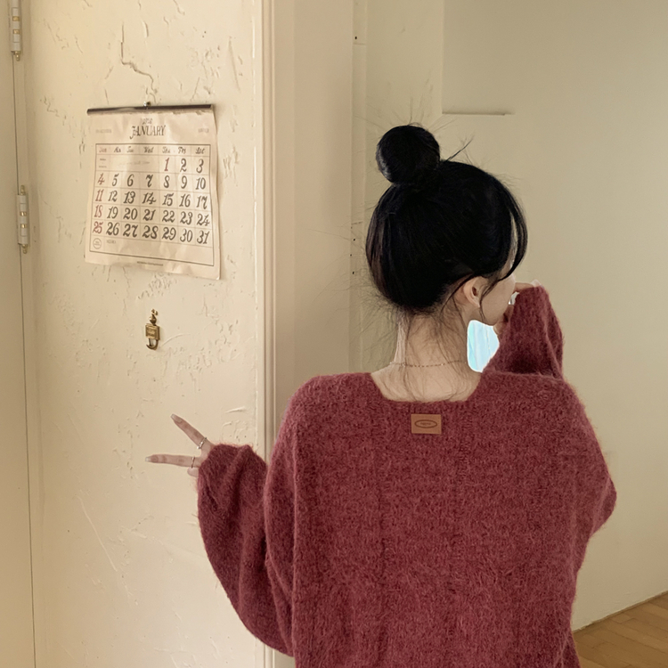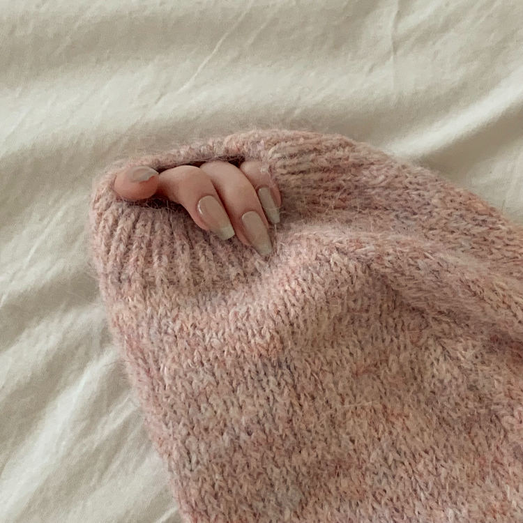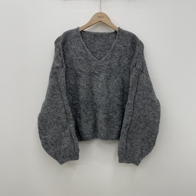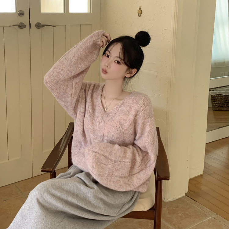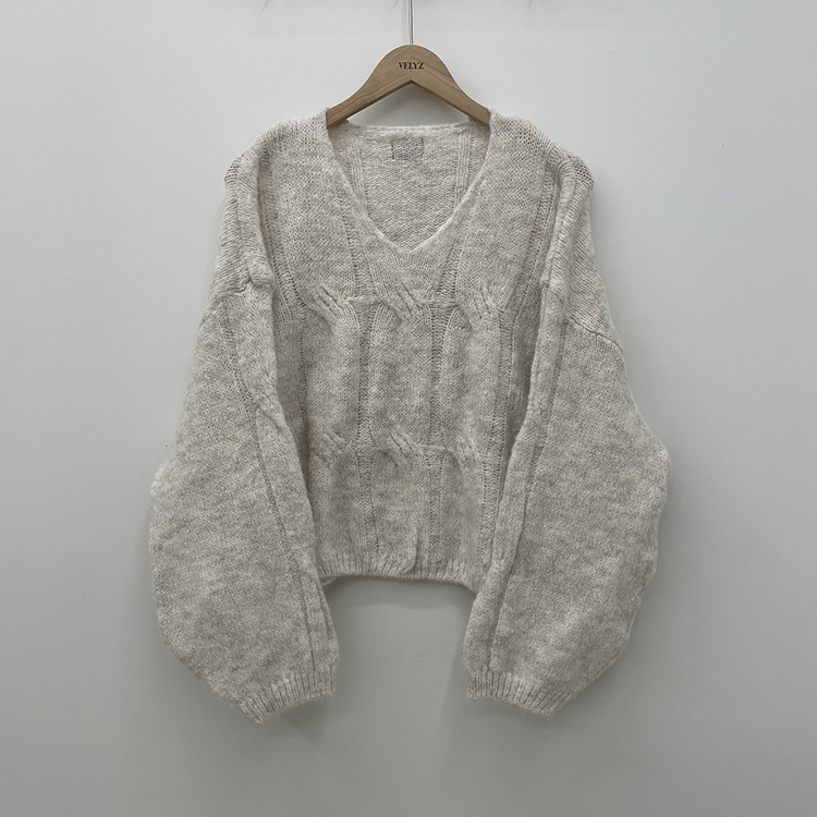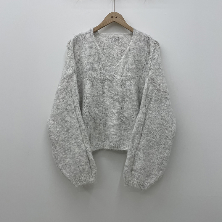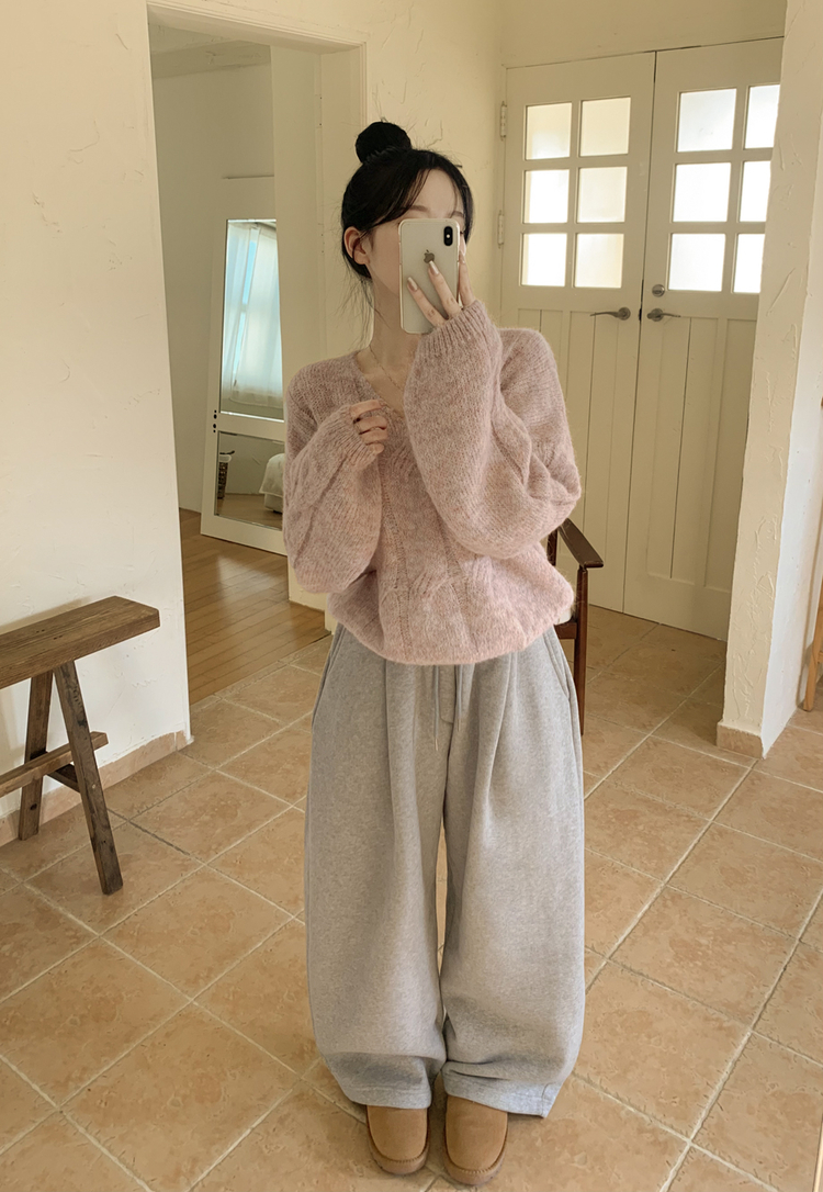 SNT35224 패치포인트 울 모헤어 보카시 브이넥 아방핏 꽈배기 울니트 무지개실 핑크니트