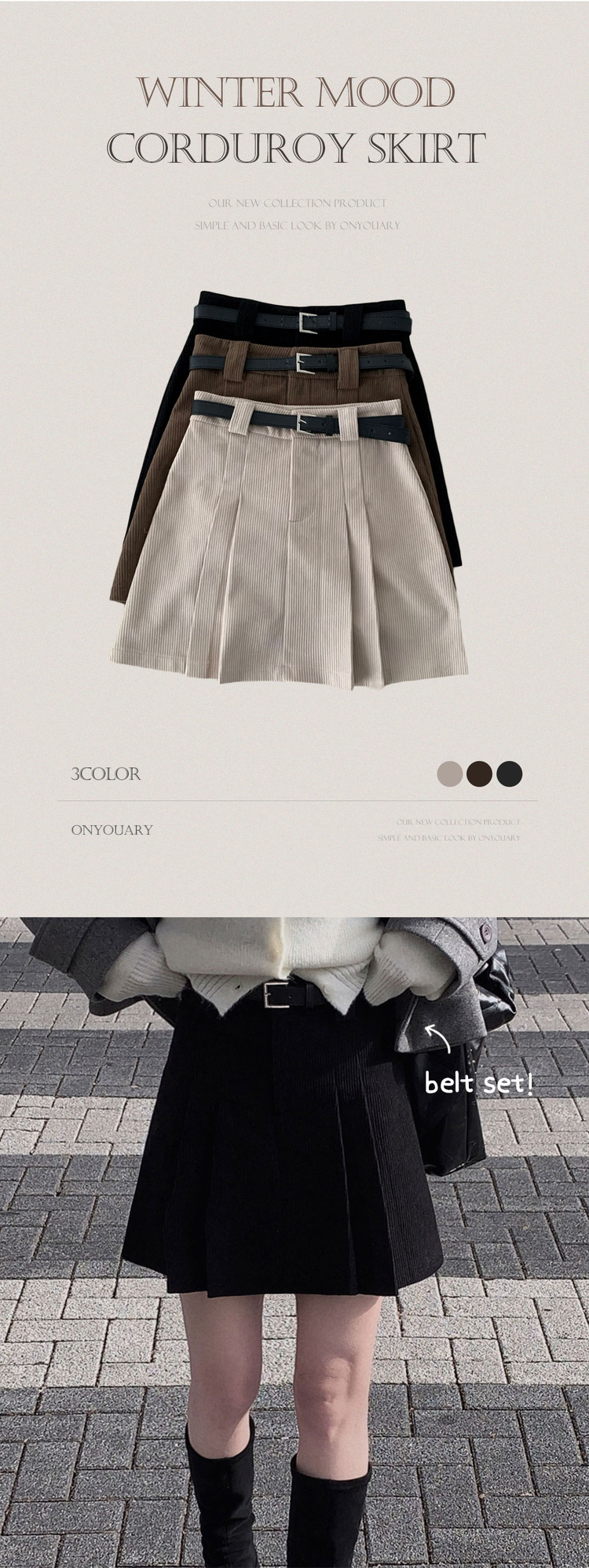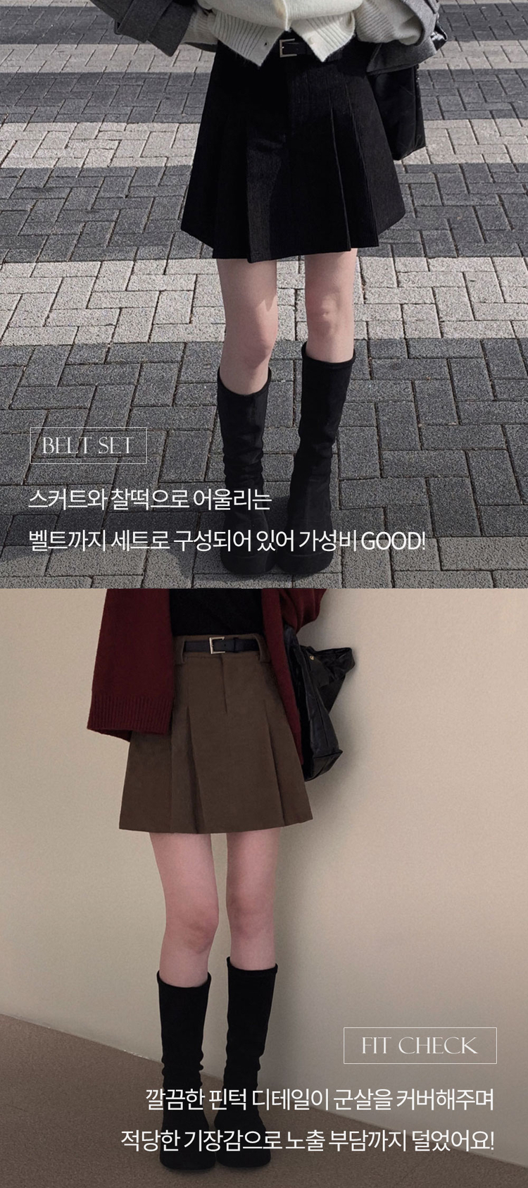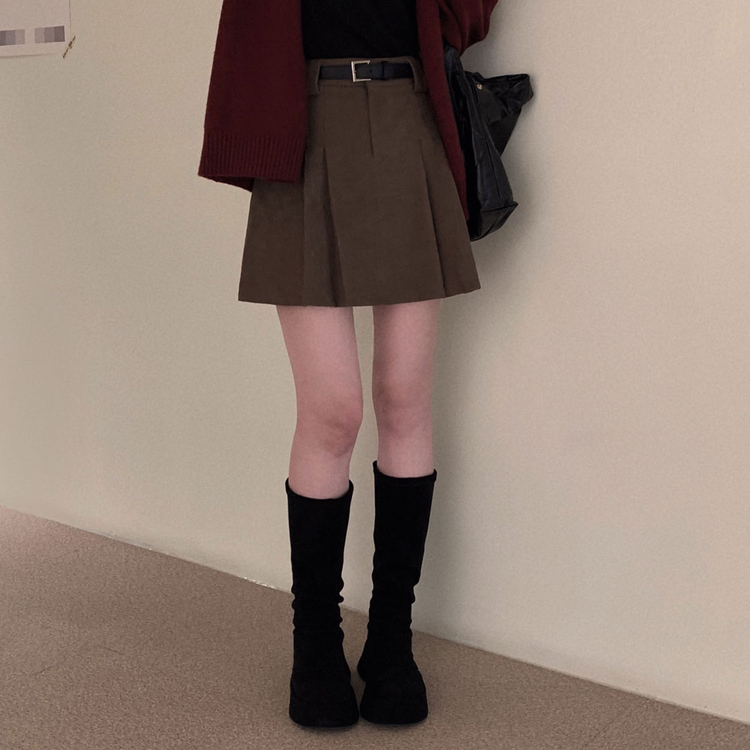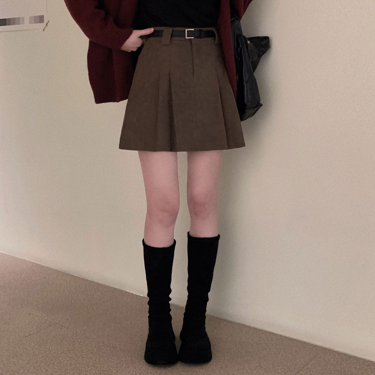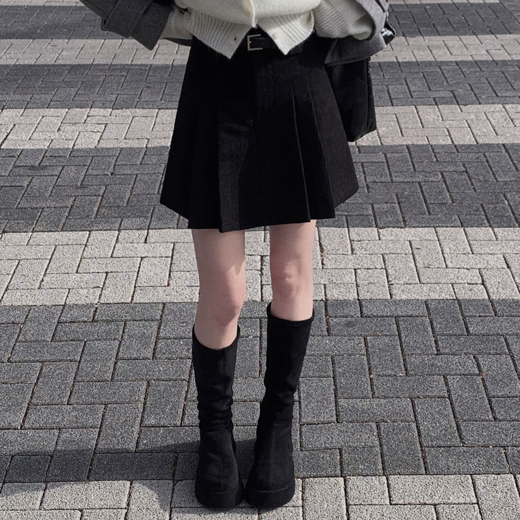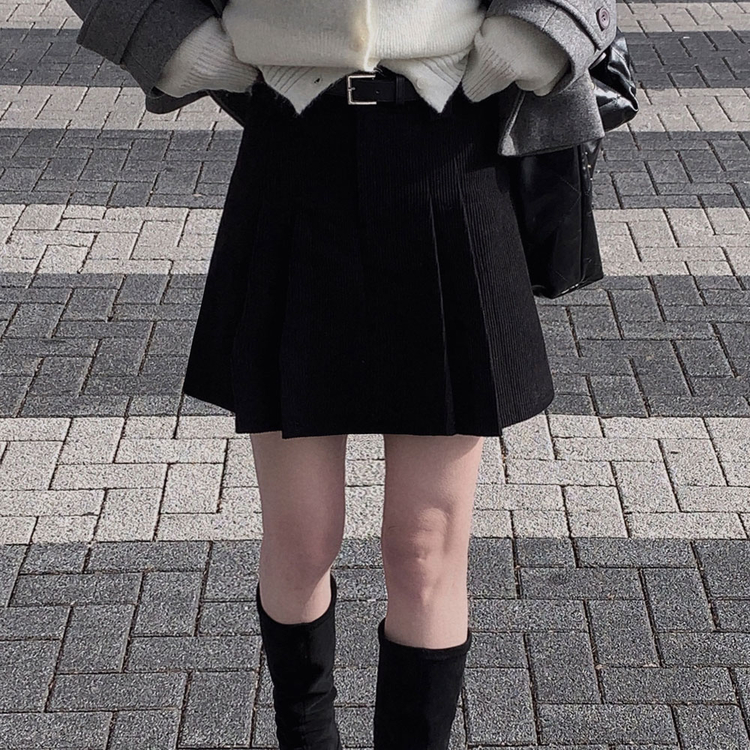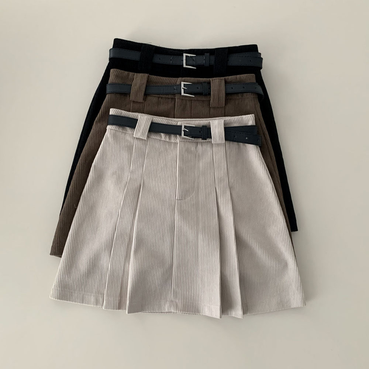 SSK25853 적당한 기장감어반 투핀턱 코듀로이 골덴 플리츠 미니 스커트