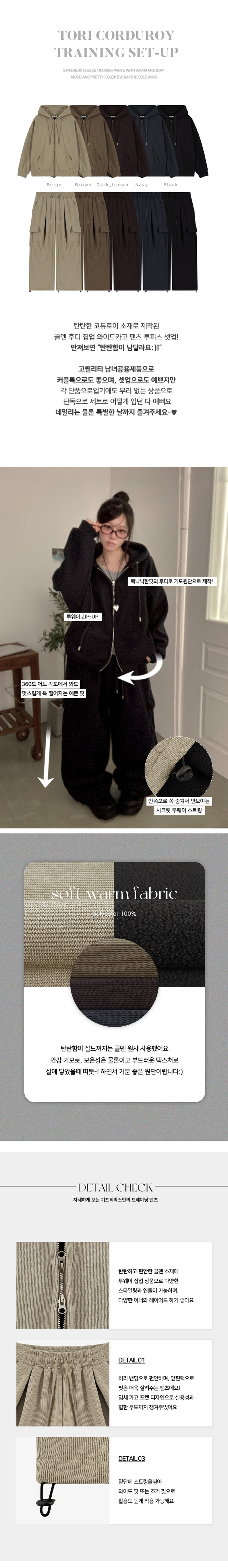 STR5689 토리 남녀공용 골덴 와이드 조거 투피스 트레이닝 셋업 세트