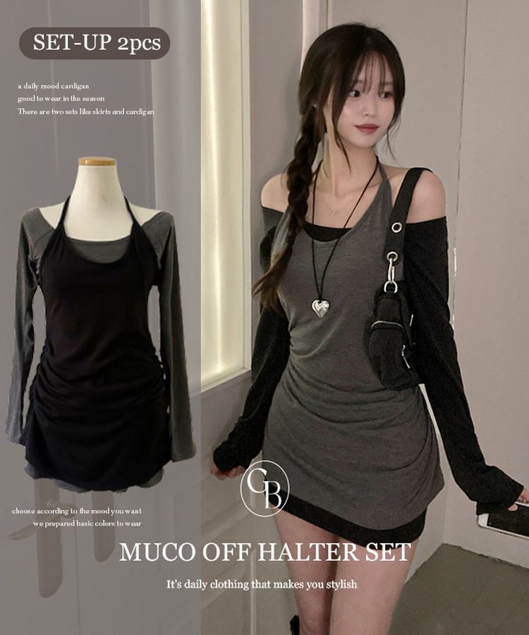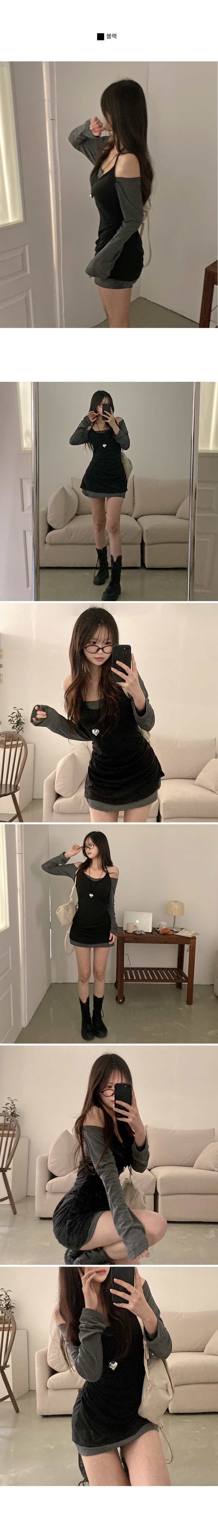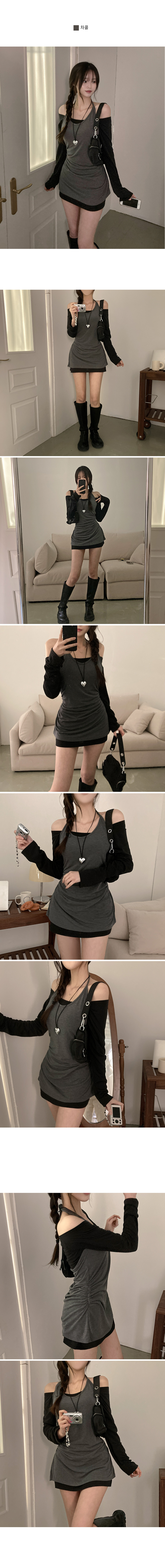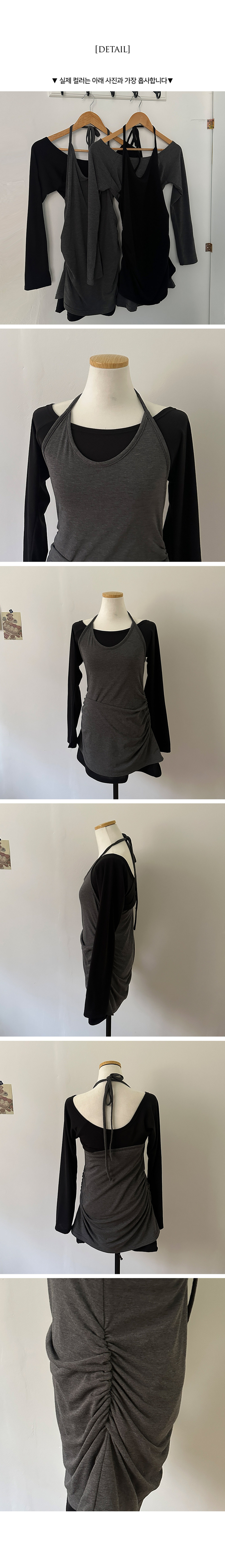 SOP30676 무코 기모 홀터 나시 레이어드 뷔스티에 일체형 오프숄더 원피스