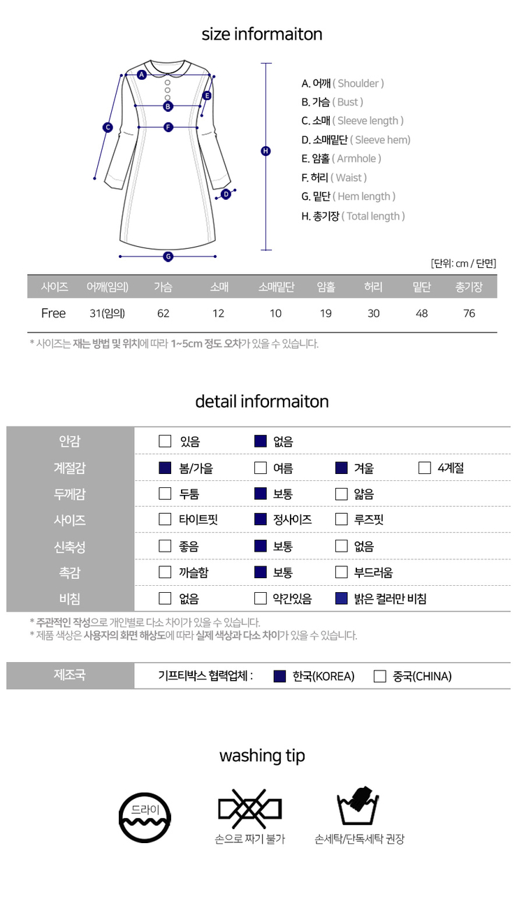 | 素材 | 폴리(60%), 레이온(32%), 스판(3%) |