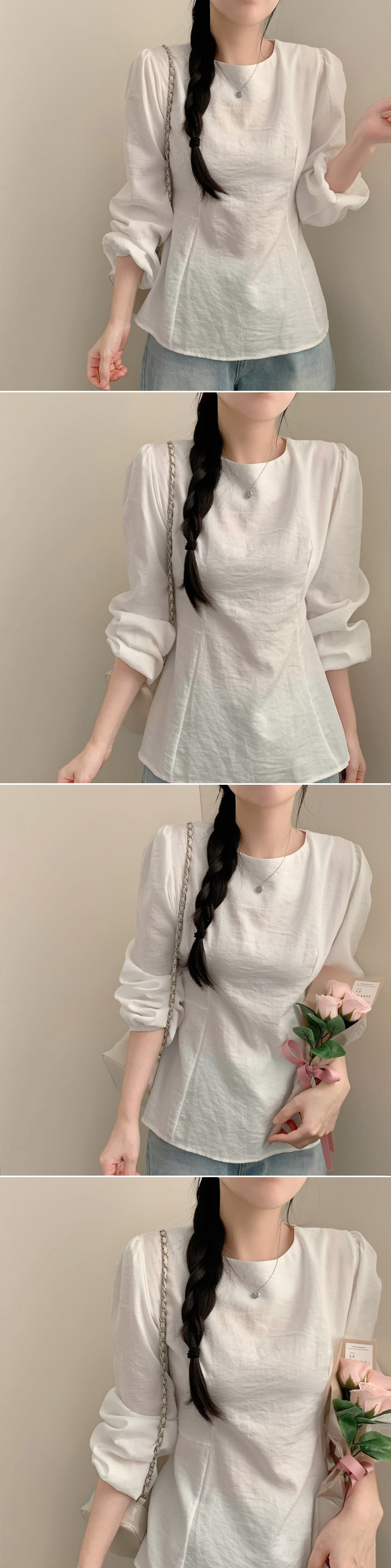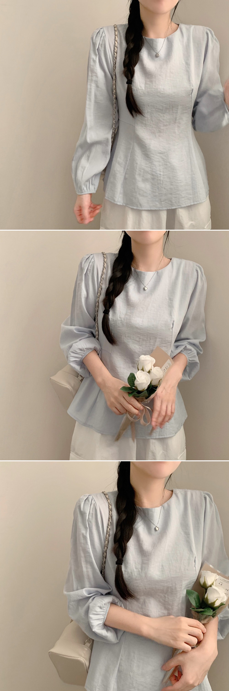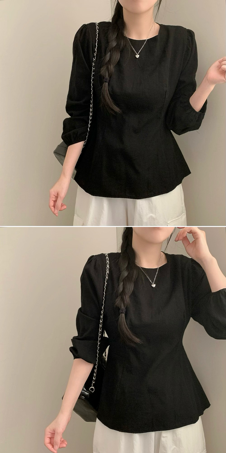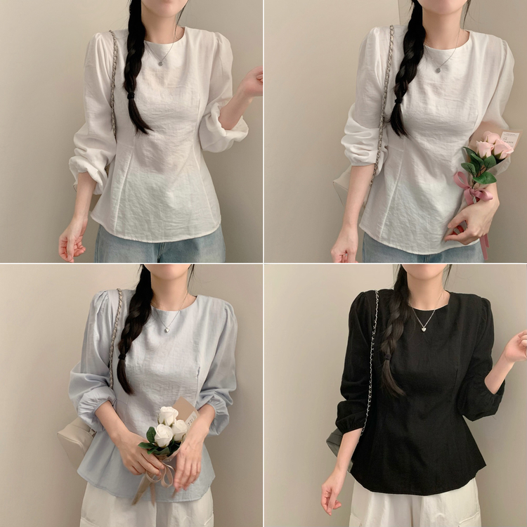 SBS30517 이브 허리끈 봄 긴팔 라운드넥 블라우스 봄옷 상의 벚꽃