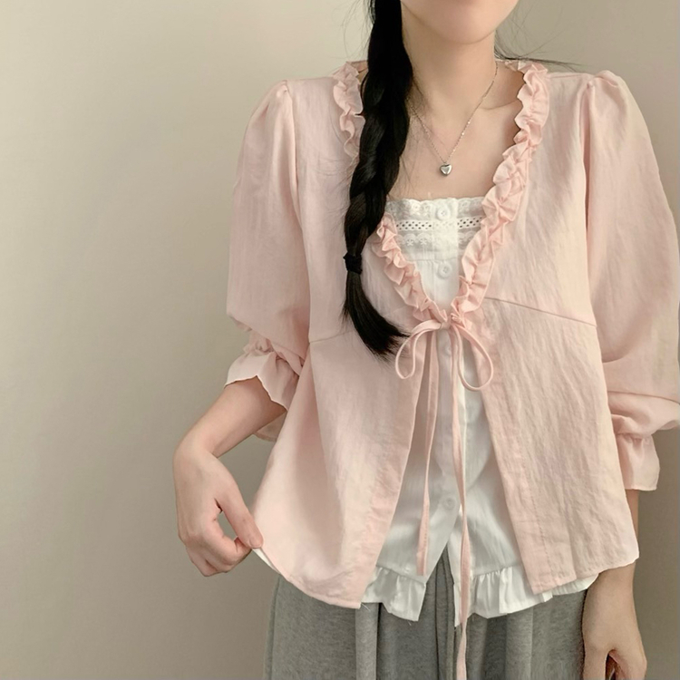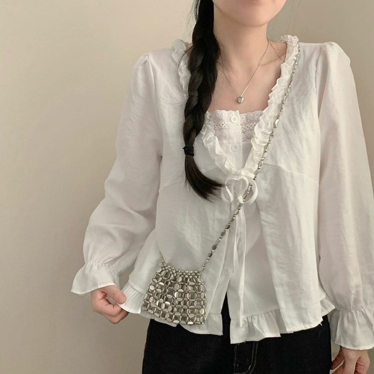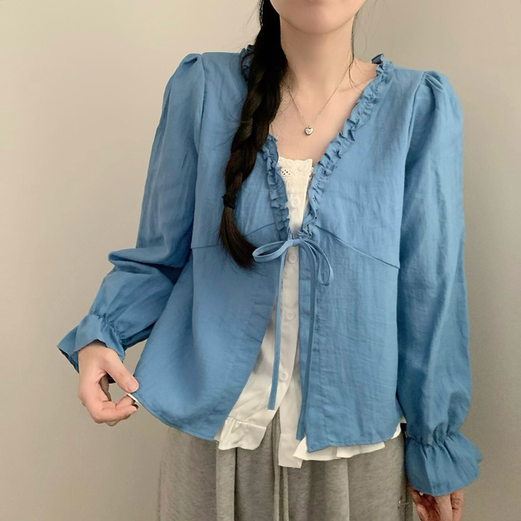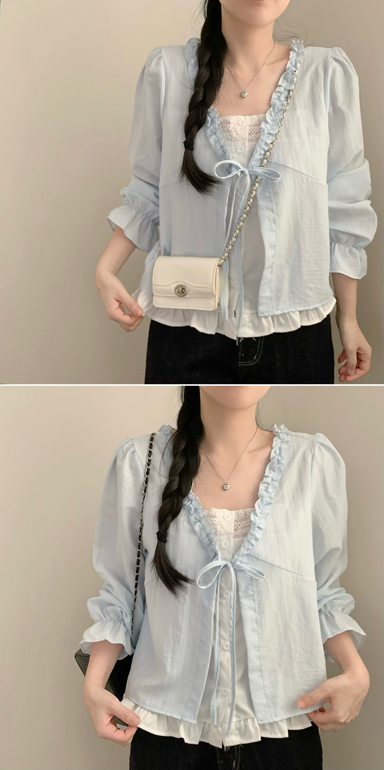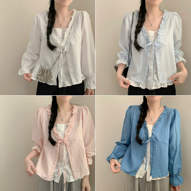SBS30518 나비 레이스 봄 리본 긴팔 쉬폰 블라우스 상의 데이트 벚꽃 봄옷