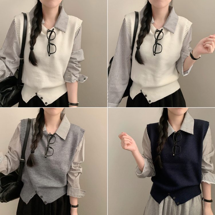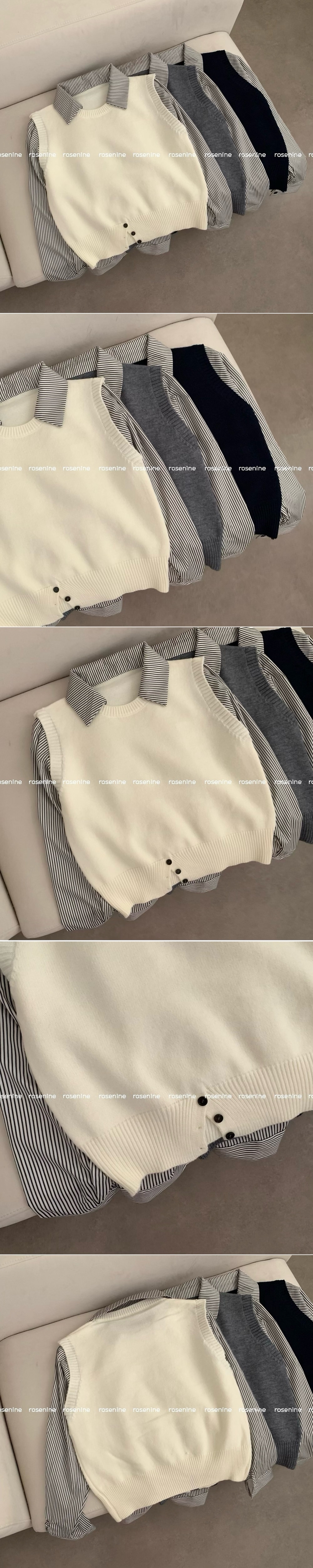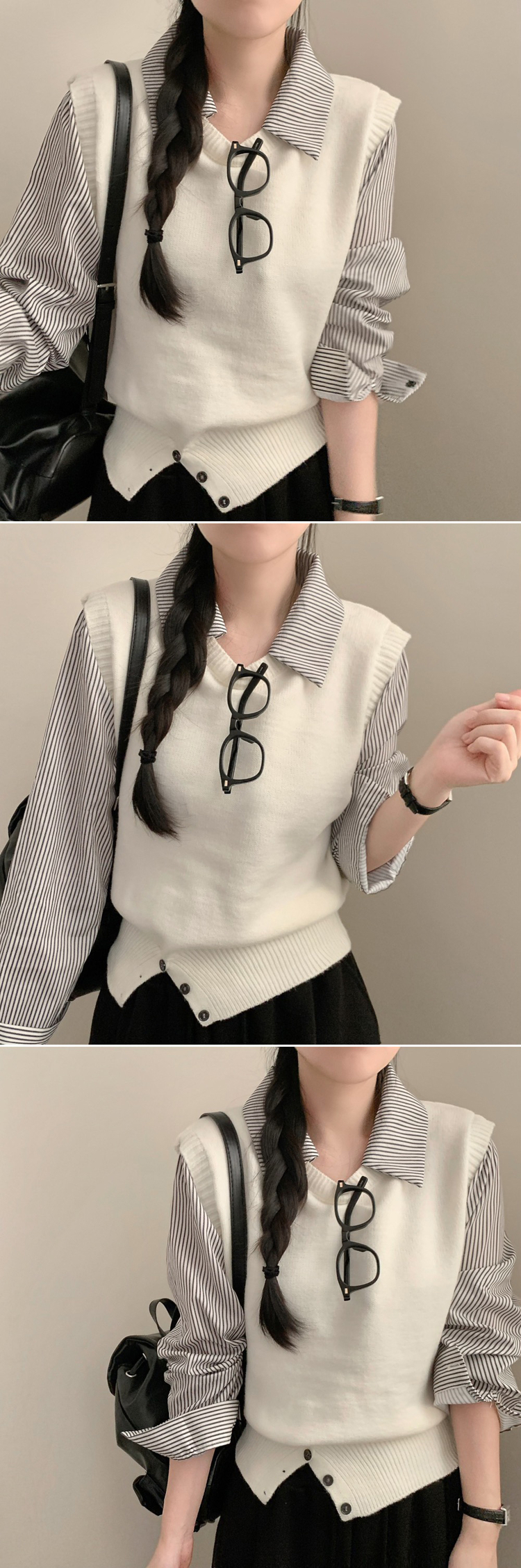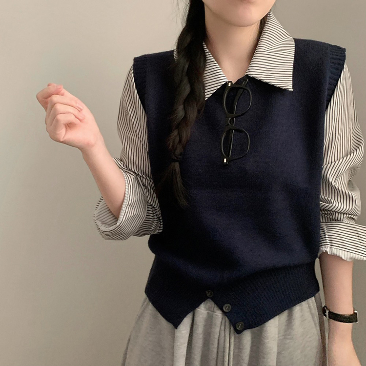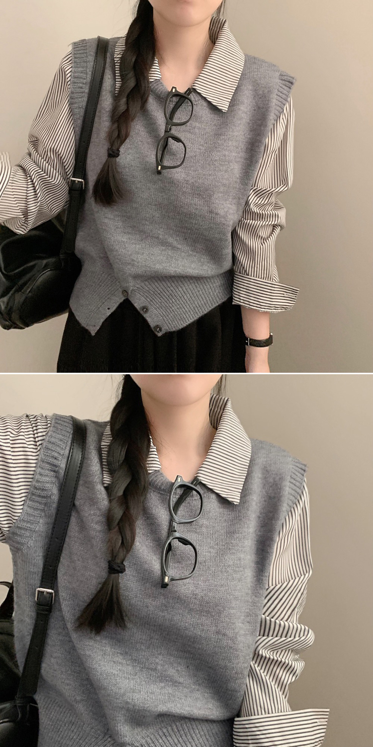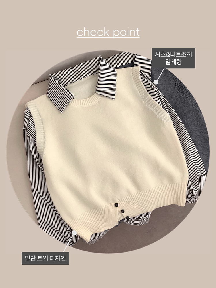 SBS30531 로로 스트라이프 카라넥 셔츠 레이어드 니트 조끼 단가라 줄무늬 하객룩