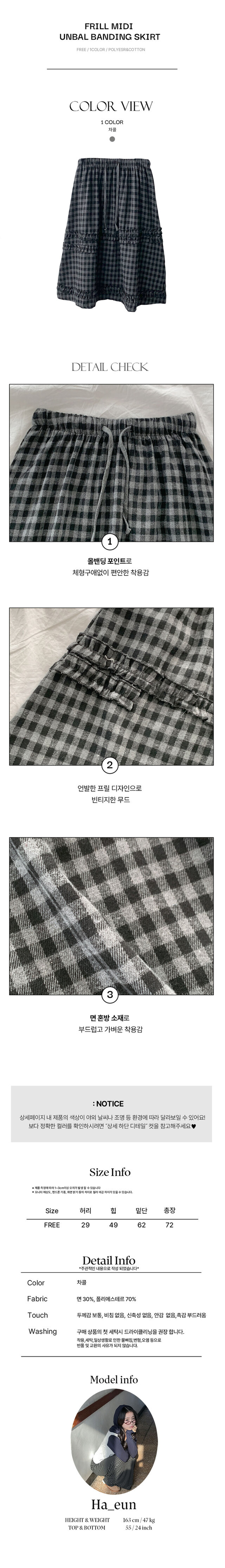 SSK25872 에이나 체크 프릴 밴딩 플레어 미디 스커트 a라인 체크치마 체크스커트