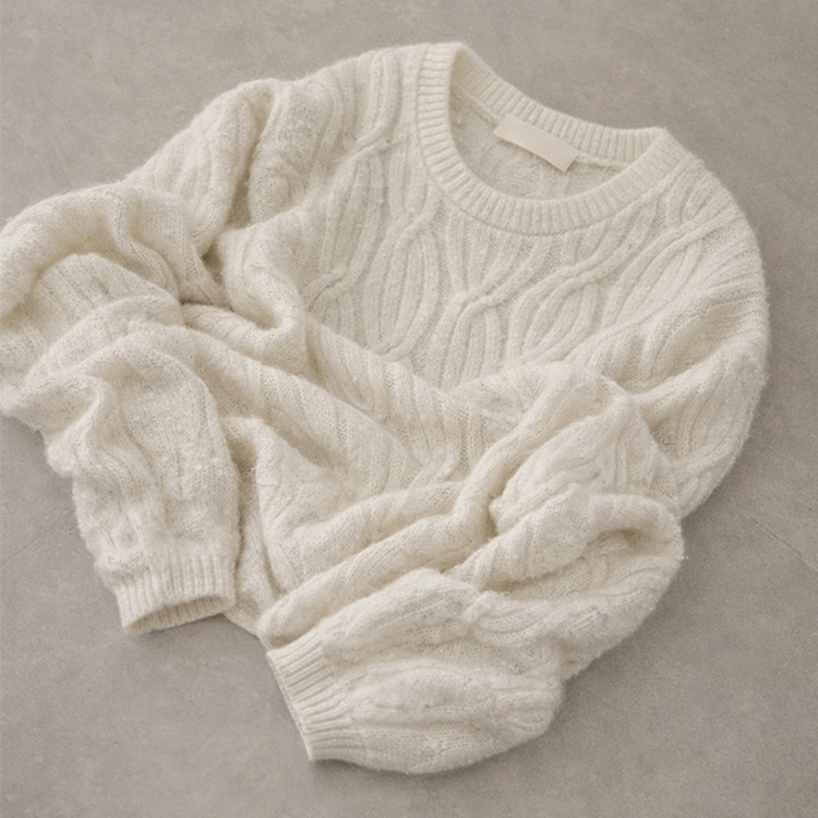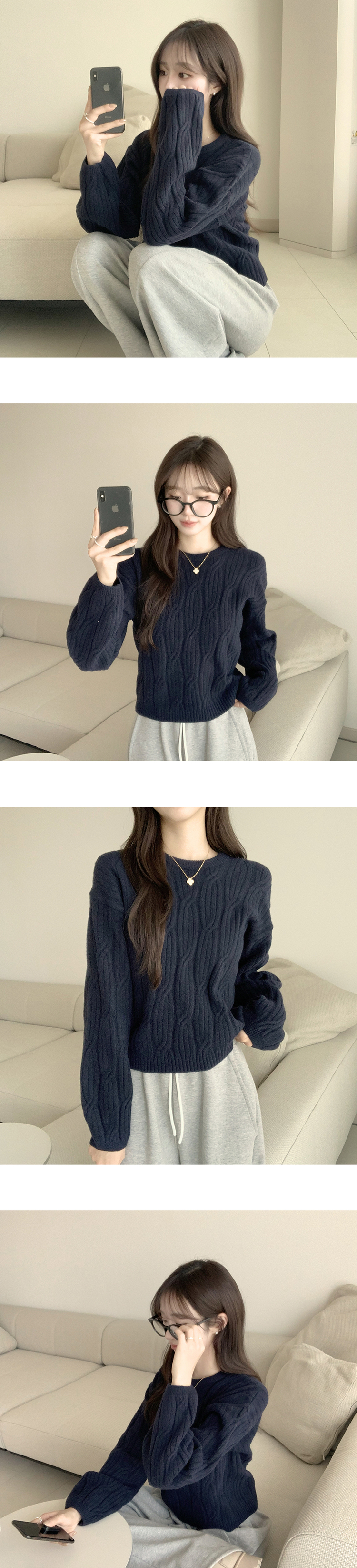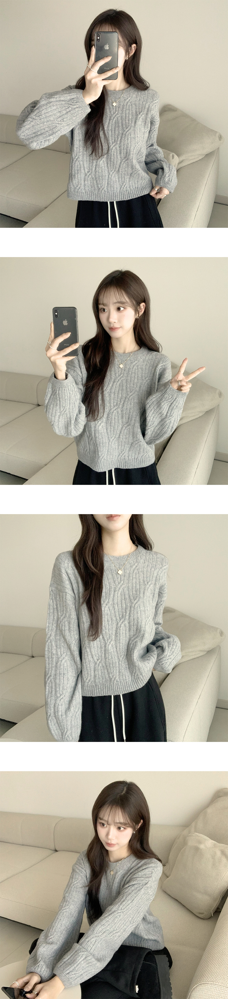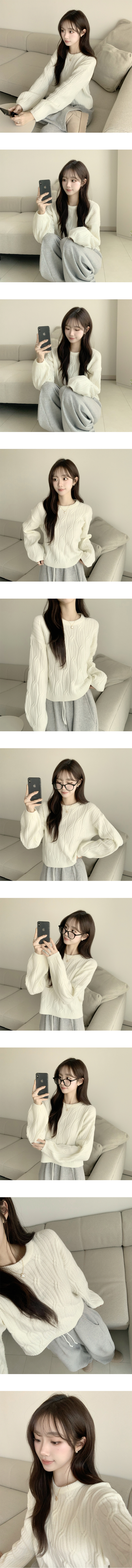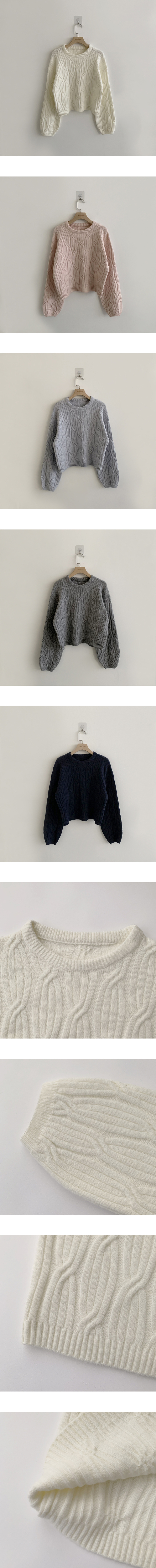 SNT35298 크림치즈 포근 라운드 울 케이블 겨울 긴팔 니트 세미 크롭 여리핏 꽈배기 긴팔티 루즈핏 상의 5color
