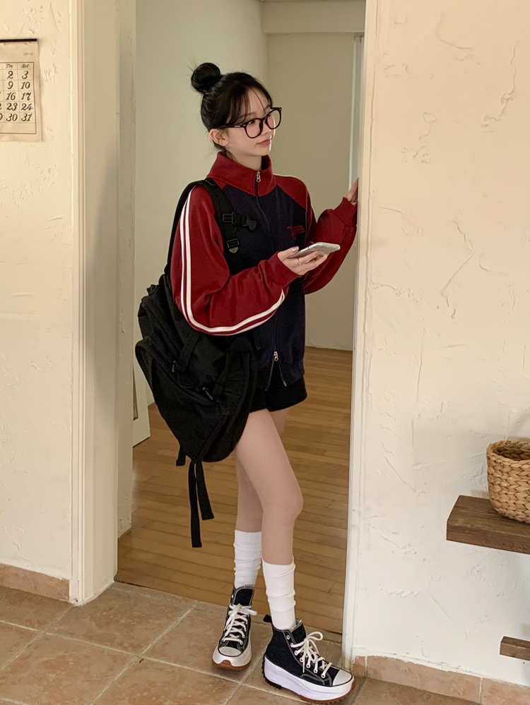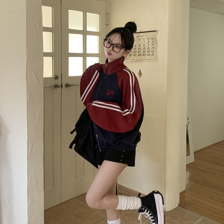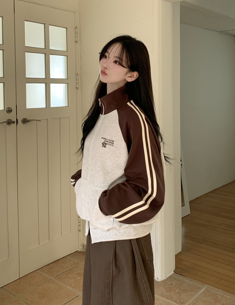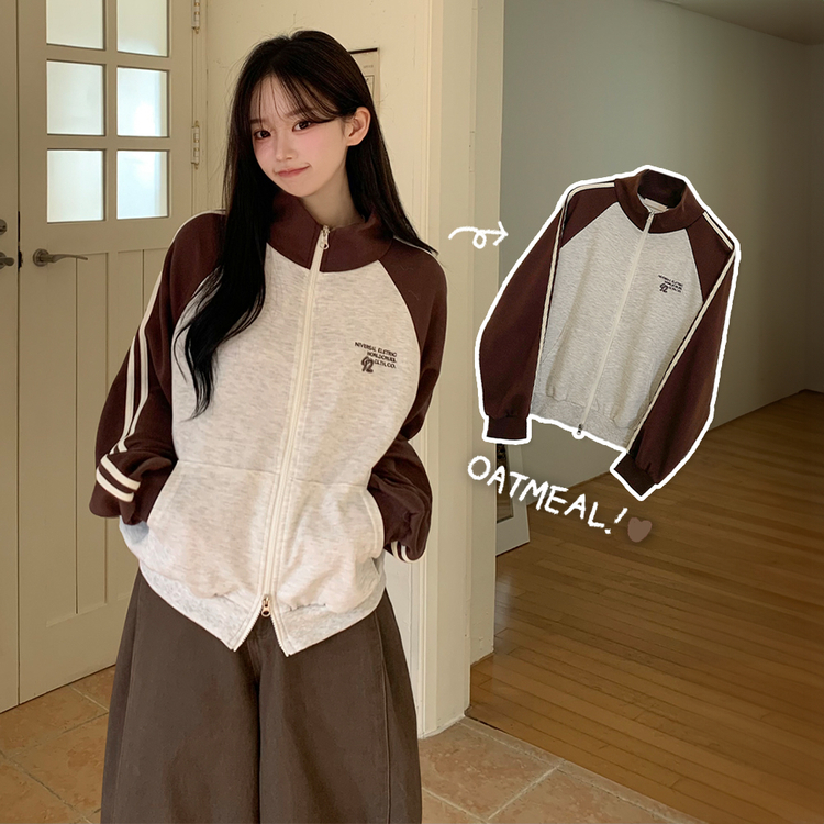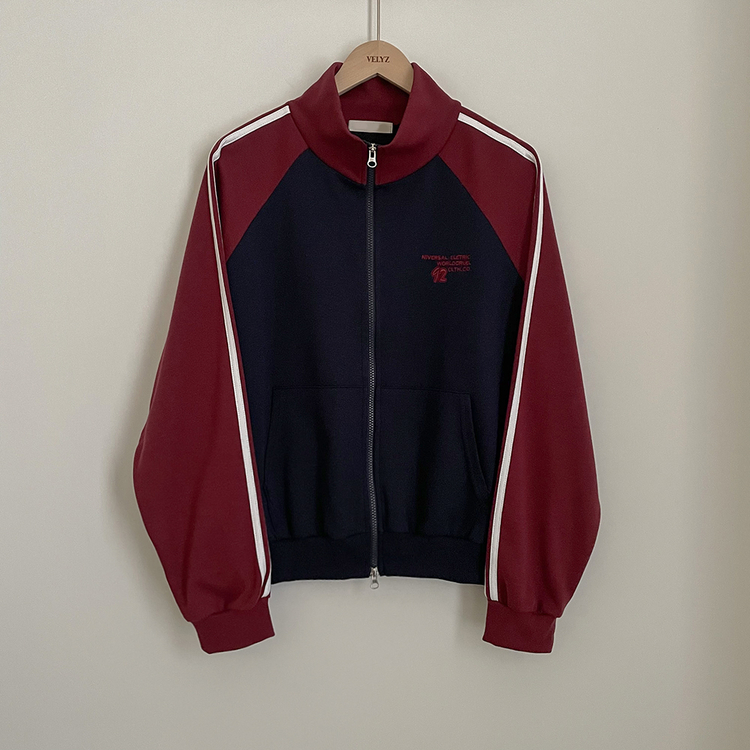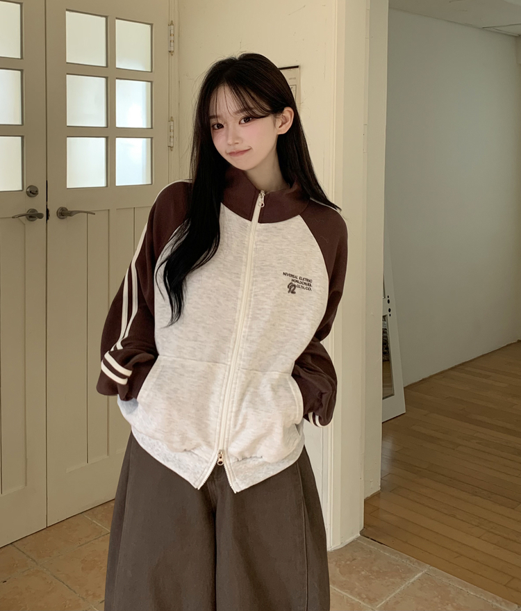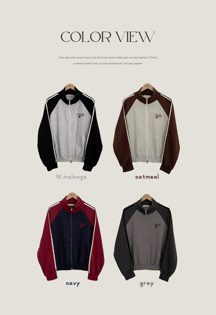 SJP20285 배색 나그랑 트랙라인 하이넥 레터링 투웨이 두줄 트레이닝 집업