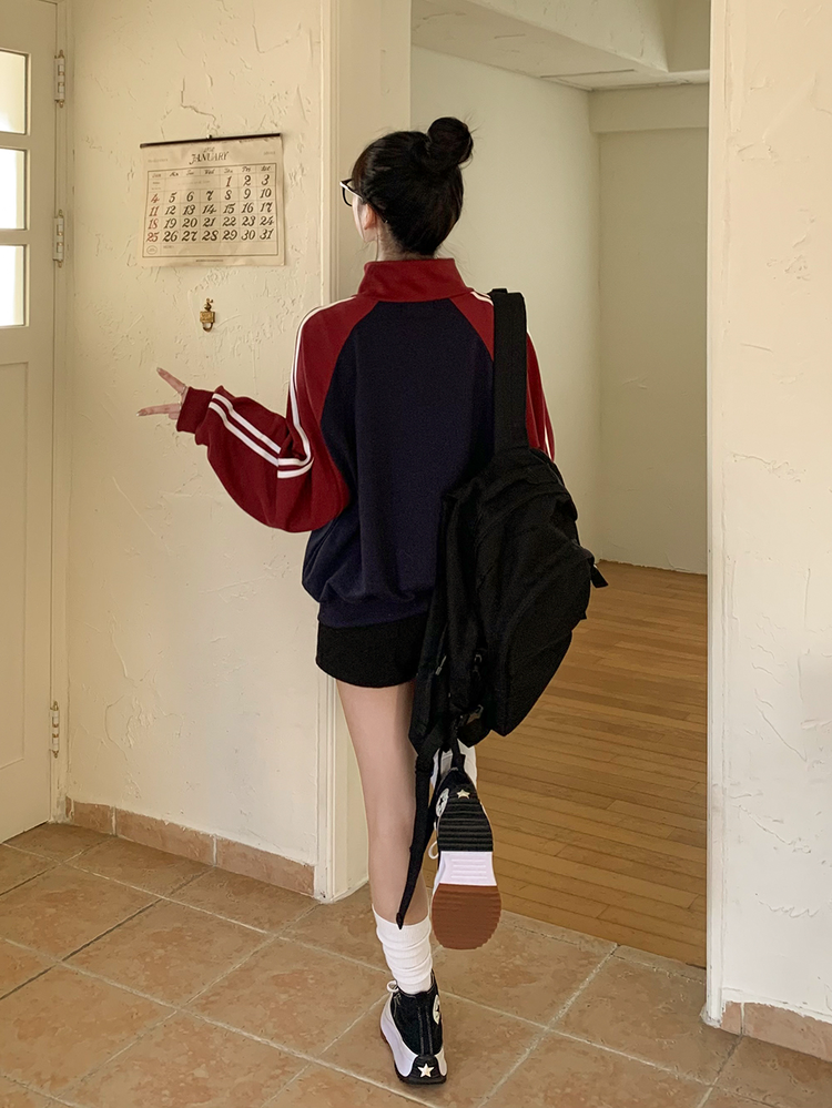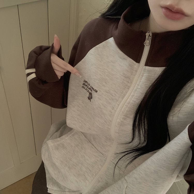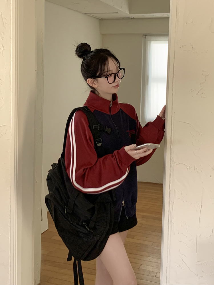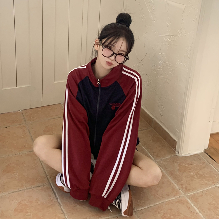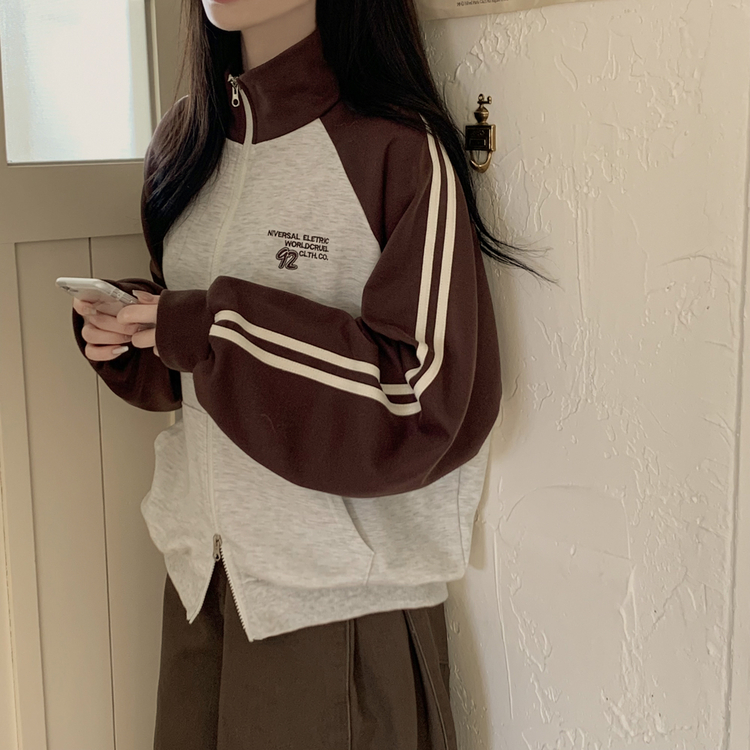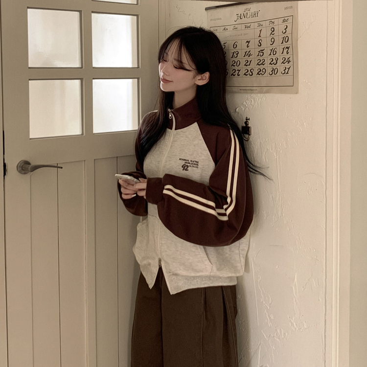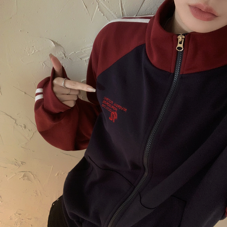 SJP20285 배색 나그랑 트랙라인 하이넥 레터링 투웨이 두줄 트레이닝 집업