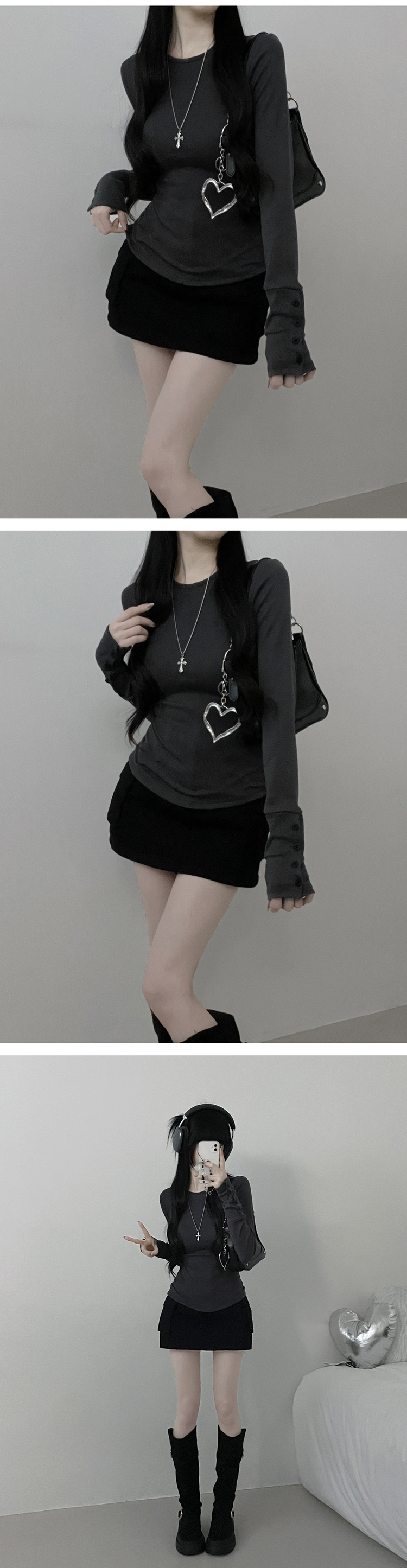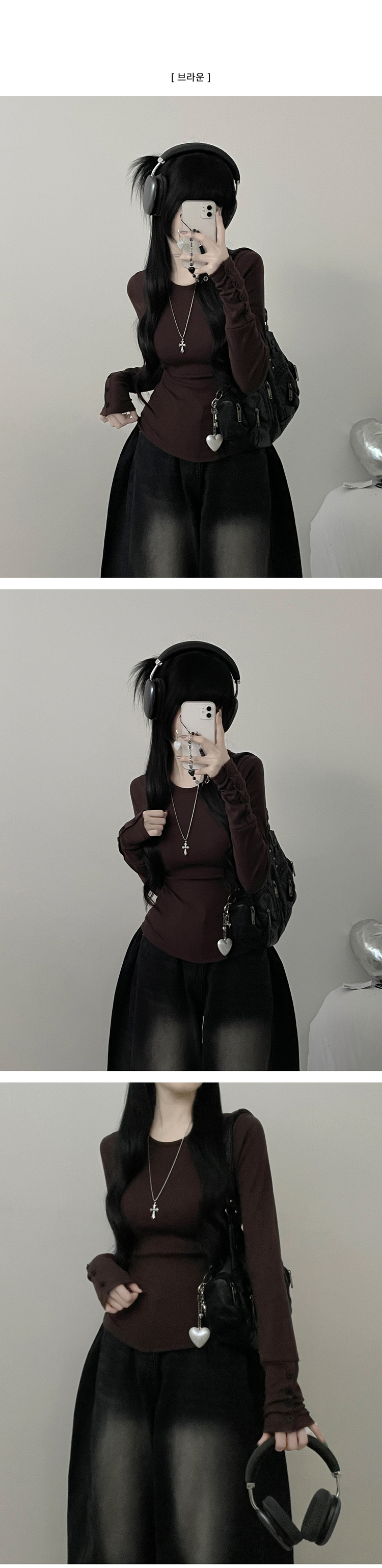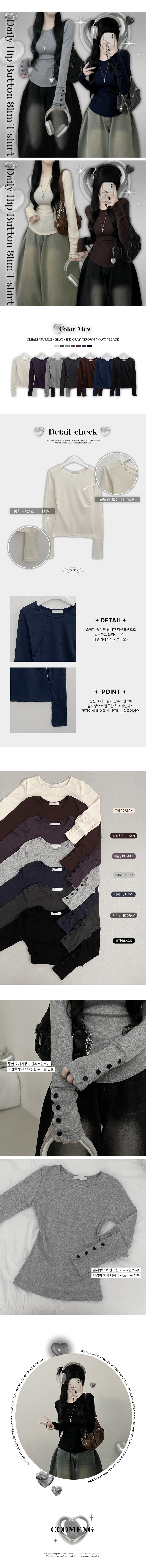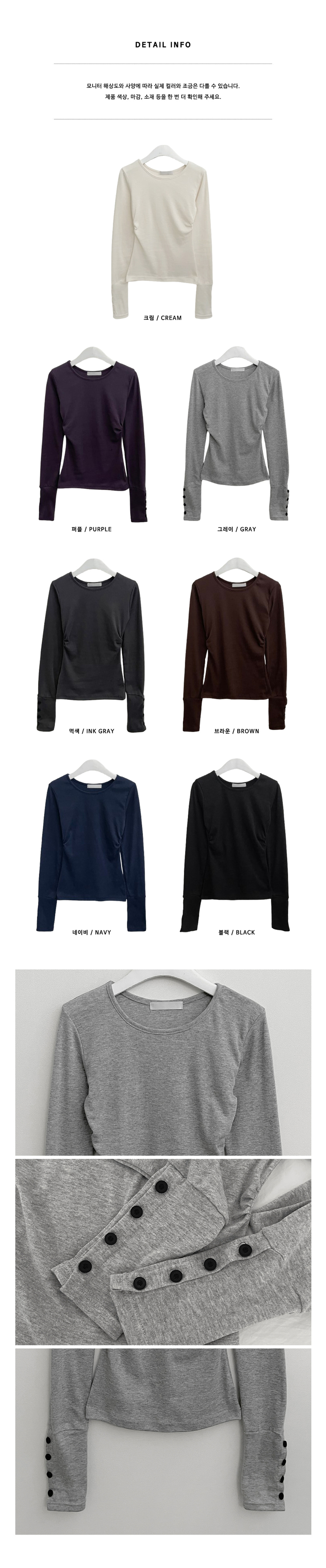STS75291 소매버튼옆셔링슬림라인긴팔티셔츠