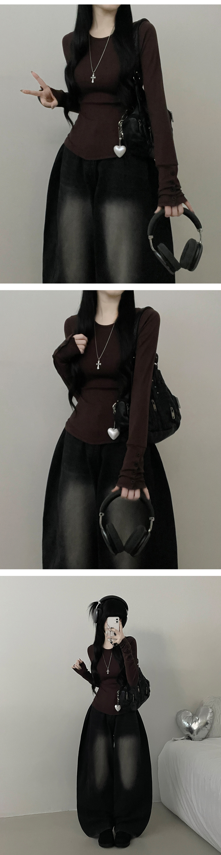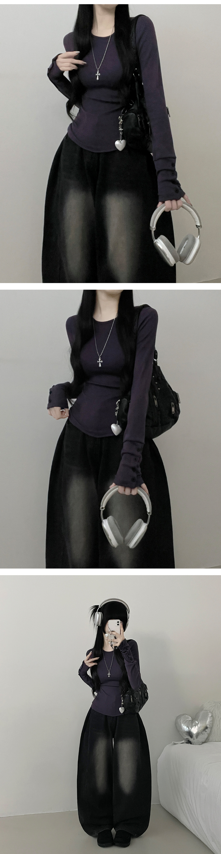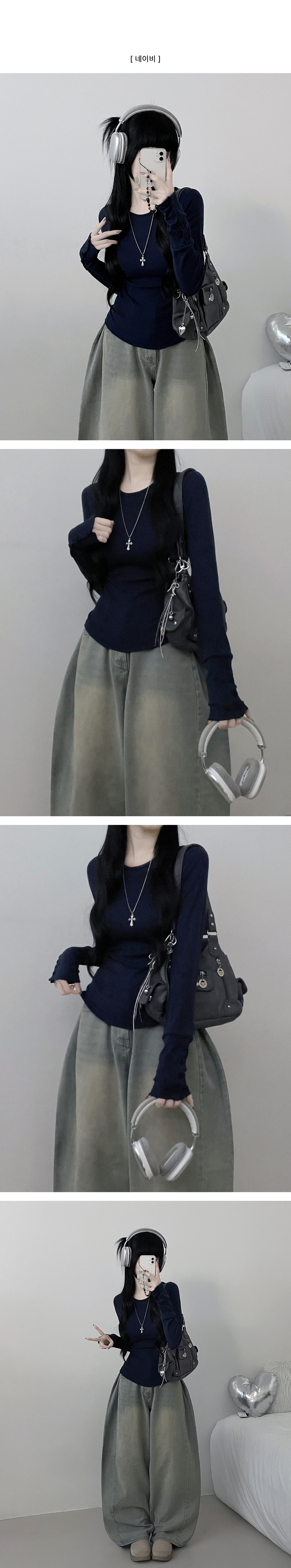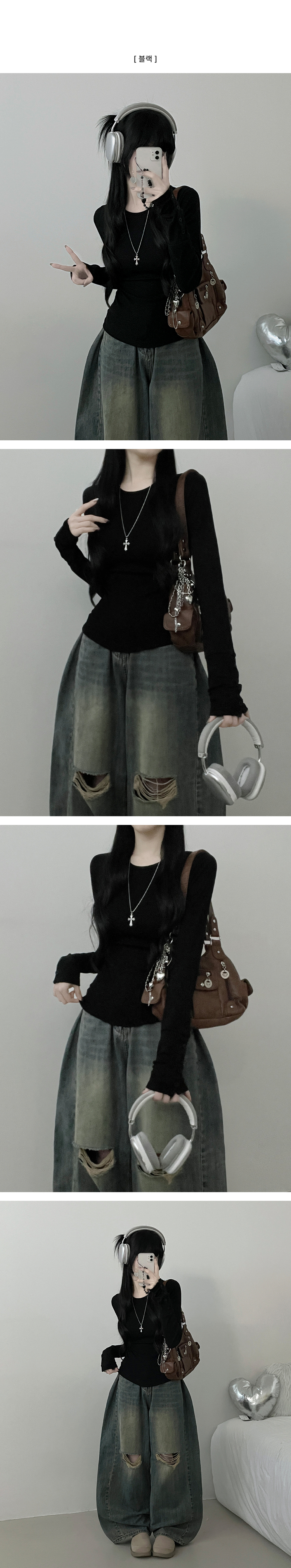 STS75291 소매버튼옆셔링슬림라인긴팔티셔츠