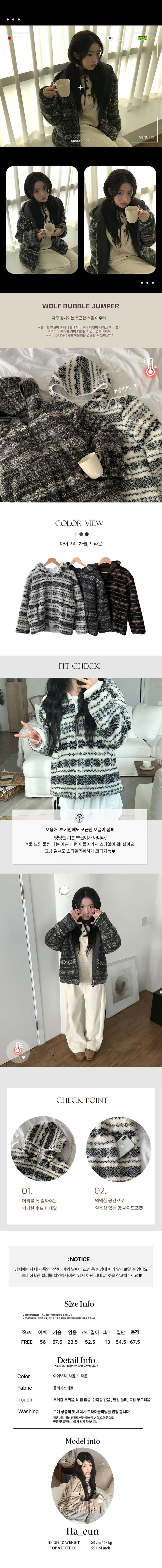 SJP20294 메이즈 눈꽃 노르딕 패턴 뽀글이 점퍼 자켓 루즈핏 겨울아우터