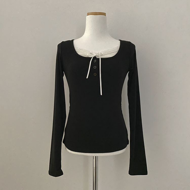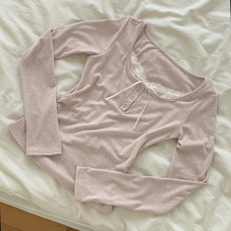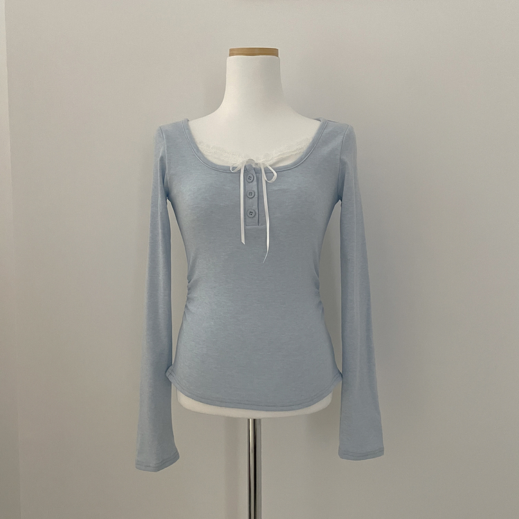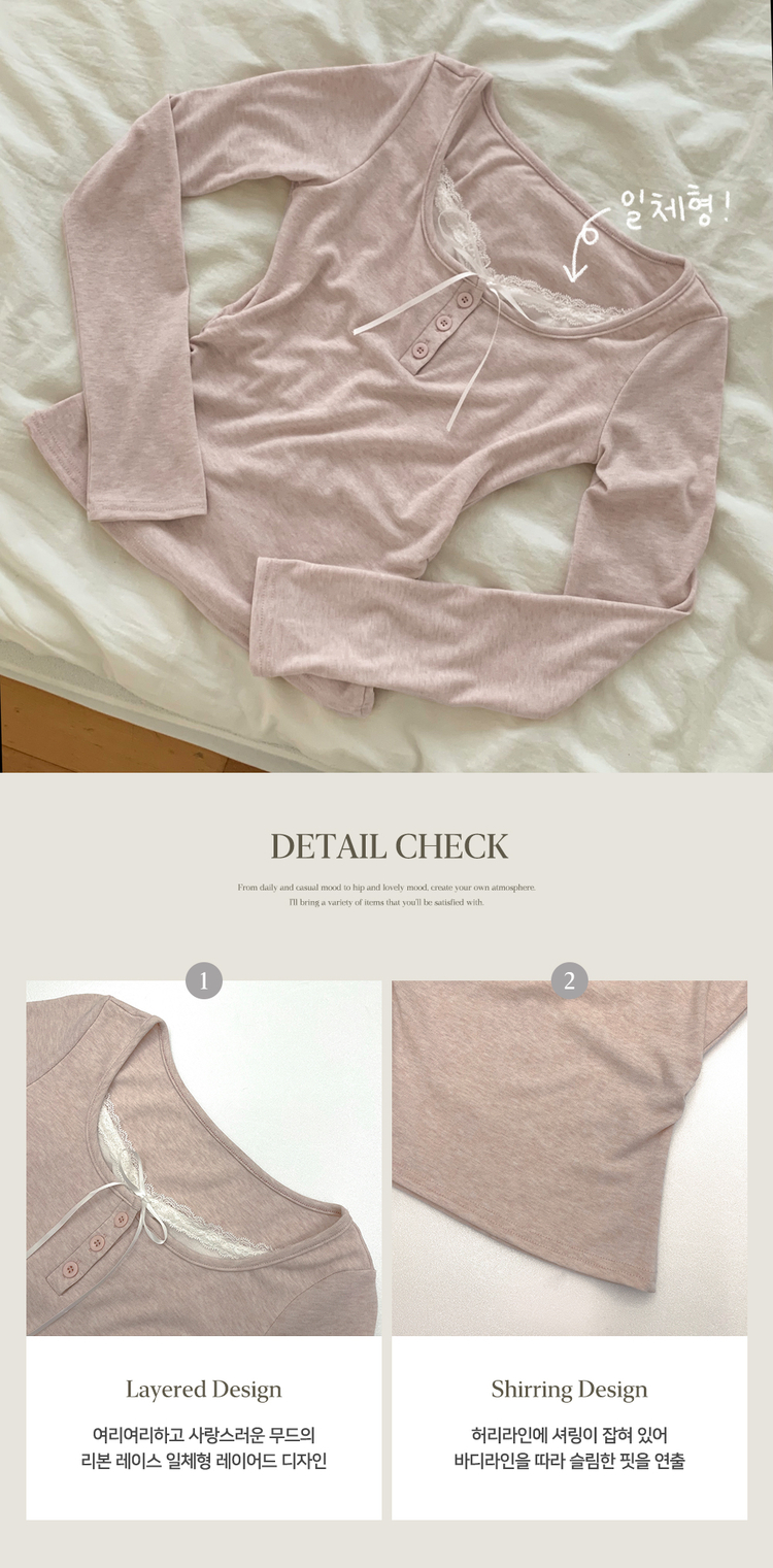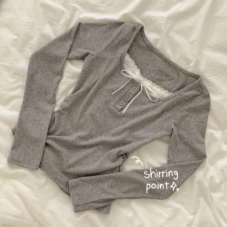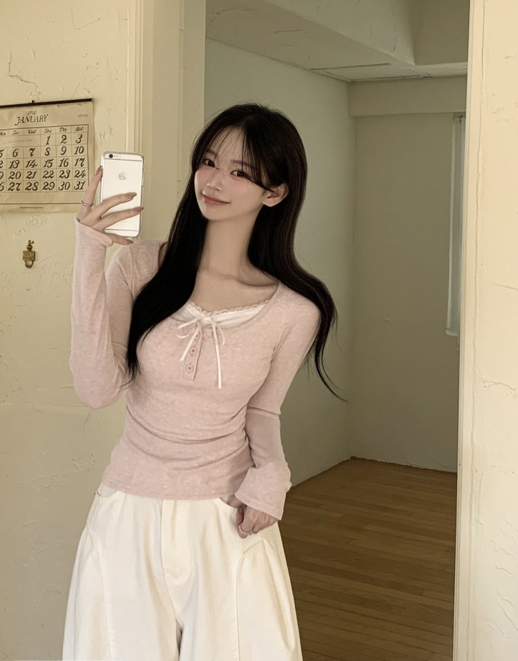 STS75340 레이스 나시 레이어드 허리셔링 슬림핏 단추 버튼 긴팔티셔츠 봄신상 봄옷