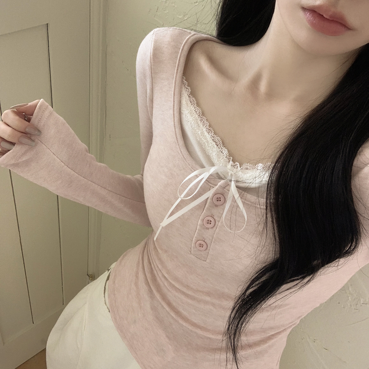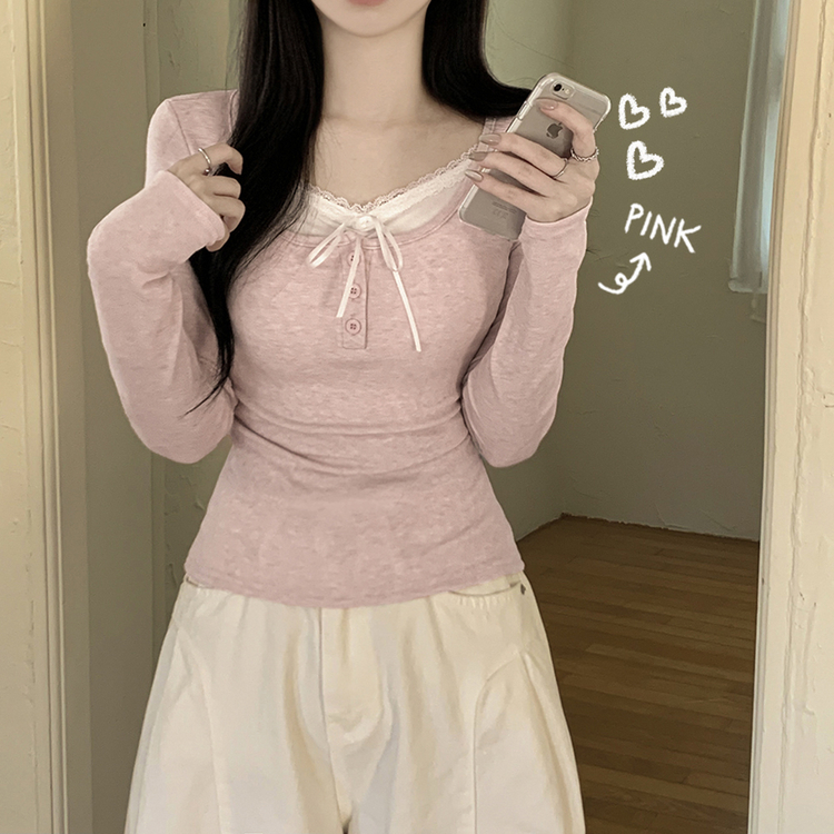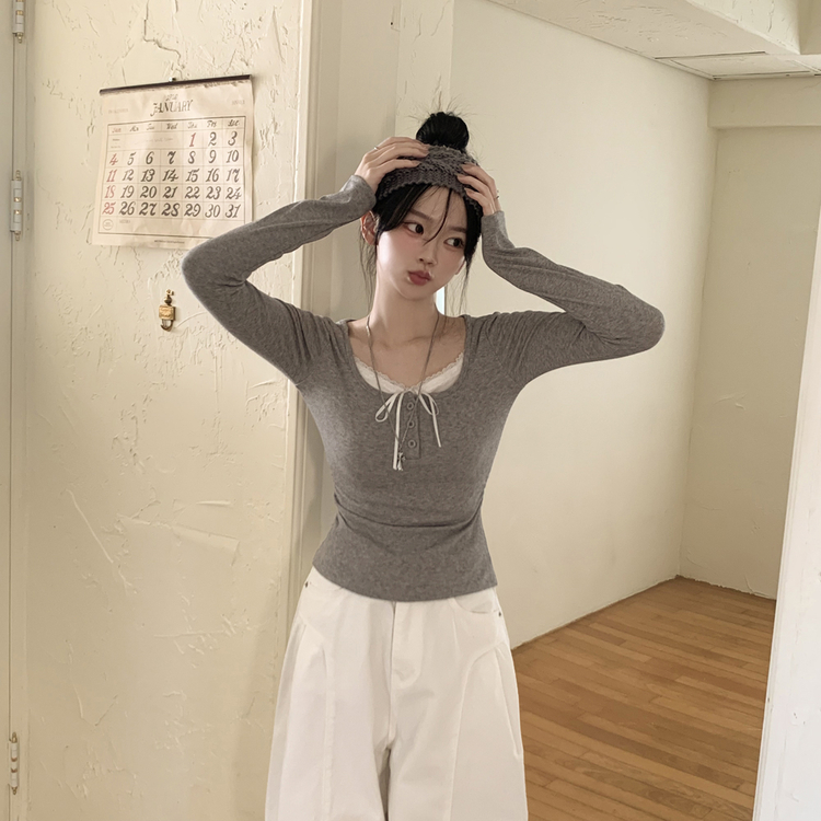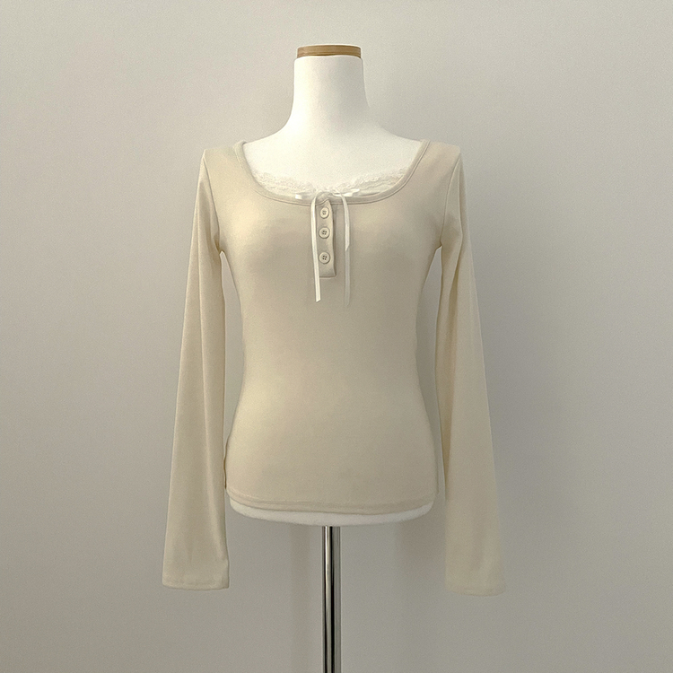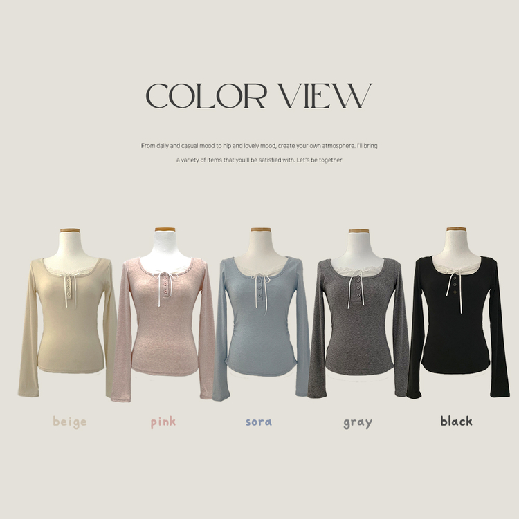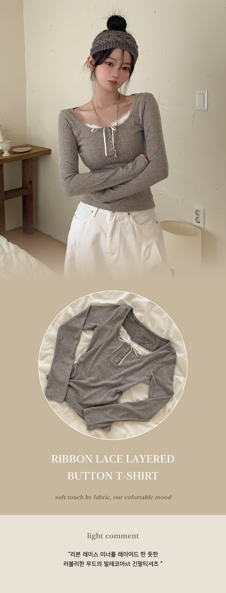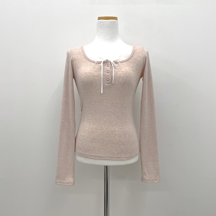 STS75340 레이스 나시 레이어드 허리셔링 슬림핏 단추 버튼 긴팔티셔츠 봄신상 봄옷