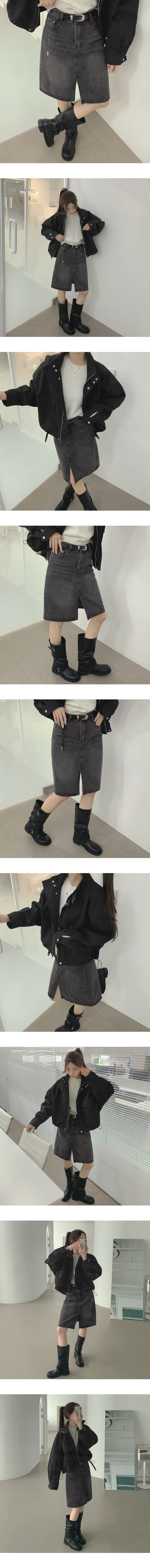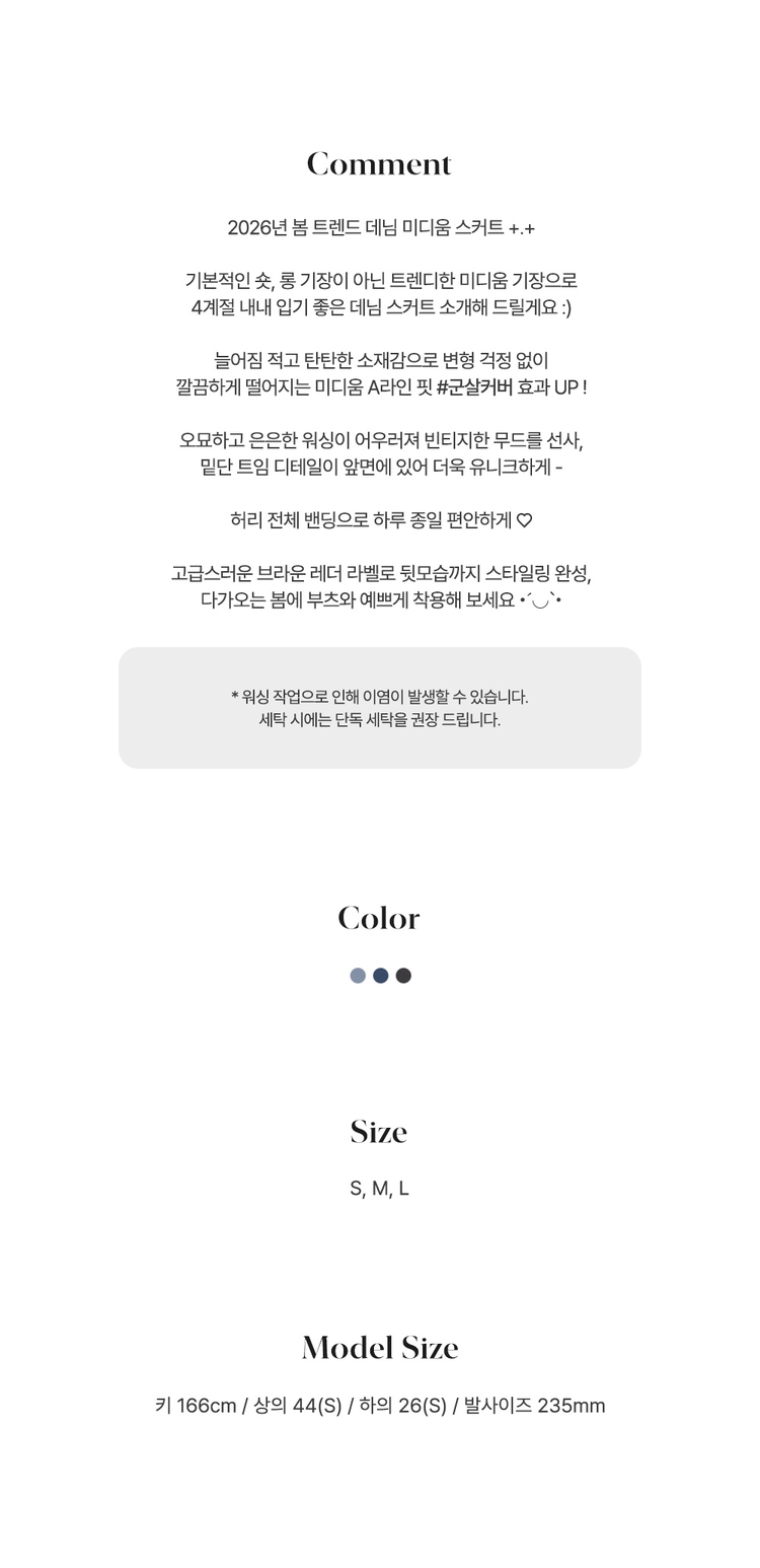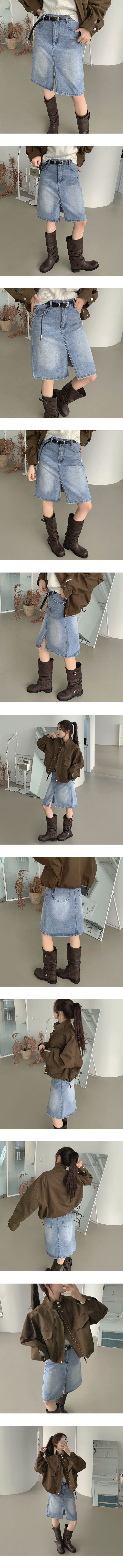 SSK25917 트렌드 데님 미디 기장 트임 A라인 스커트