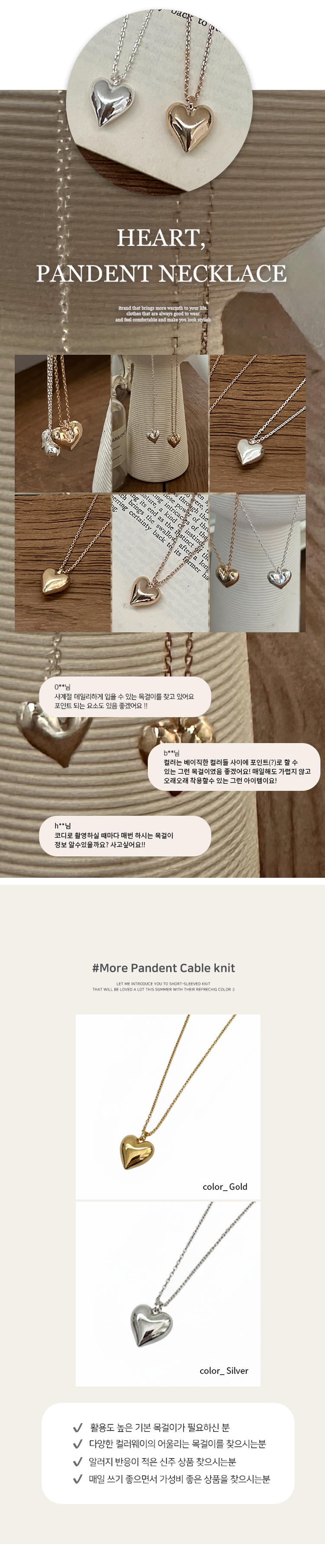 206 심플 데일리 통통 하트 유광 목걸이