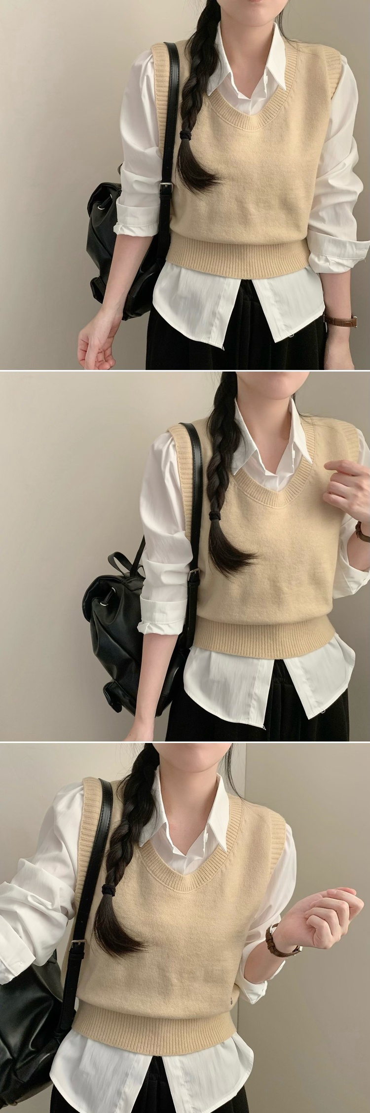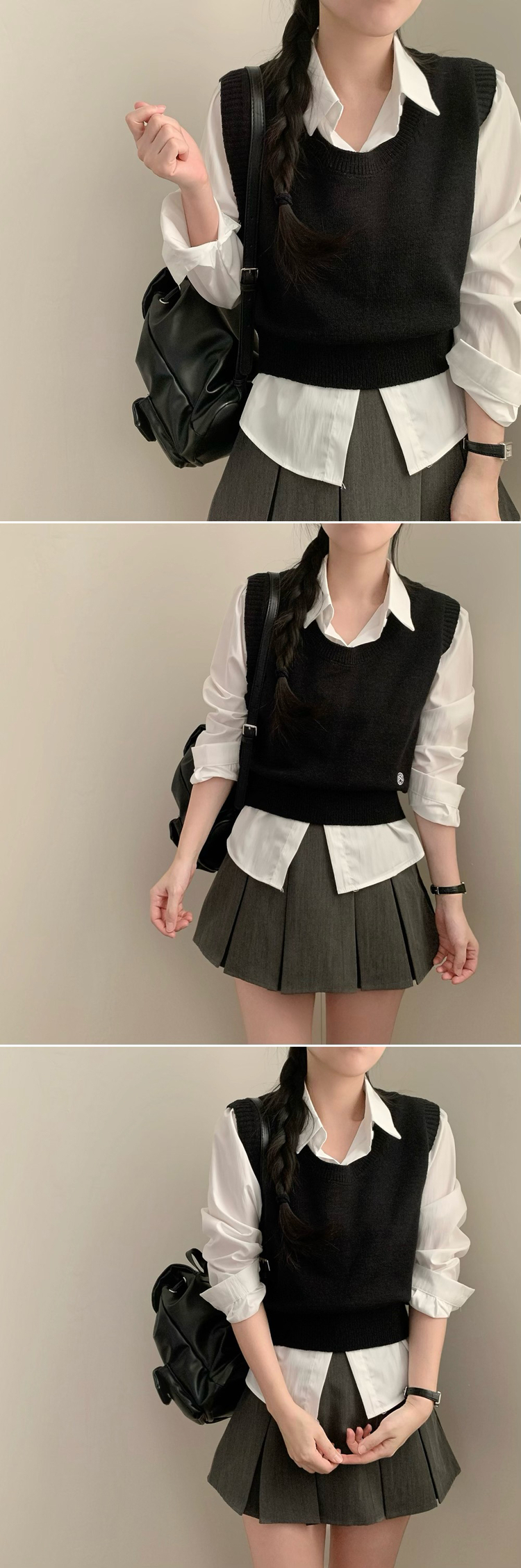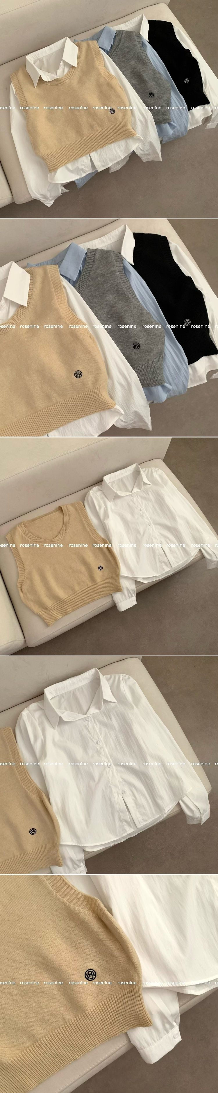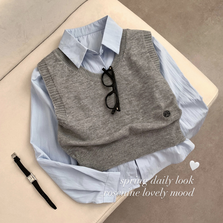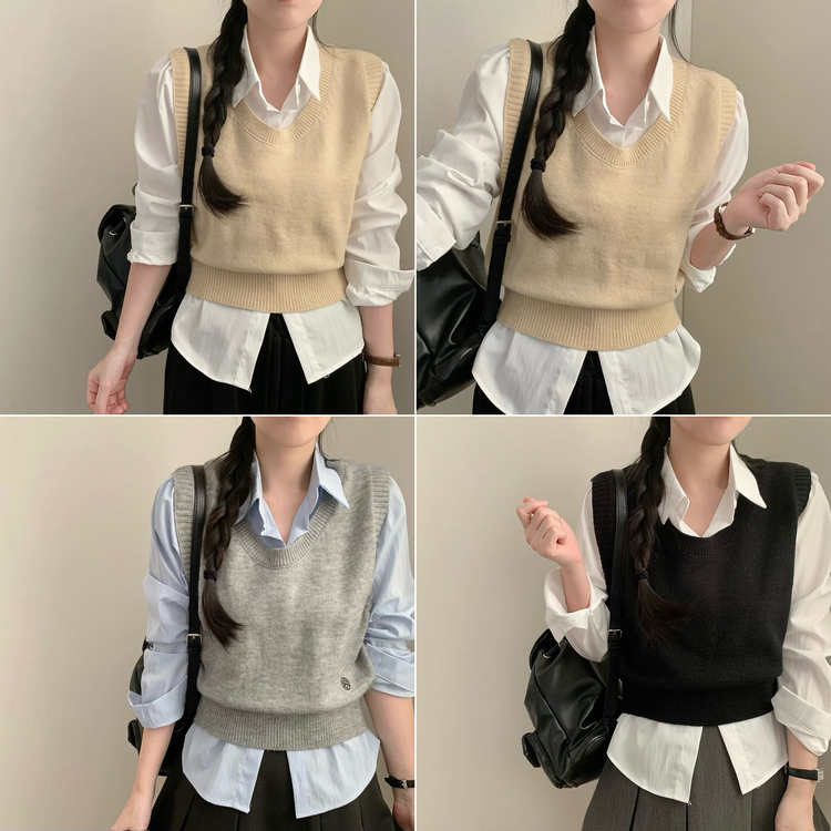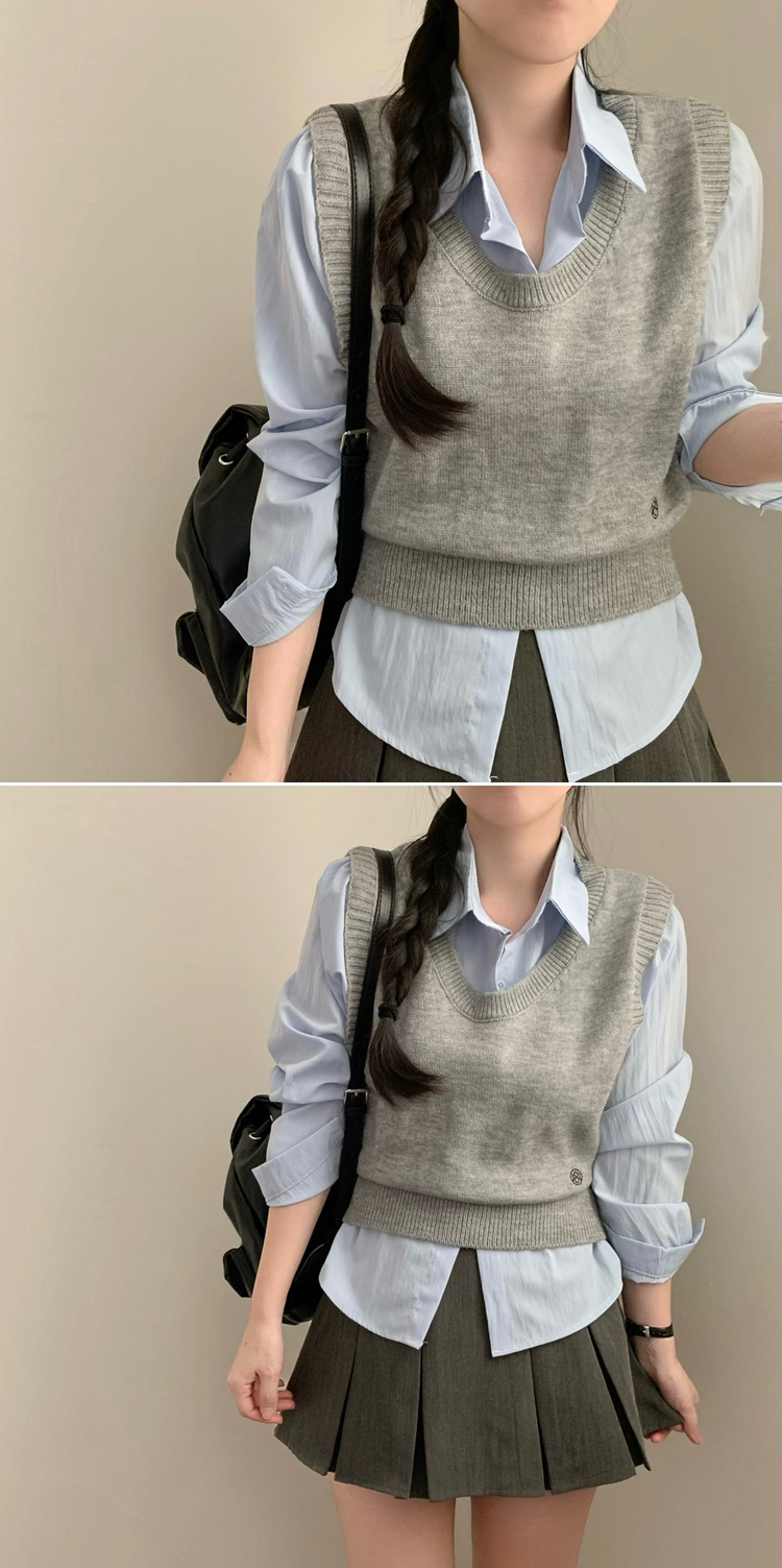 SBS30585 자수 포인트 유넥 조끼 레이어드 긴팔 셔츠 세트 하객룩 봄 봄옷 수학여행 벚꽃 가을 가을옷 상의
