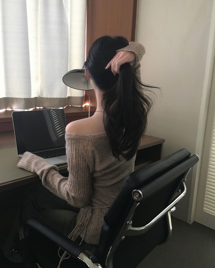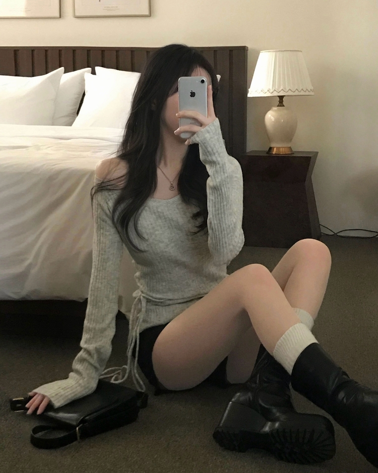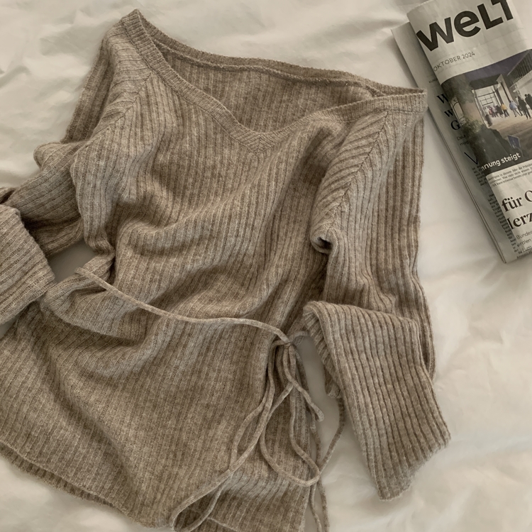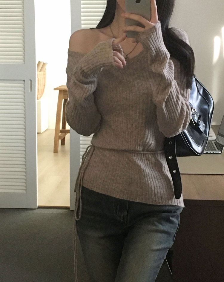 SNT35405 손등덮는 여리핏 오프숄더 끈 세트 골지니트티