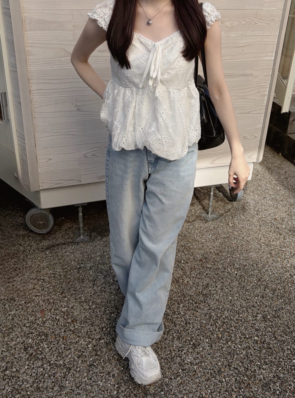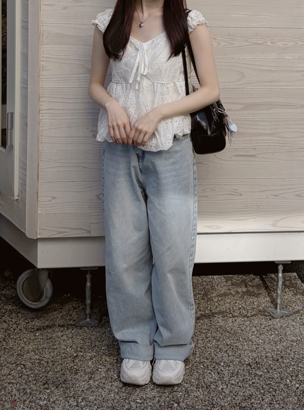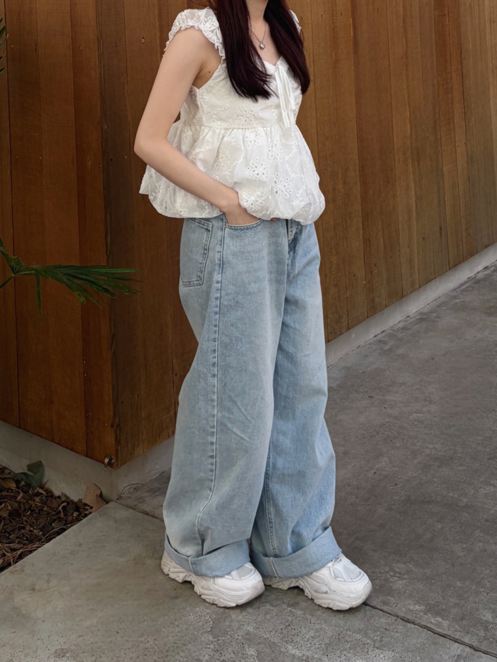 SJE13710 워싱 와이드 데님 팬츠