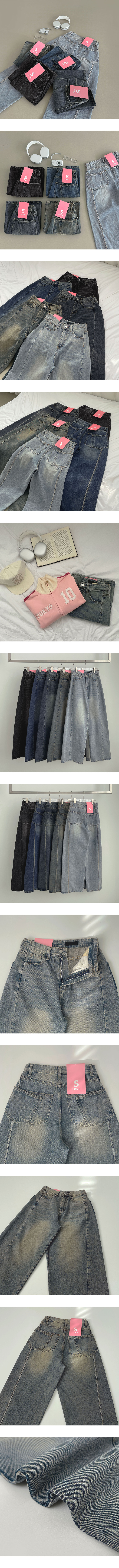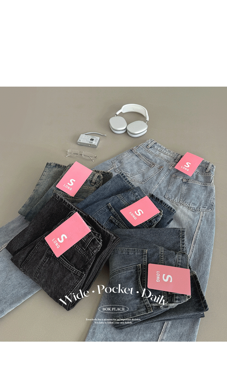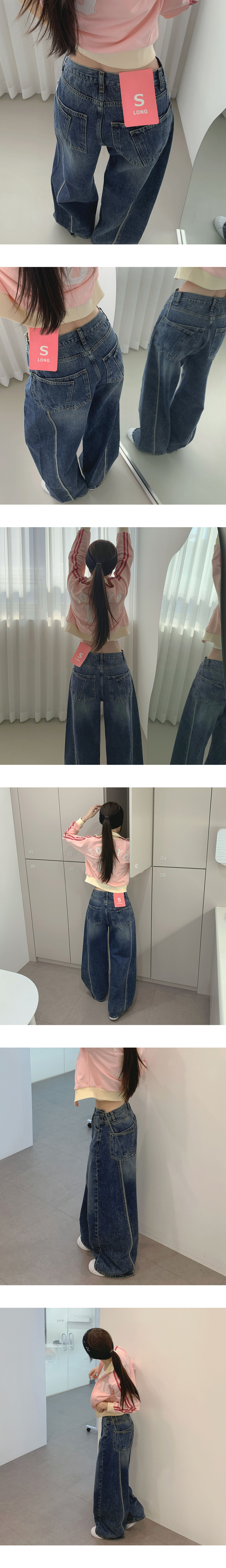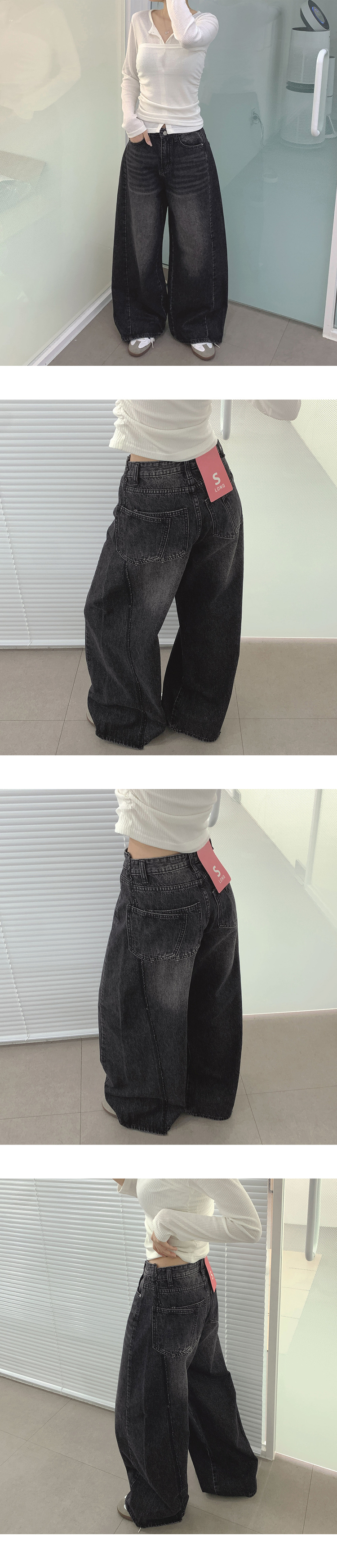SJE13718 XL투포켓 백포켓 커브드 절개 라인 와이드 데님 팬츠