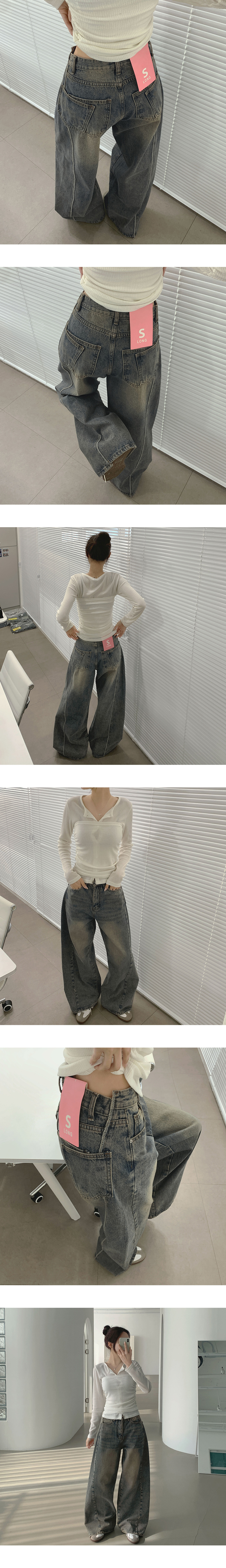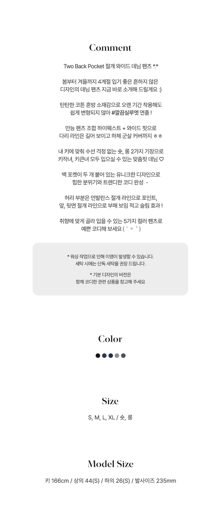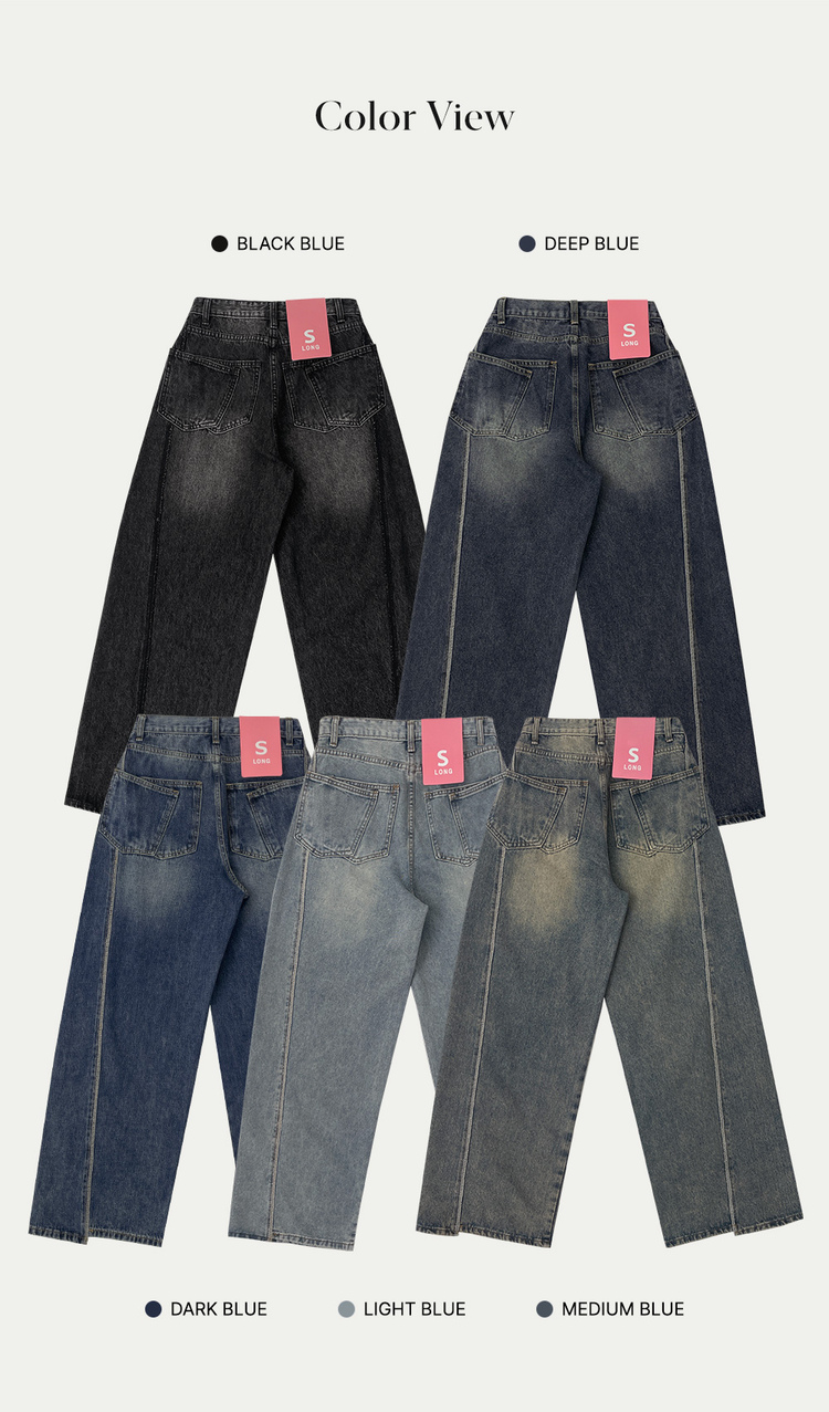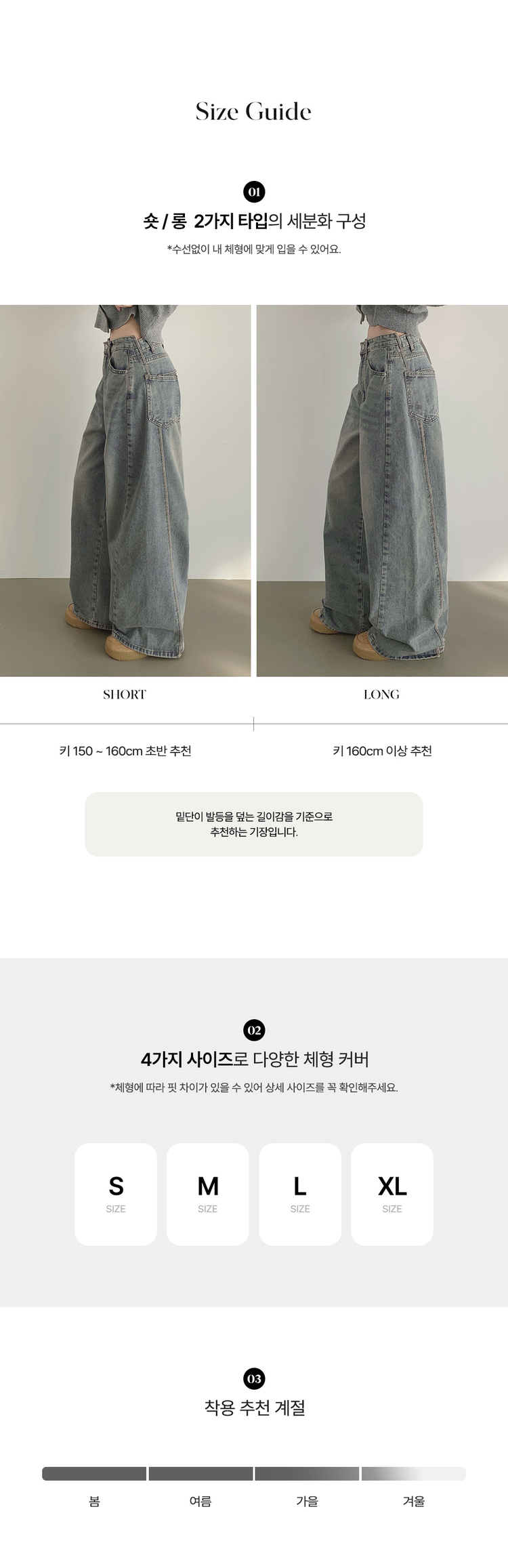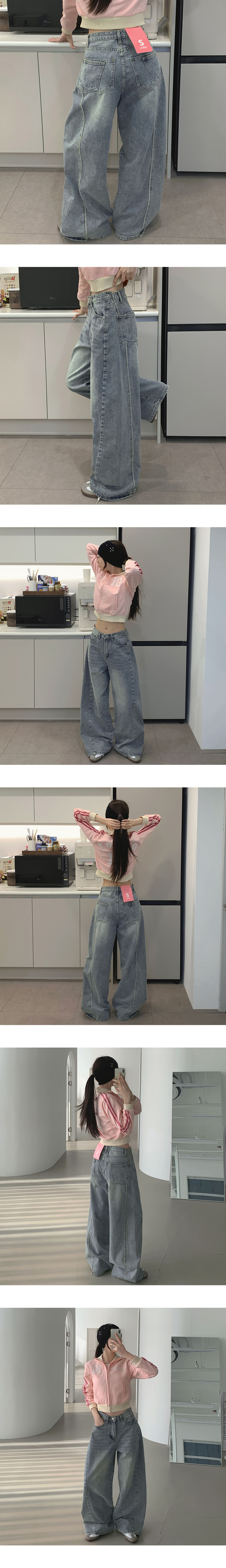 SJE13718 XL투포켓 백포켓 커브드 절개 라인 와이드 데님 팬츠