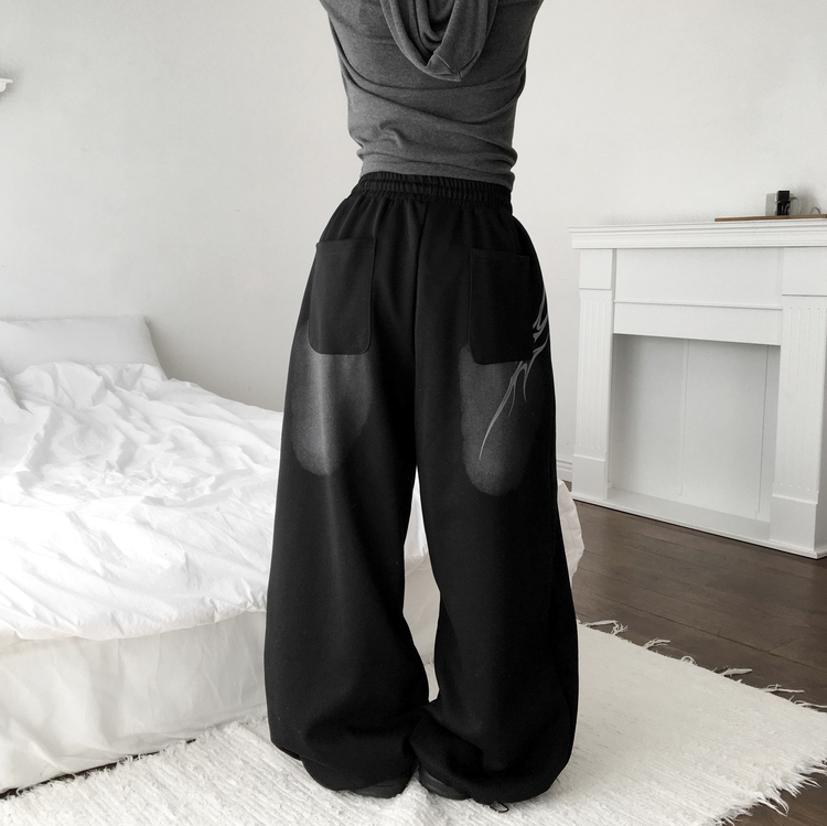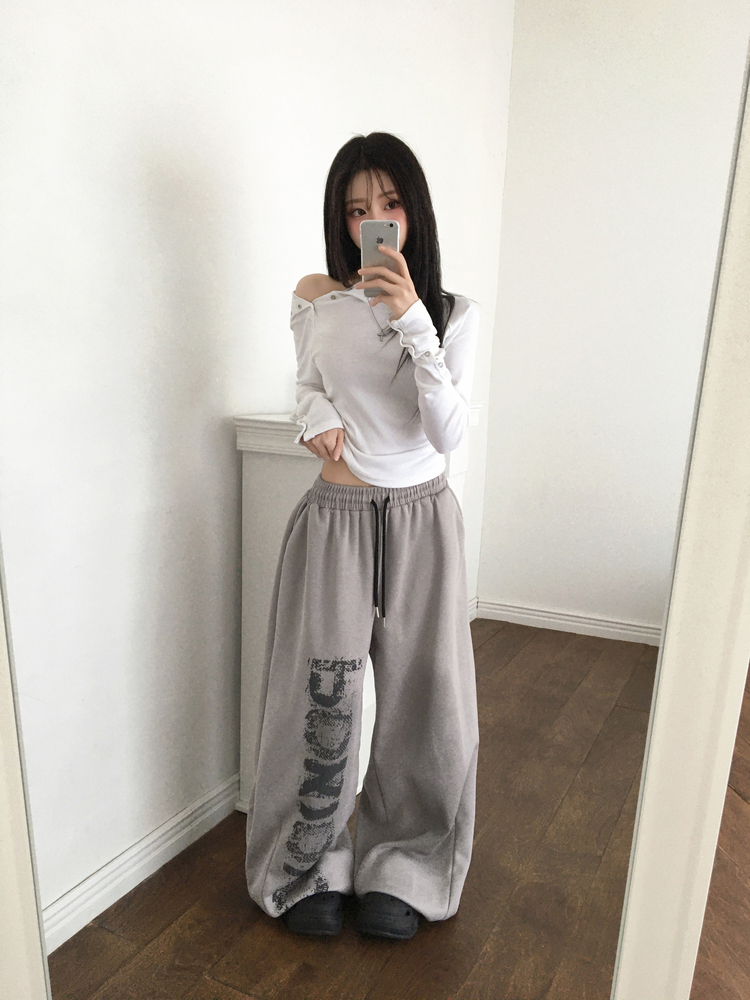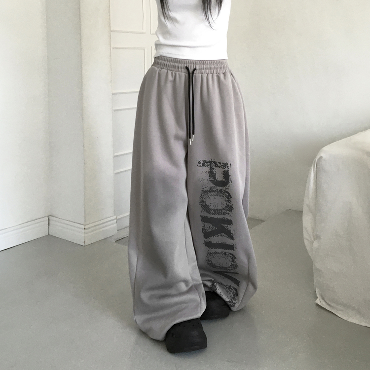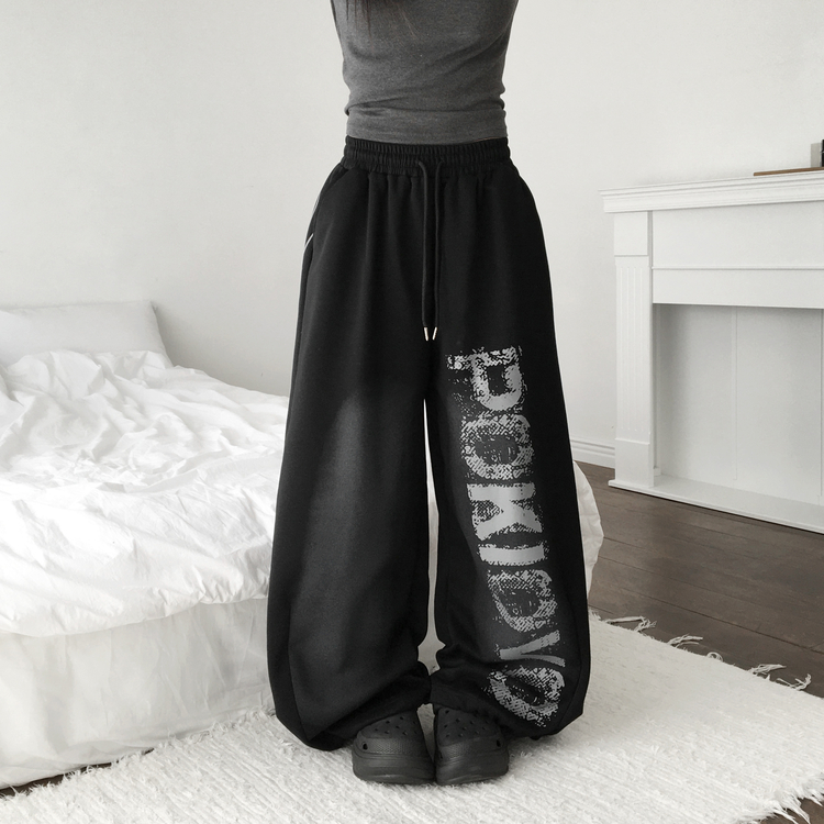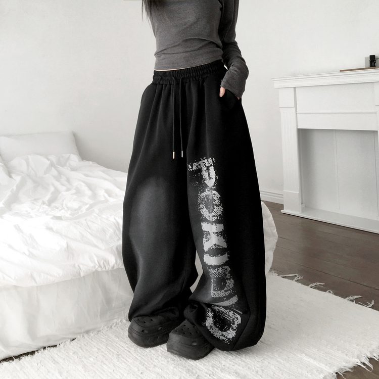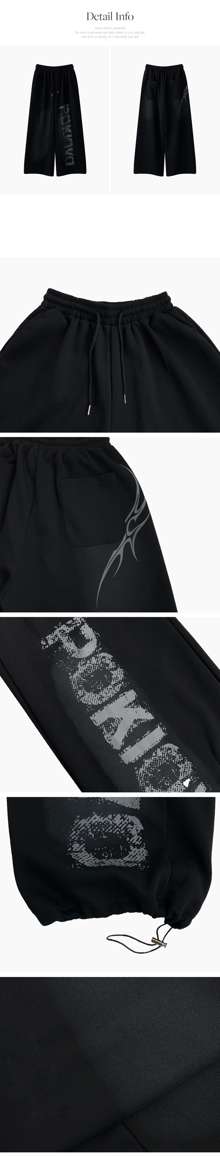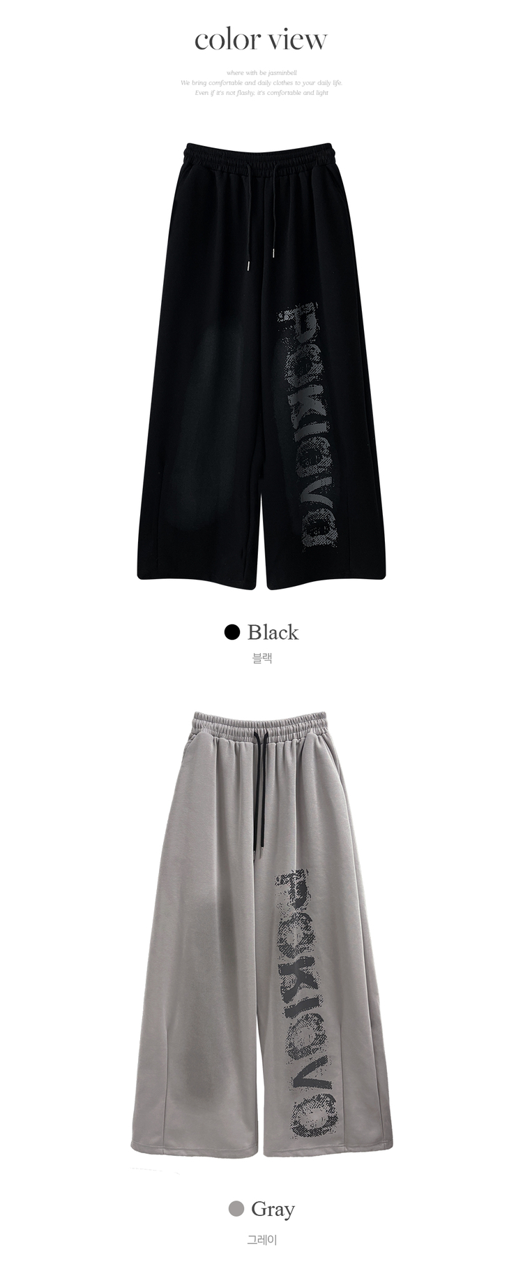 SPS38472 페티 브러쉬 워싱 레터링 스트링 와이드 밴딩 트레이닝 팬츠
