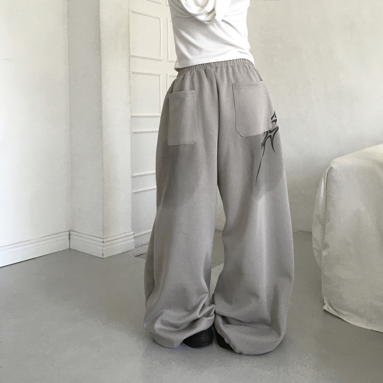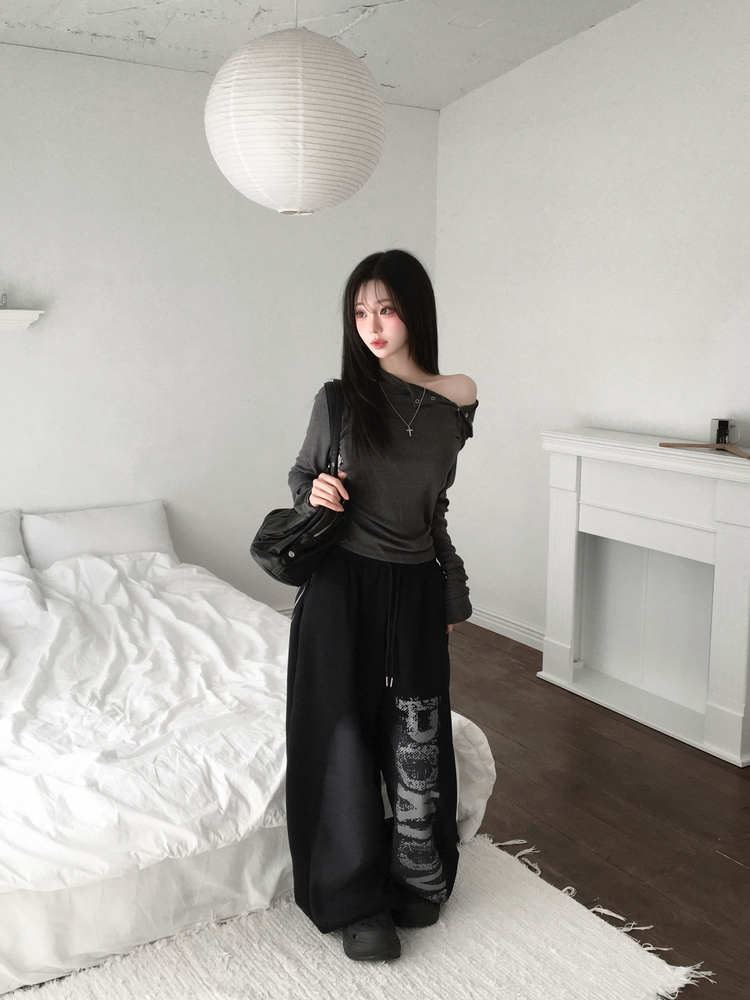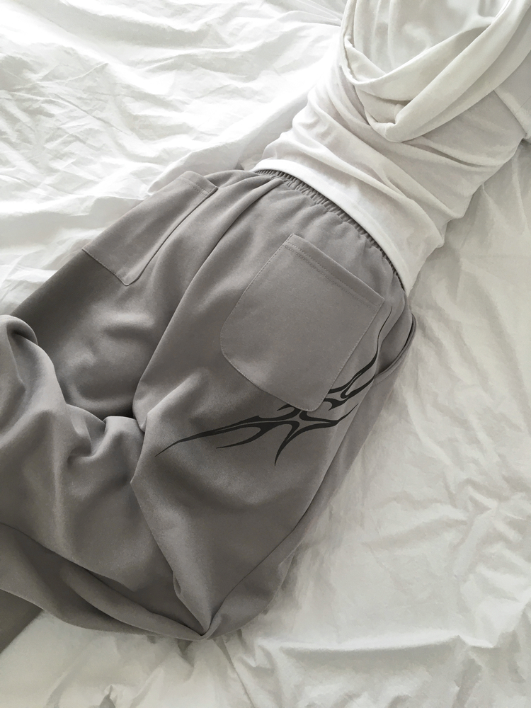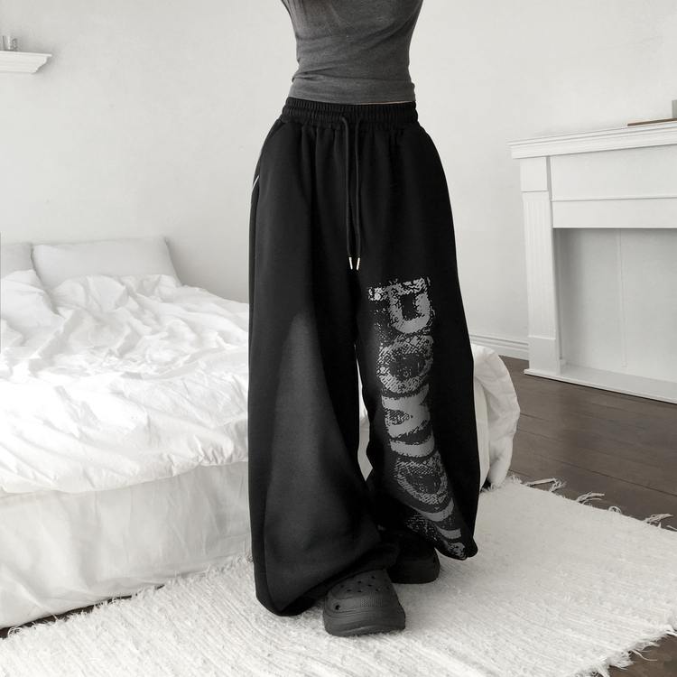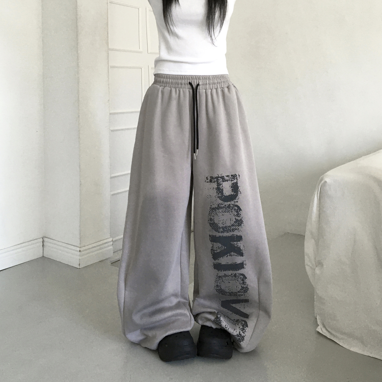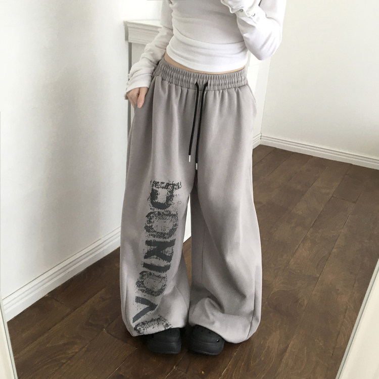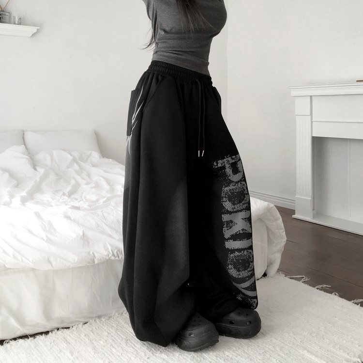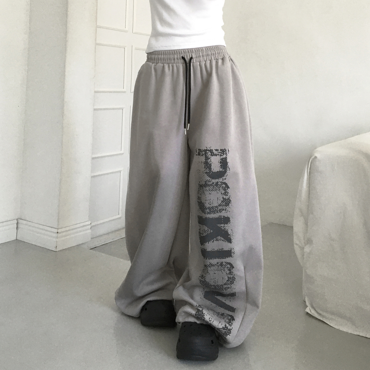 SPS38472 페티 브러쉬 워싱 레터링 스트링 와이드 밴딩 트레이닝 팬츠