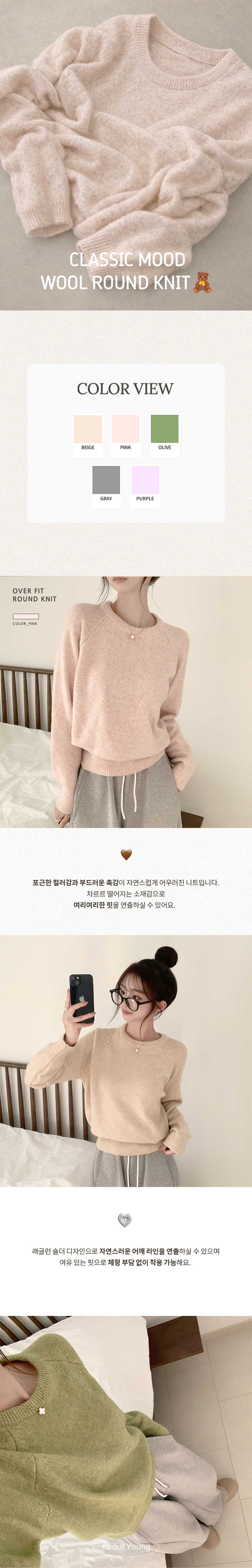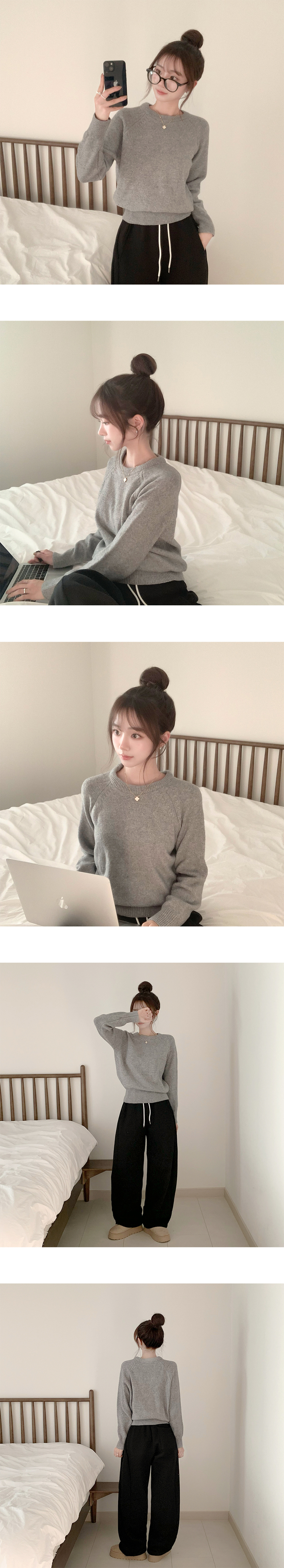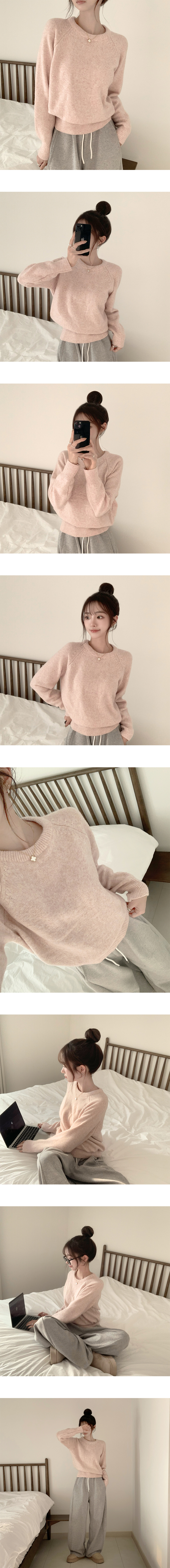 SNT35456 포근 오버핏 겨울 라운드 울 데일리 루즈핏 긴팔 니트 허리잘록 긴팔티