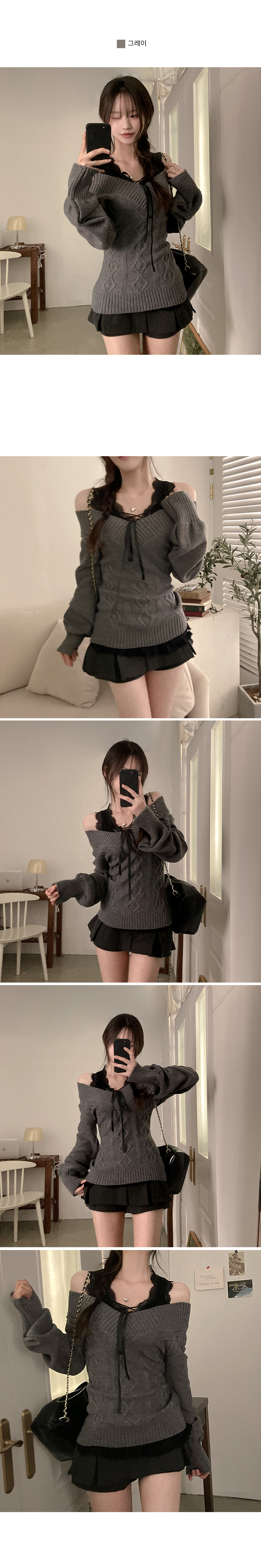SNT35492 멜번 브이넥 꽈배기 롱 니트