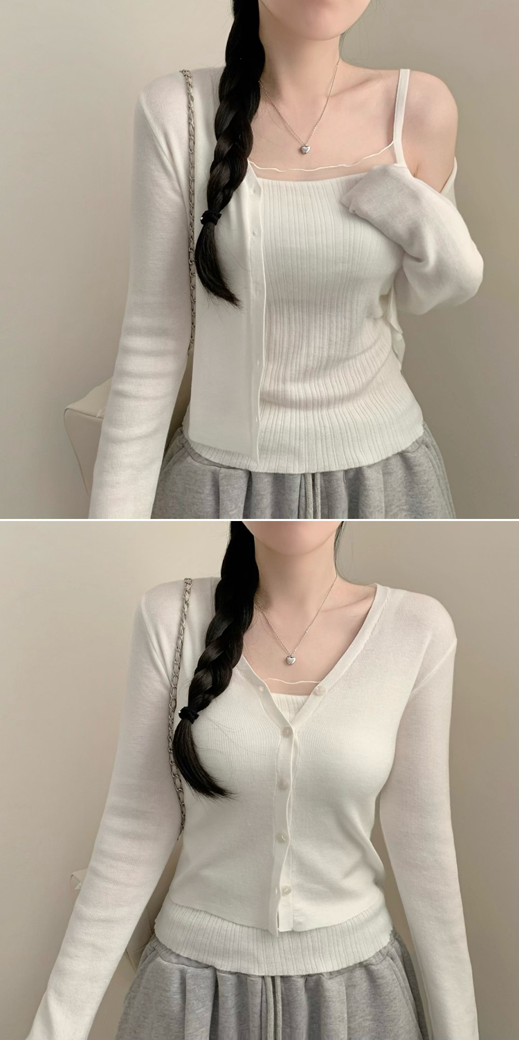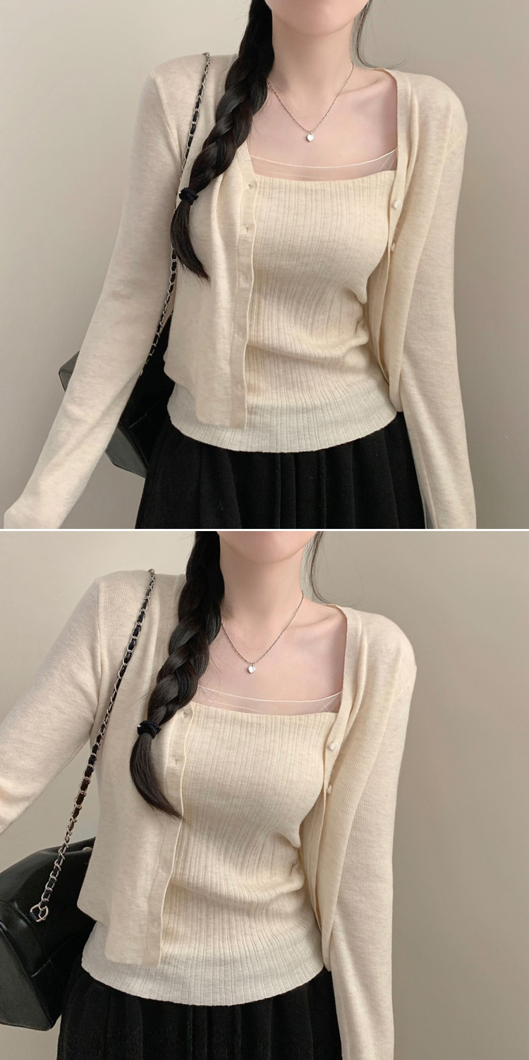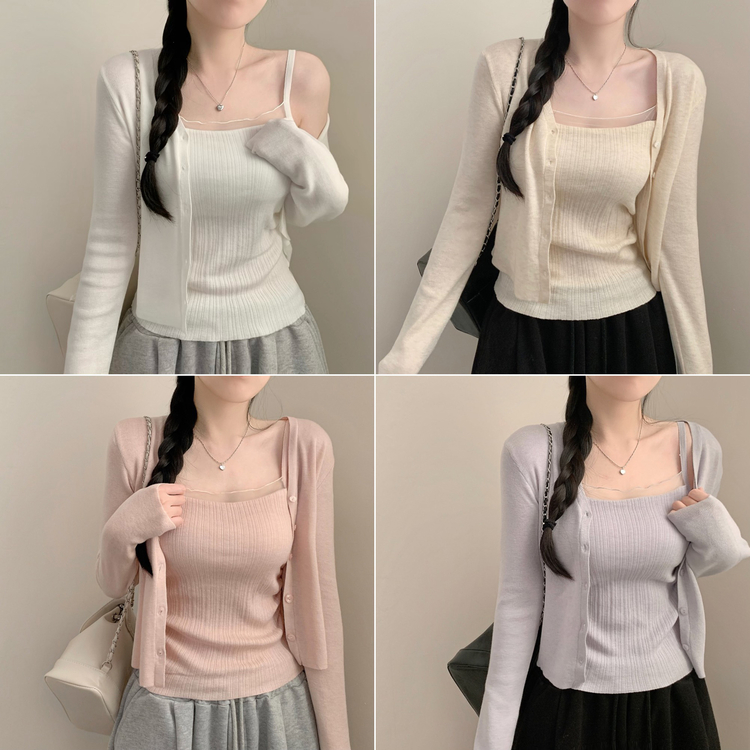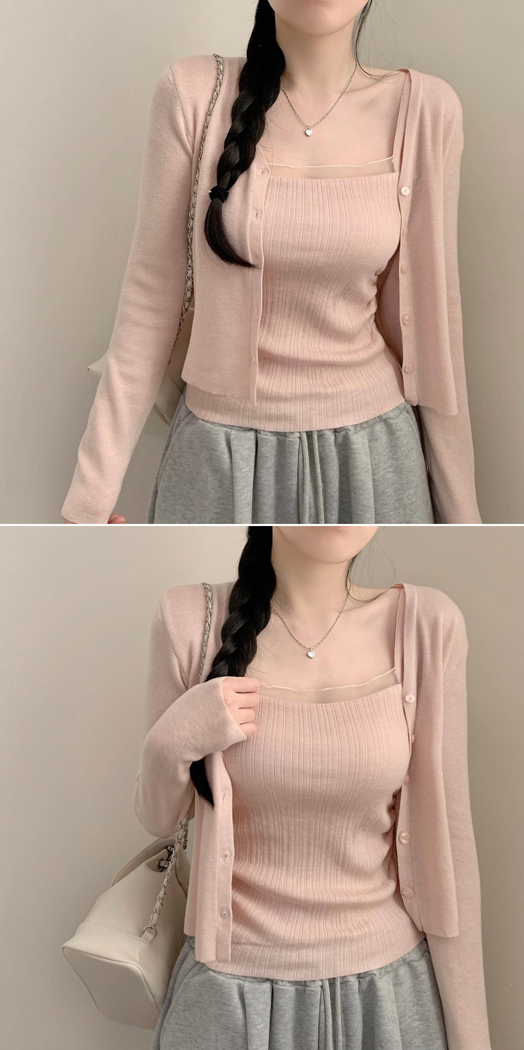 SGD31056 러블리 쉬폰 나시 니트 가디건 세트 봄 봄옷 벚꽃 파스텔 핑크